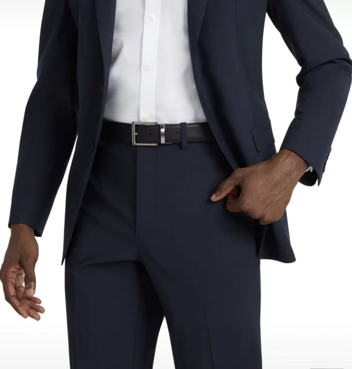 这款腰带采用纹理细腻的萨菲亚诺皮革制成,表面光滑,搭配简洁的矩形金属扣。
