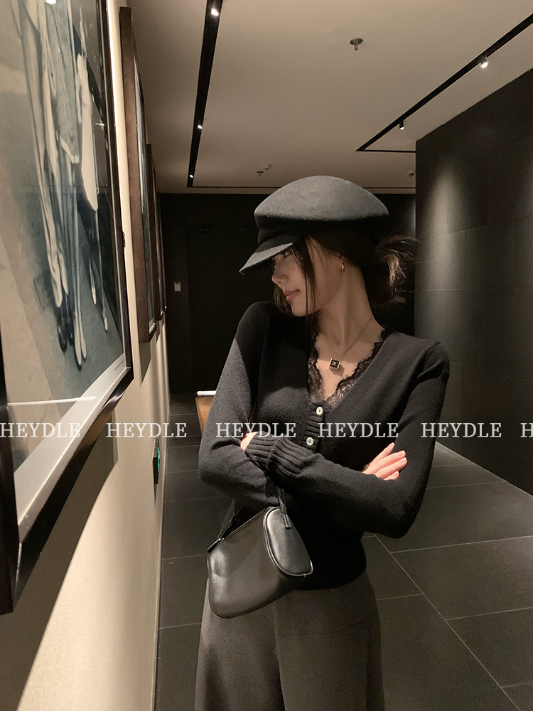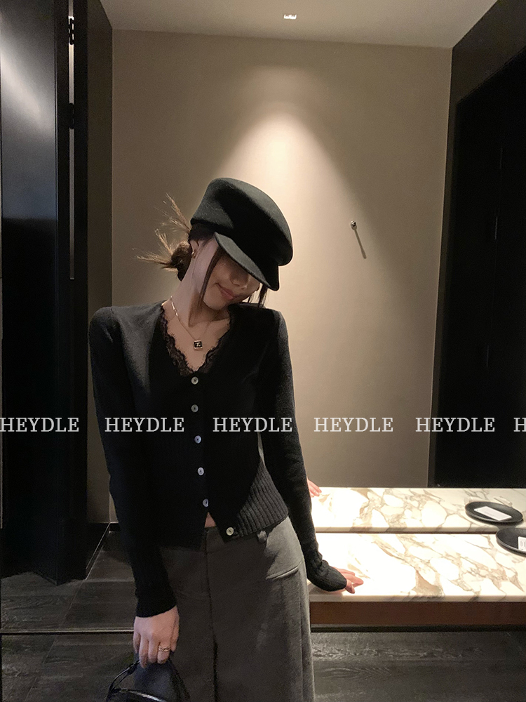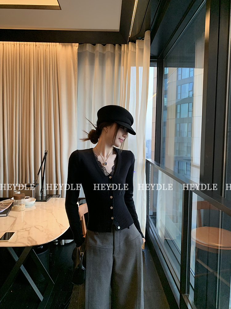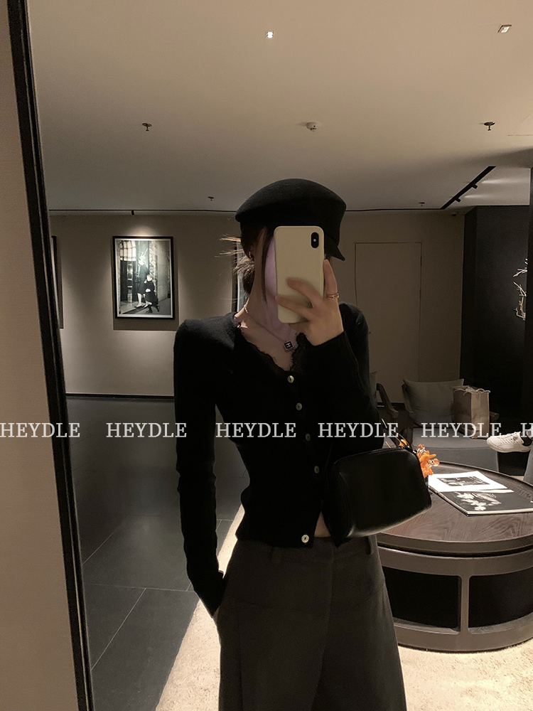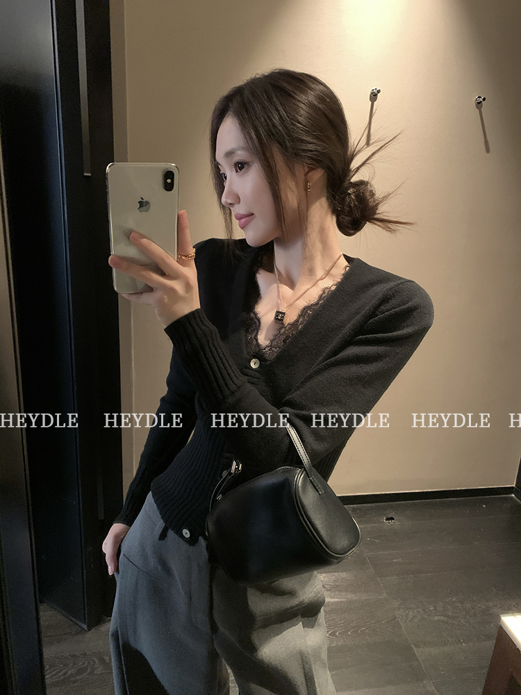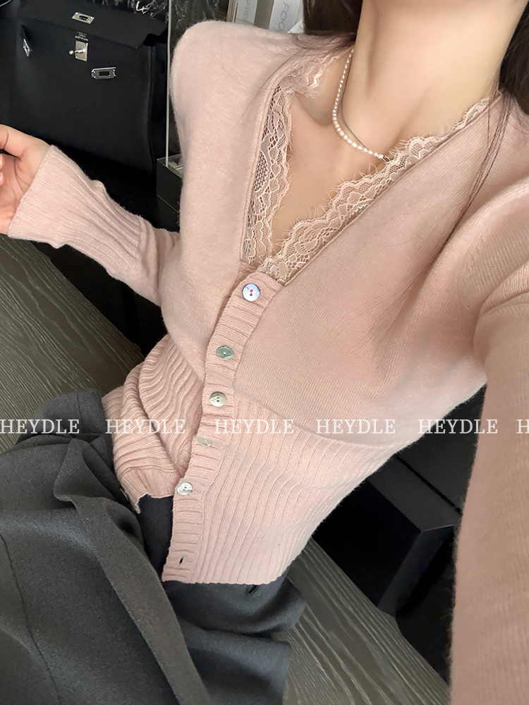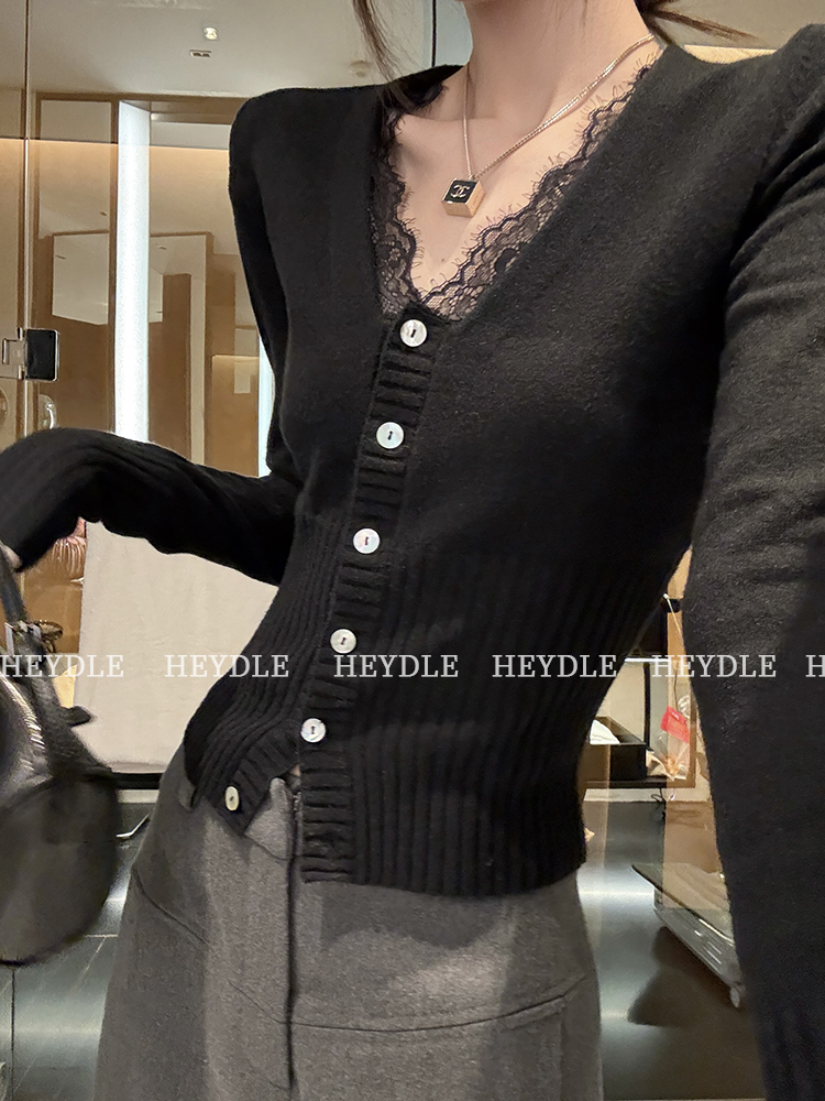 纯欲感拉满的【韩女法则*v领蕾丝拼接针织衫】谁能不爱!不仅显腰细还修饰身型比例~很好搭衣服~~