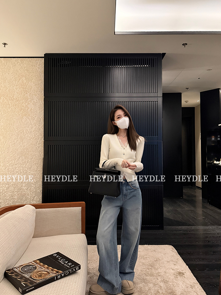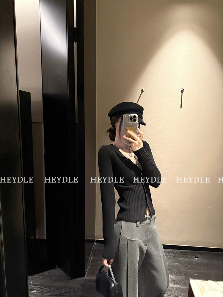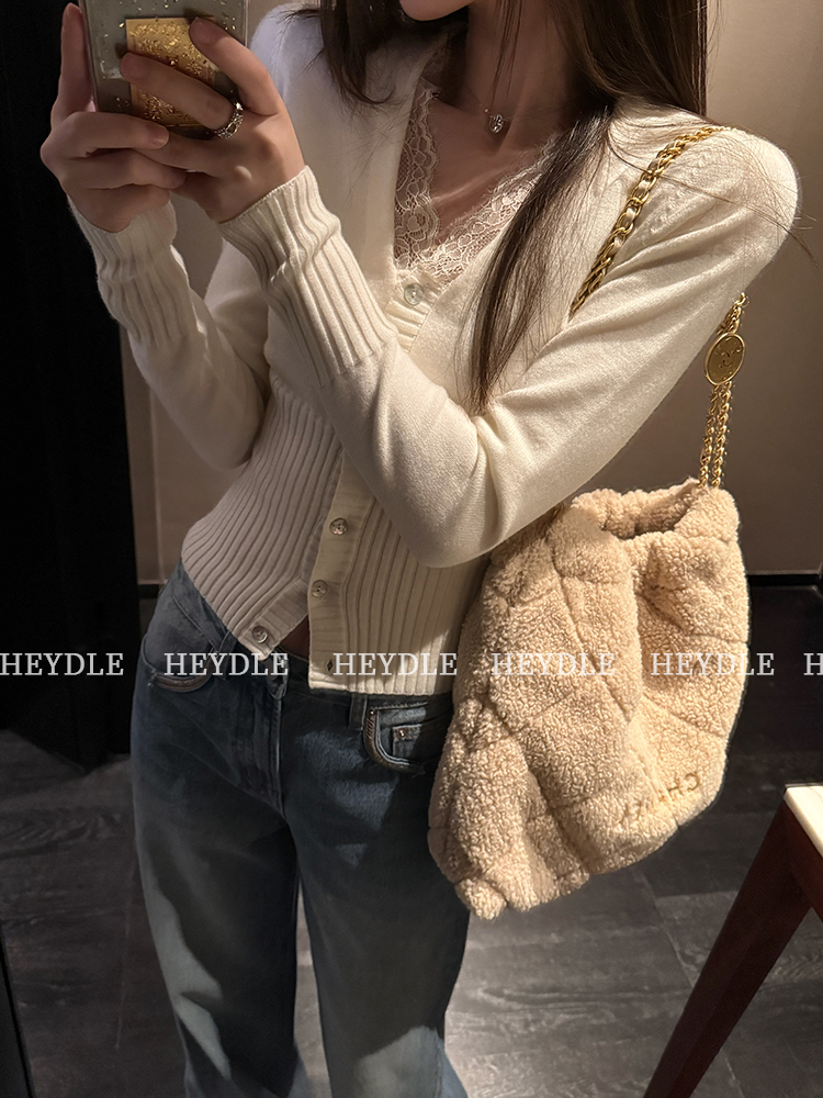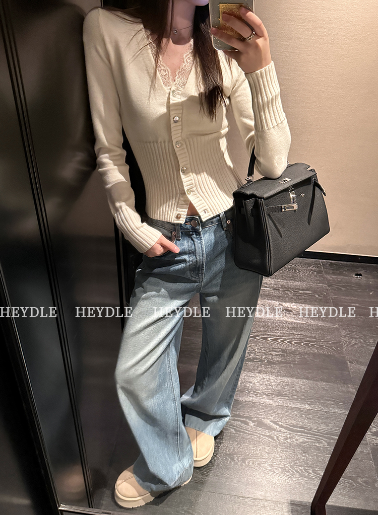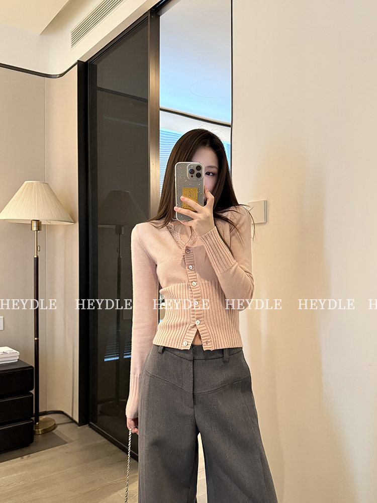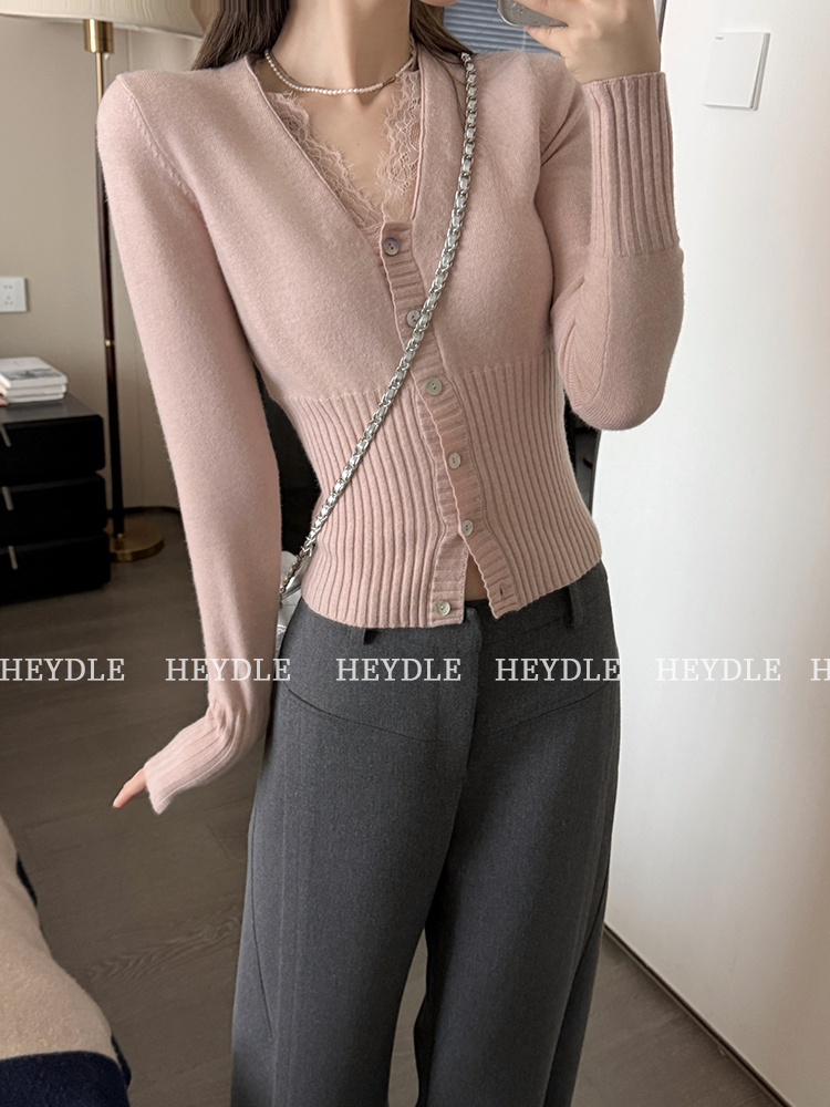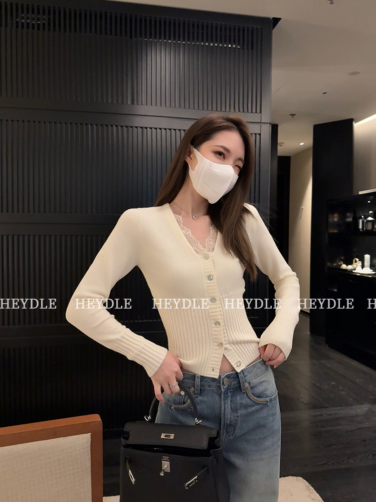 纯欲感拉满的【韩女法则*v领蕾丝拼接针织衫】谁能不爱!不仅显腰细还修饰身型比例~很好搭衣服~~