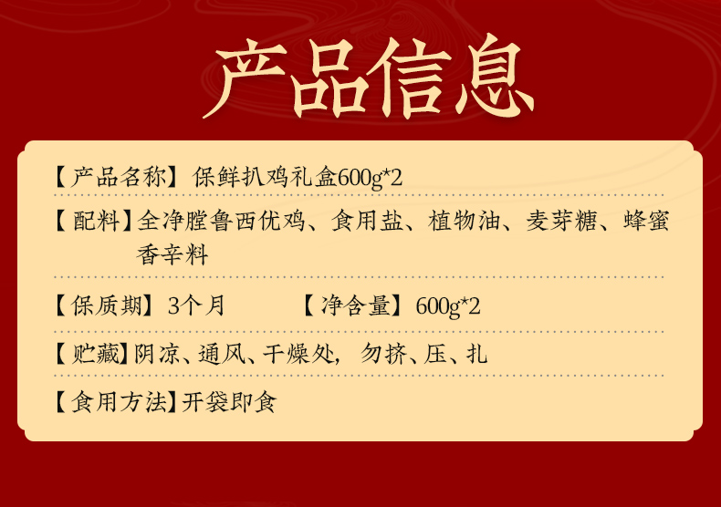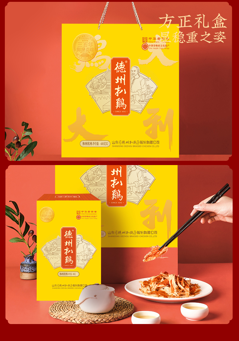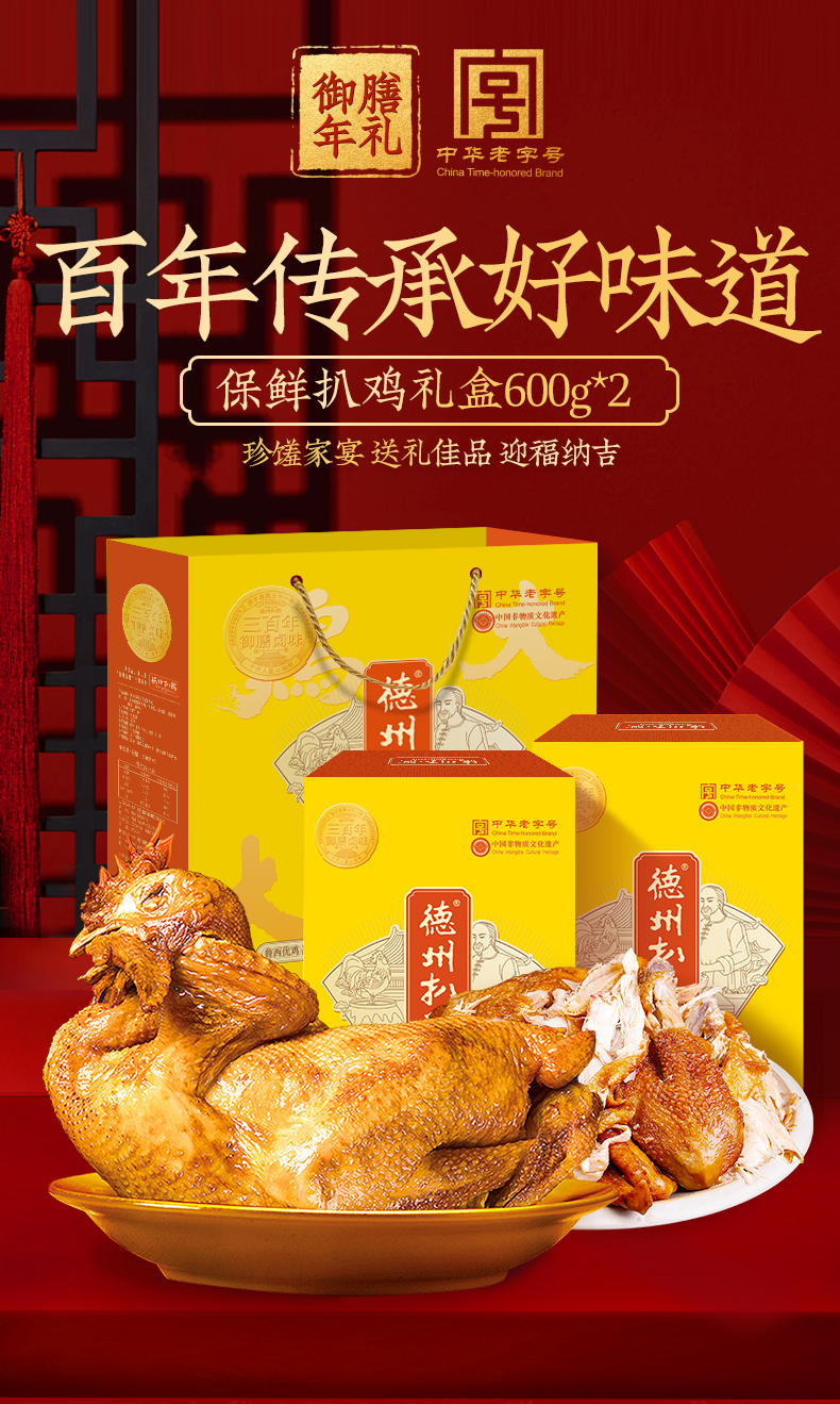 德州扒鸡保鲜扒鸡礼盒600g*2 非遗技艺山东特产中华老字号