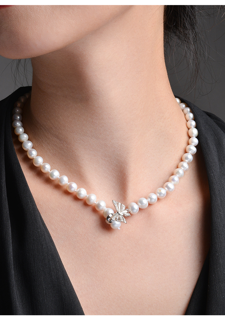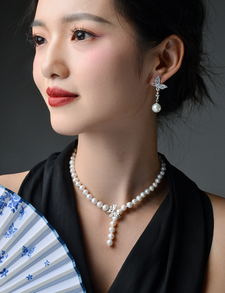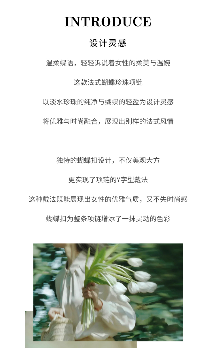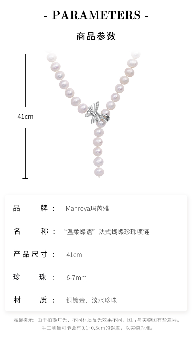 Manreya玛芮雅温柔蝶语法式蝴蝶珍珠项链锁骨链个性时尚饰品