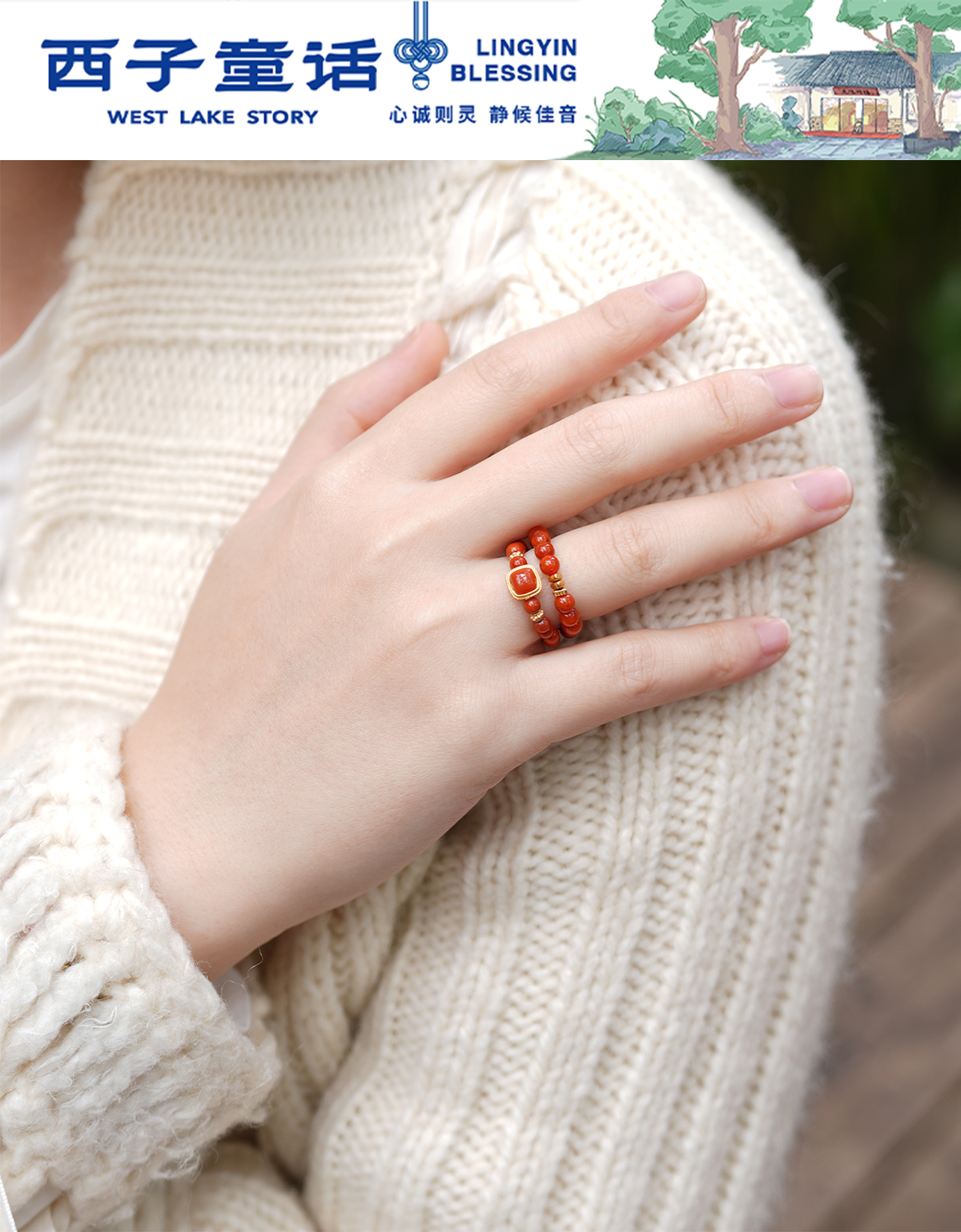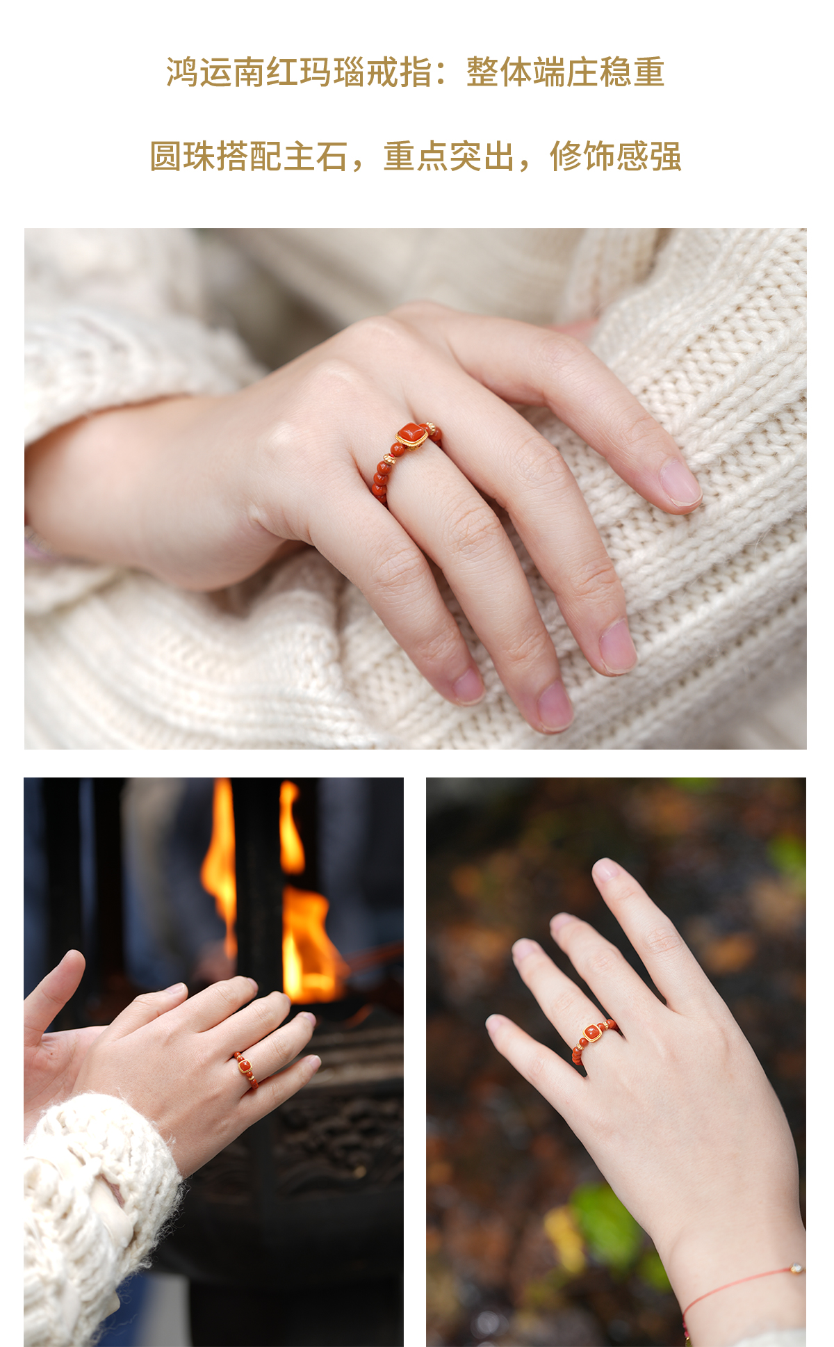 【预售3-5天】灵隐文创 鸿运当头南红玛瑙戒指招米好运戒指