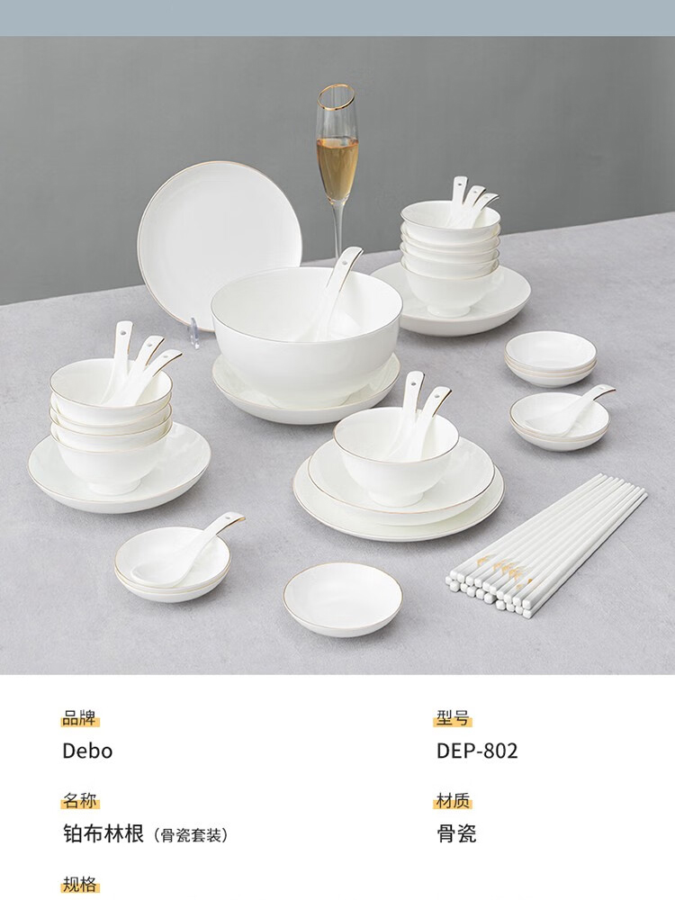 德铂Debo 铂布林根 (骨瓷套装)餐具套装陶瓷碟碗勺盘46件套 DEP-802