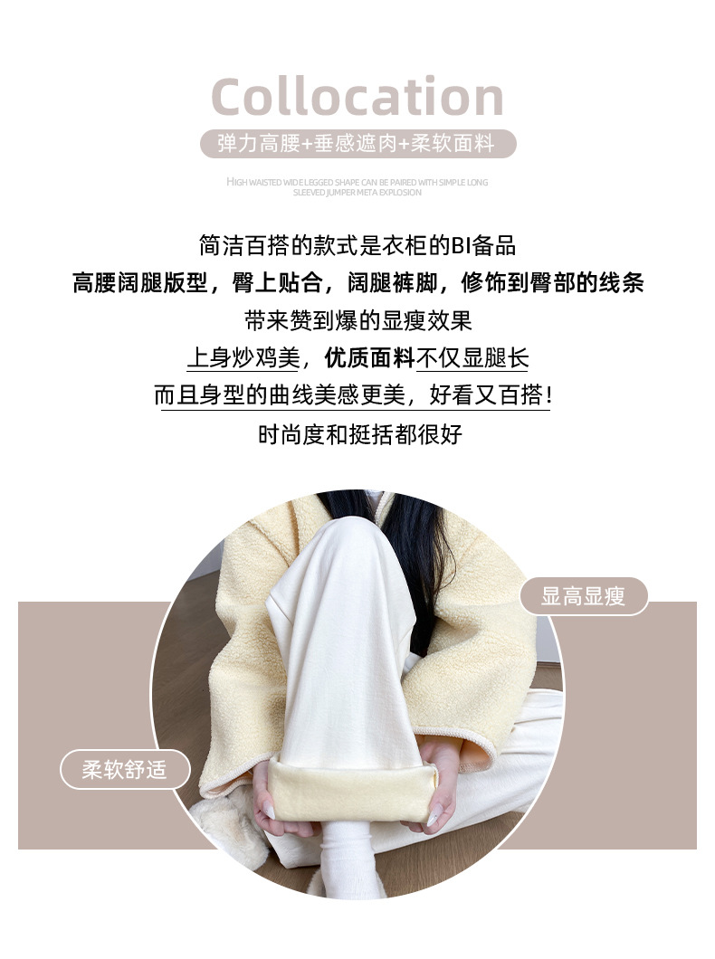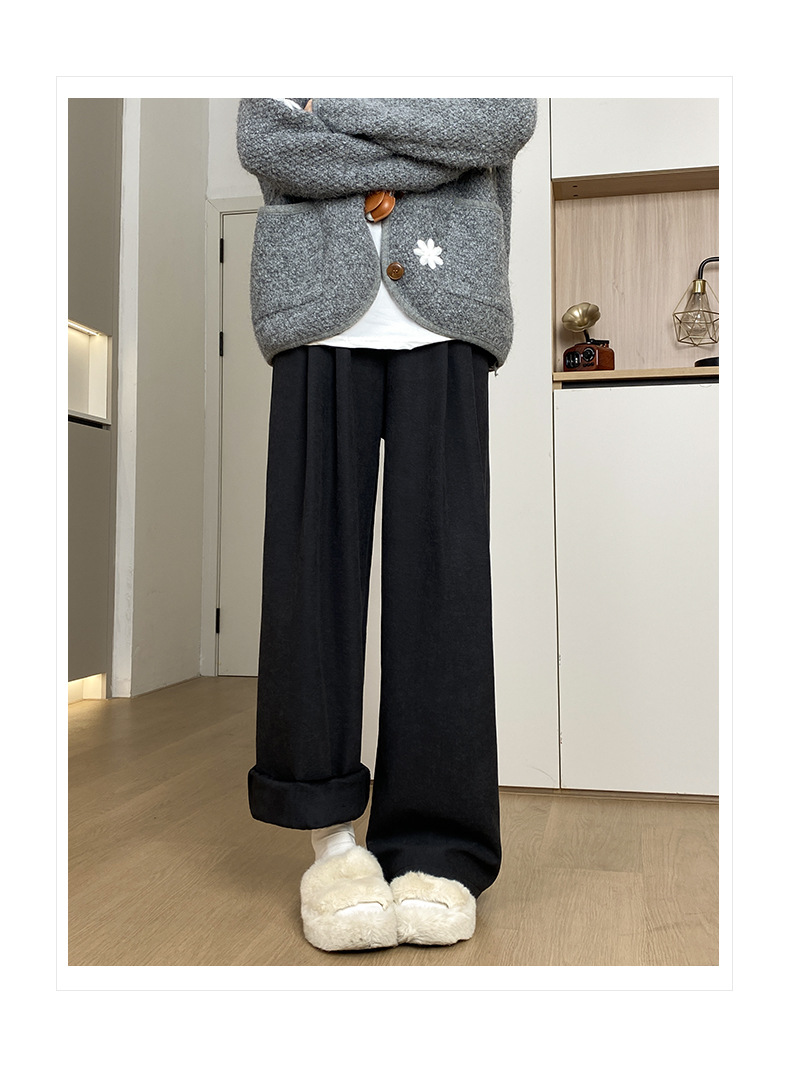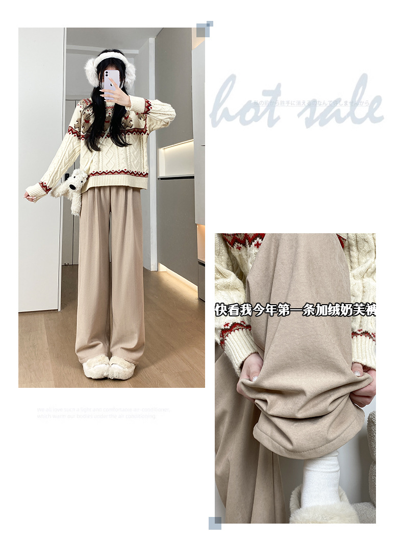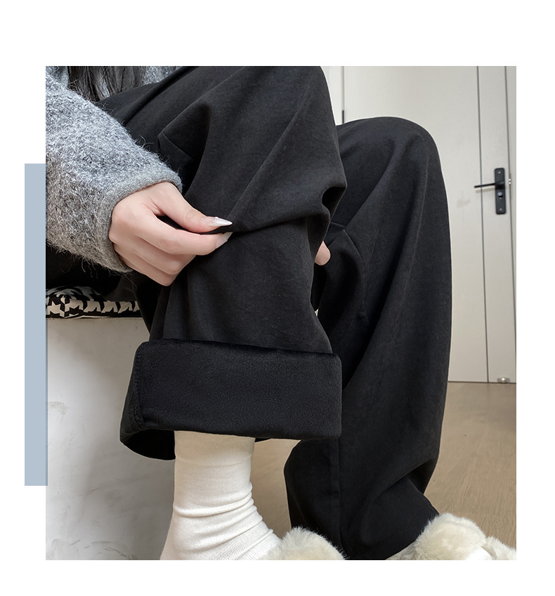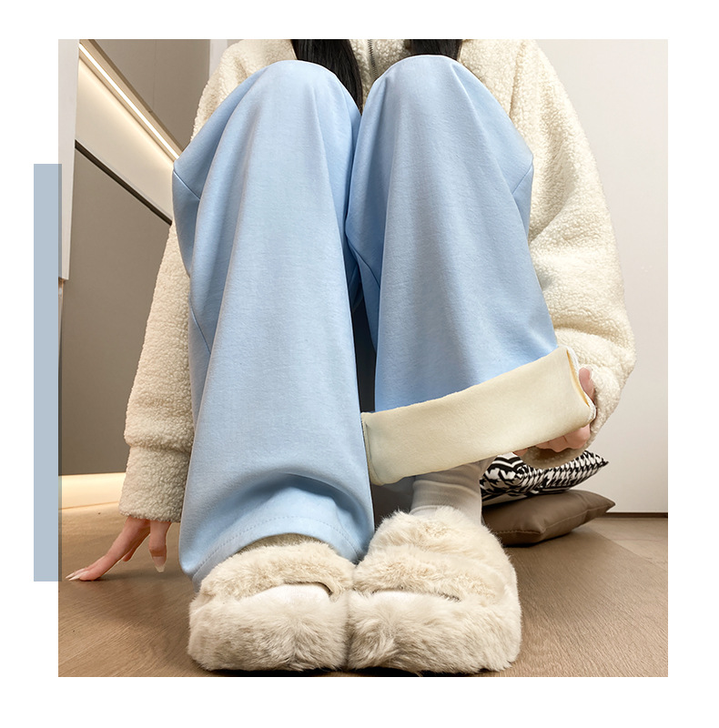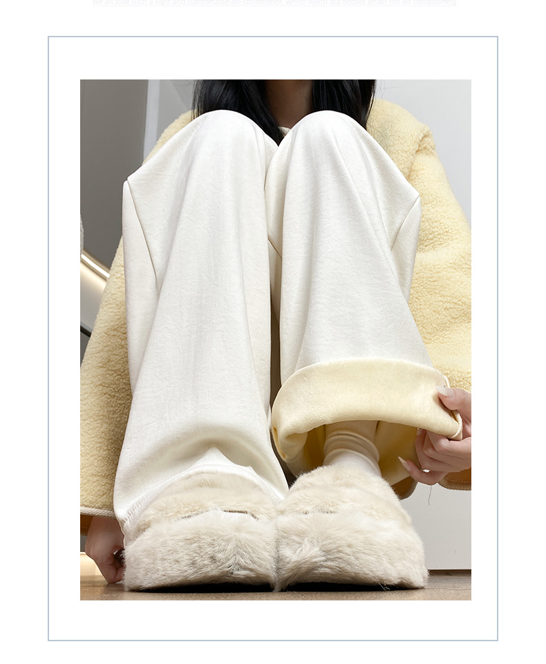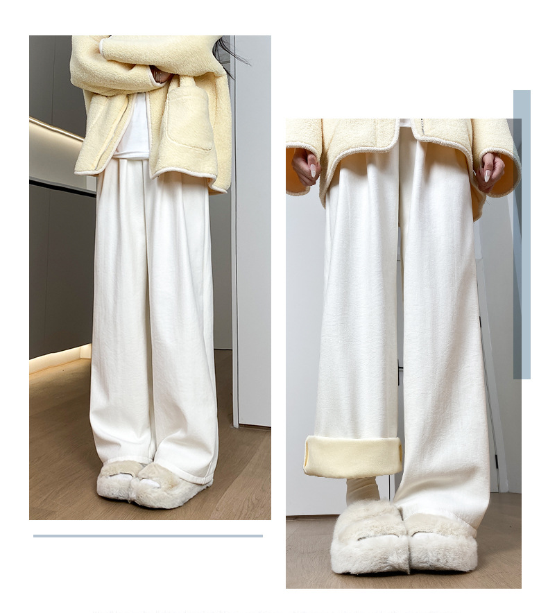 羊羔绒奶芙裤女秋冬季加绒加厚棉裤2025新款休闲小个子直筒阔腿裤