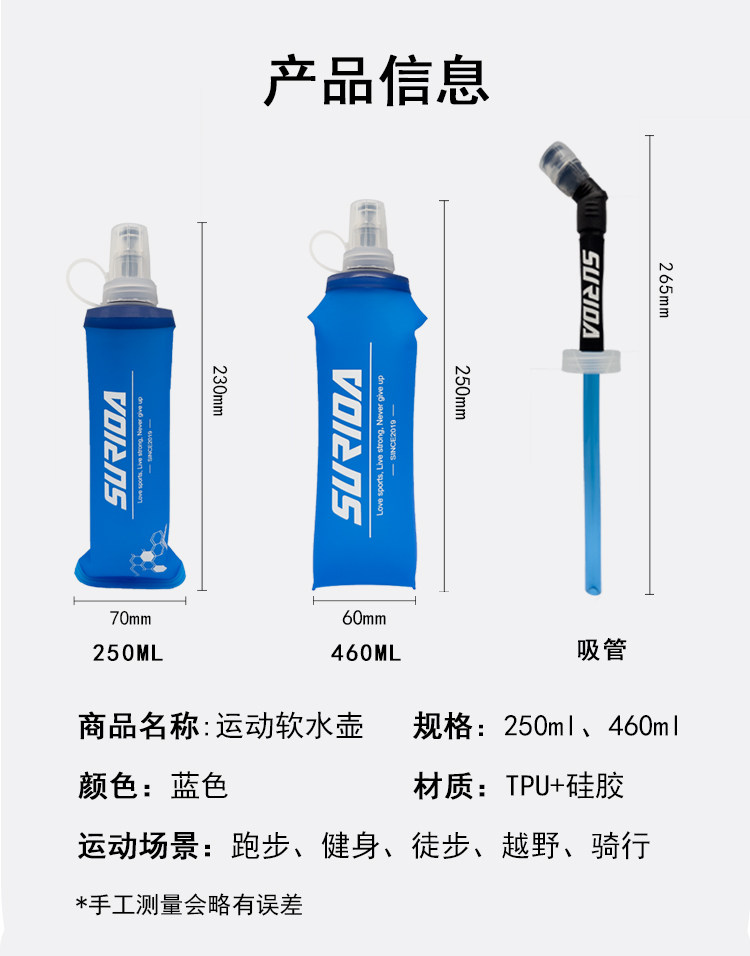 速力达运动软水壶户外硅胶水袋马拉松越野跑步健身便捷可折叠水杯