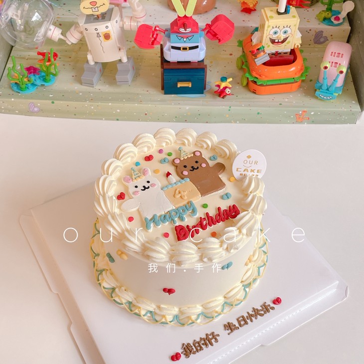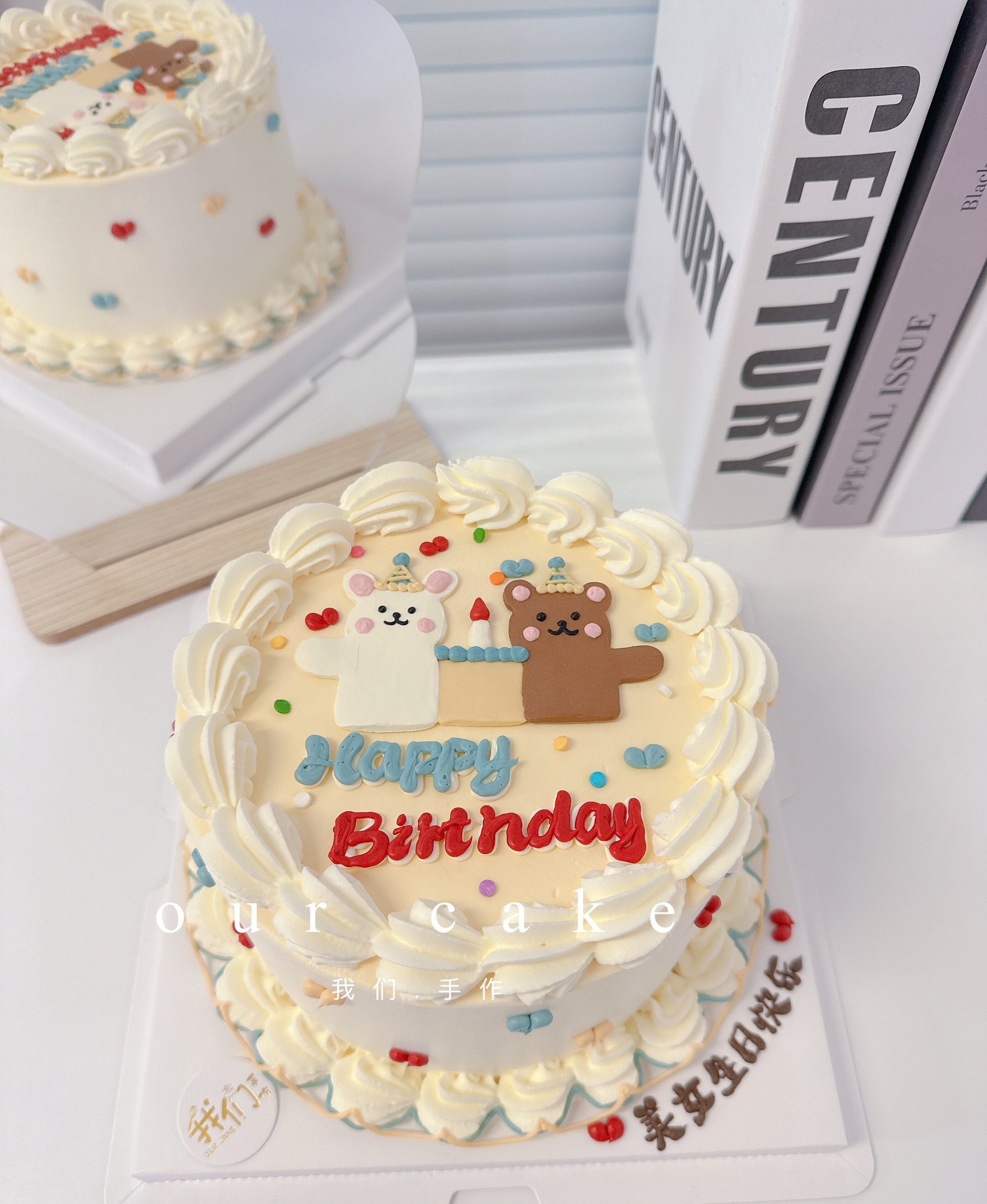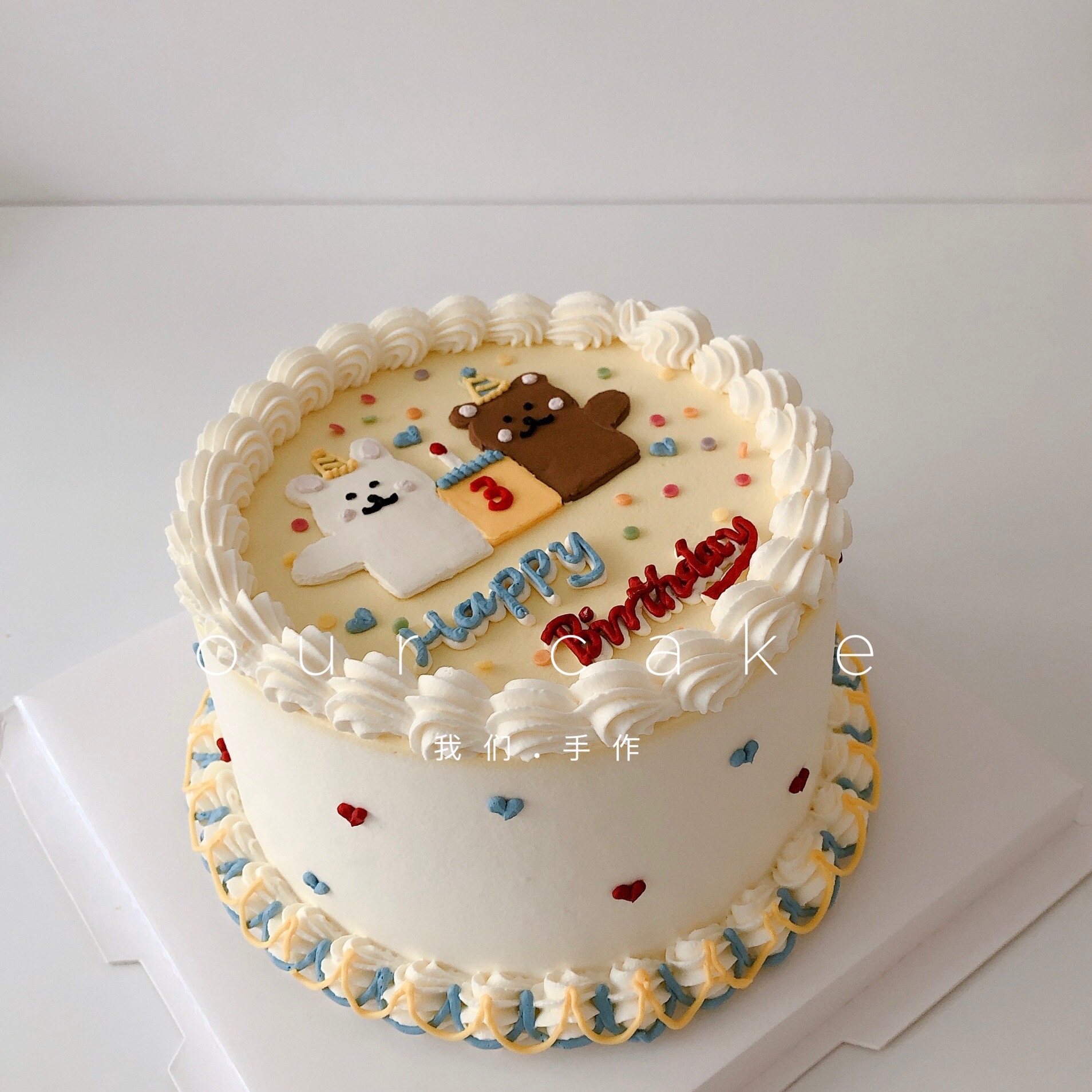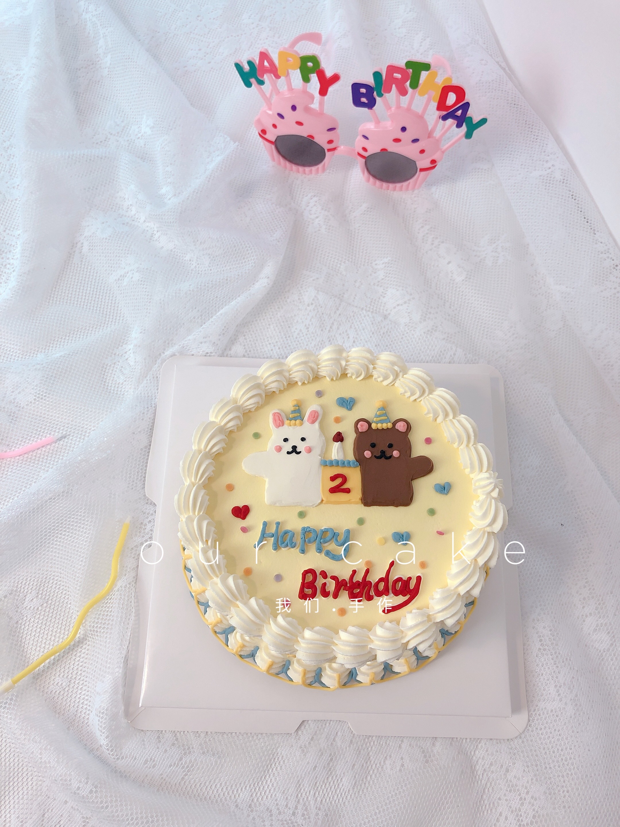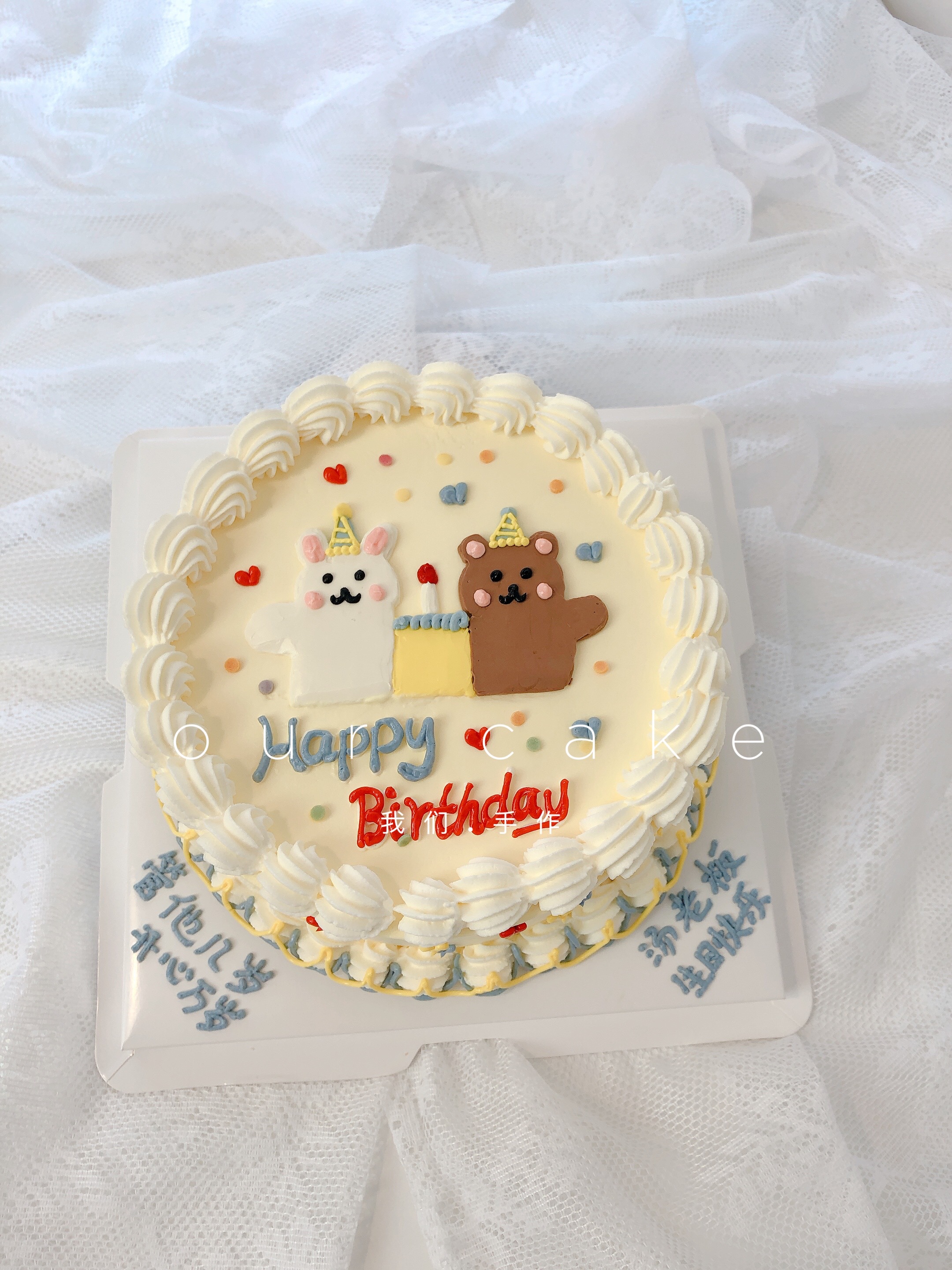 浅黄+白色小熊小兔子复古手绘-低糖处理无添加