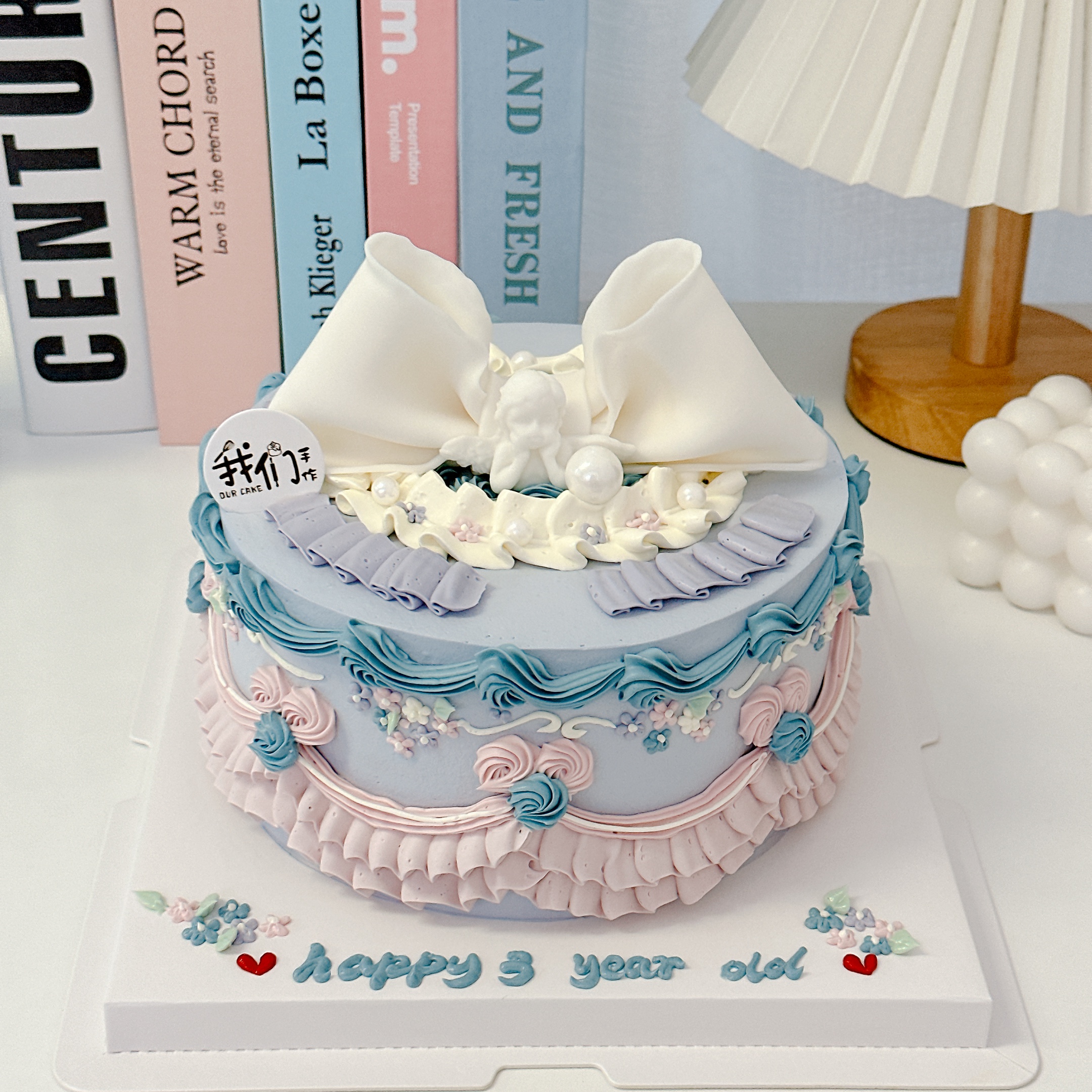 微加高粉蓝ins风蝴蝶结蛋糕送女生老婆-低糖处理无添加