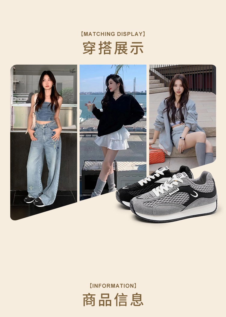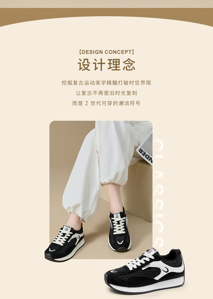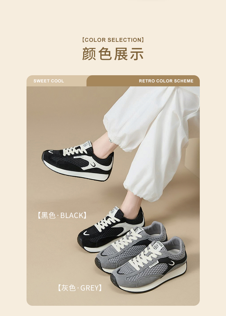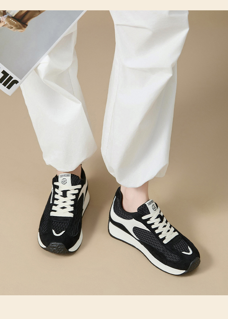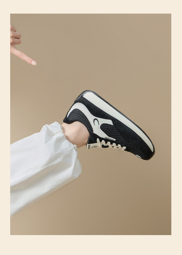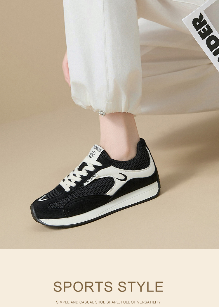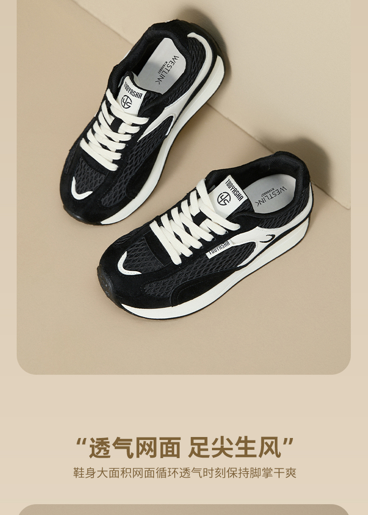 西遇德训鞋女新款秋季百搭复古休闲鞋黑色舒适轻便平底运动鞋K1656937