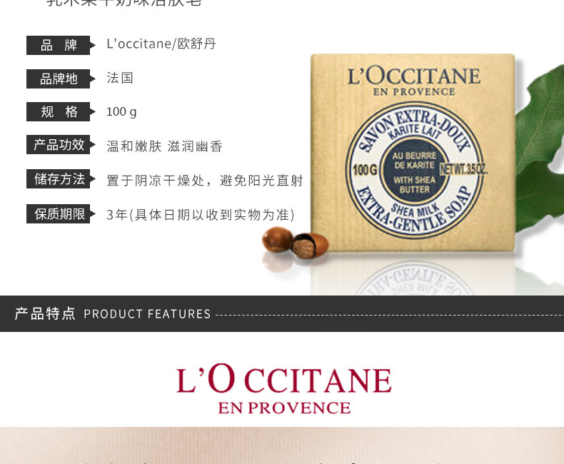 L'OCCITANE 欧舒丹 乳木果牛奶沐浴皂 100G 法国