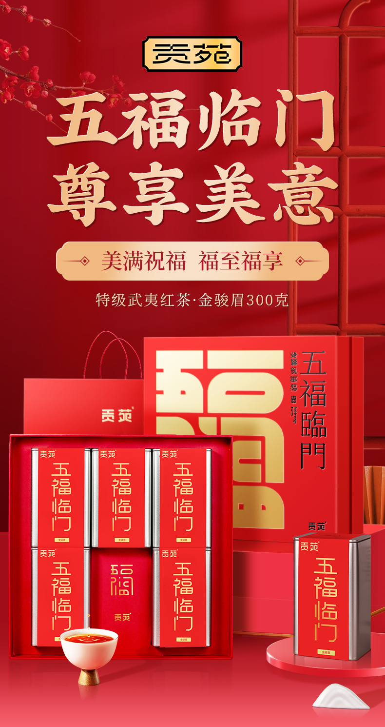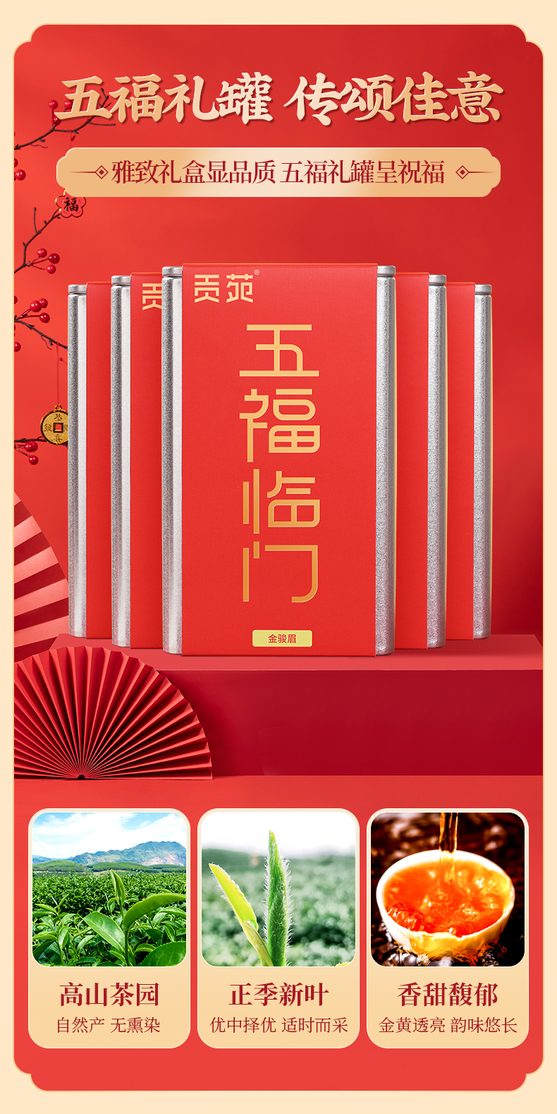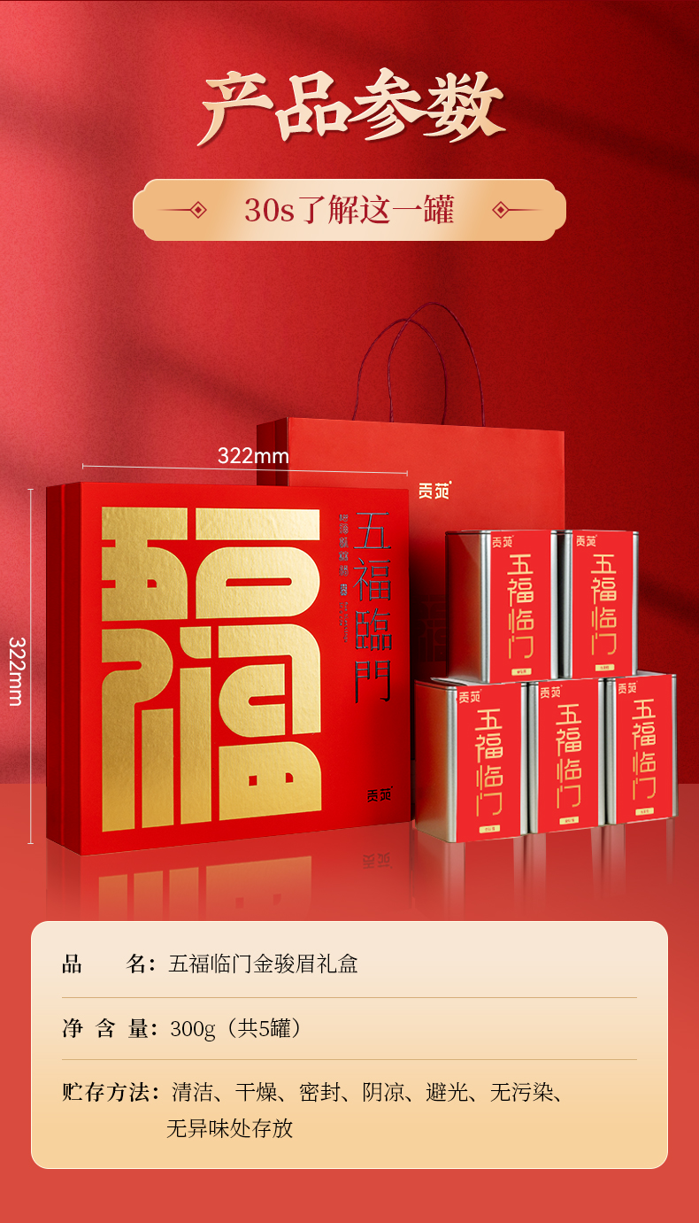 【自营】 贡苑 特级金骏眉红茶 礼盒装 6克*50包 共300g