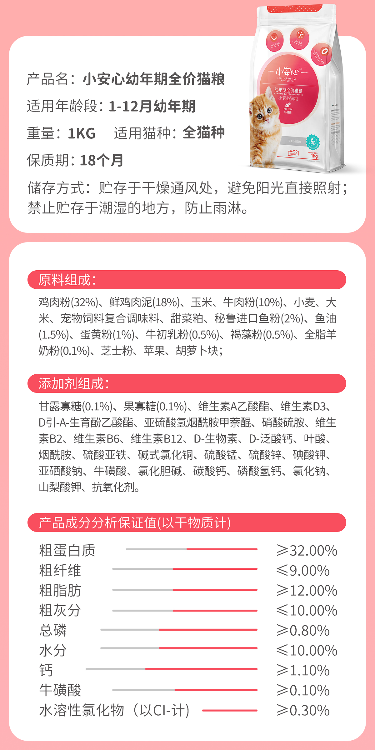 小安心通用猫粮2kg 鲜肉全价猫粮