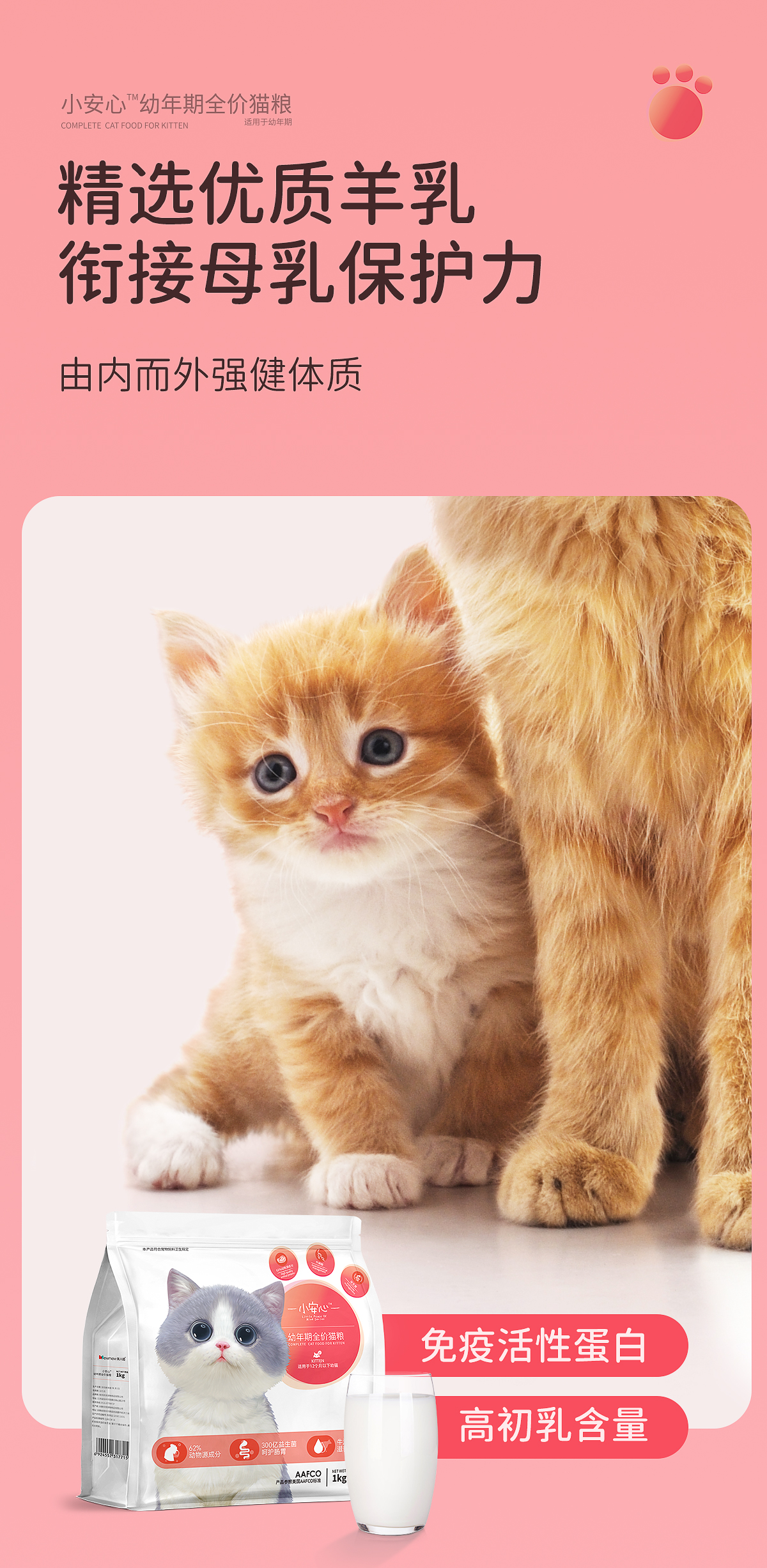 小安心 鲜肉羊奶幼猫粮 1kg(1-12月幼猫)添加冻干鸡肉