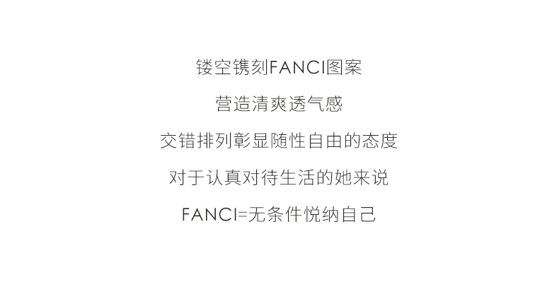 - FANCI范琦始于2012年,以珠宝表达内心为初衷,聚焦不同亲密关系情感表达,联结无形情感,以情感符号「I FANCI U」传情达意,诠释“恋爱戴范琦,起点是你,终点亦是你”始终如一的恋爱价值观。