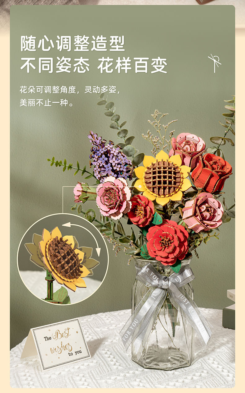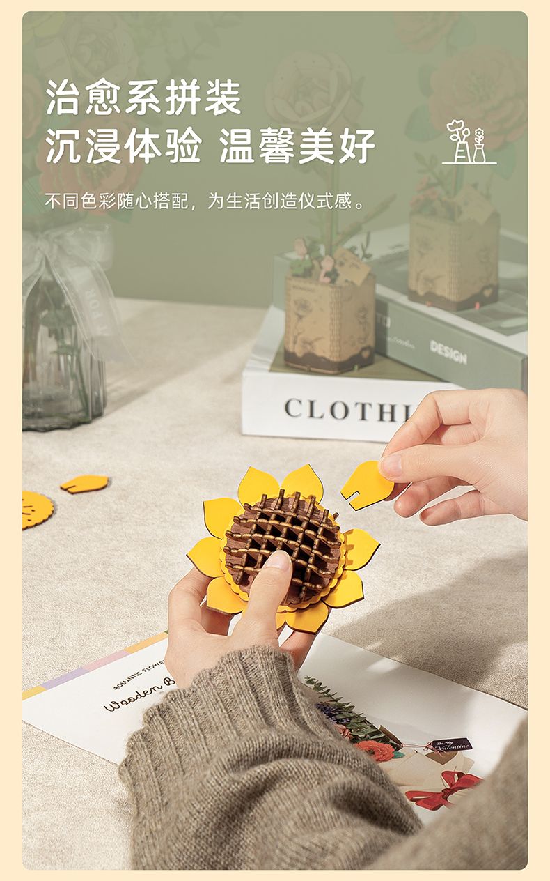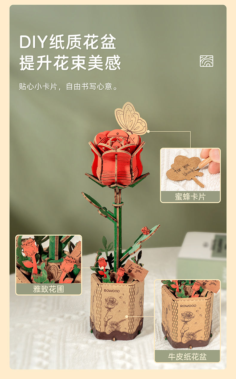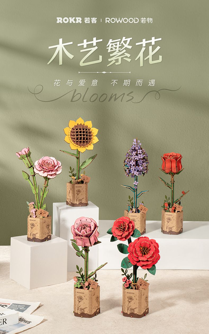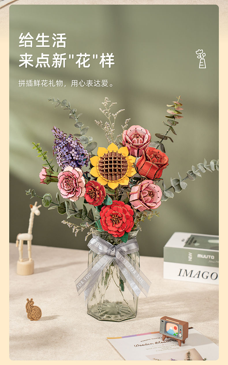 若物 木艺繁花diy积木花 毕业礼物拼装模型玩具永生花 母亲节礼物生日礼物手工制作永生花