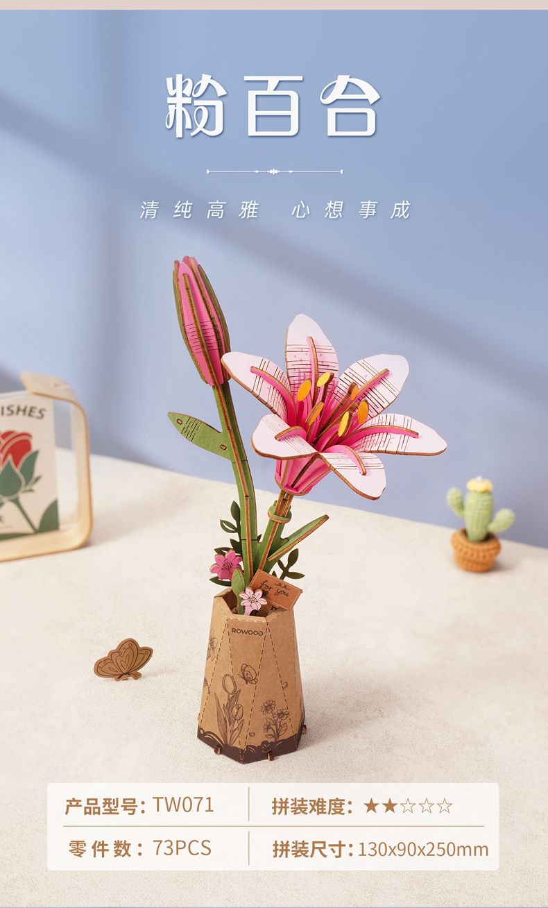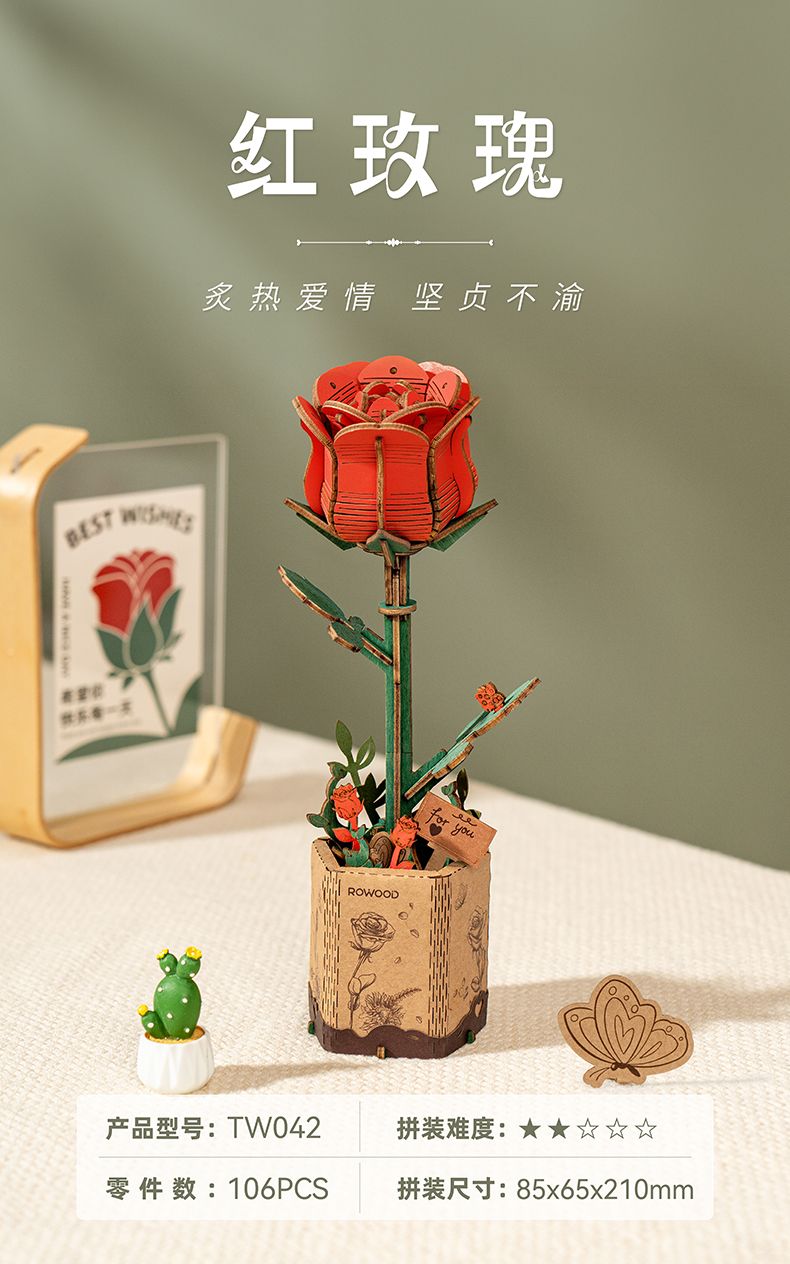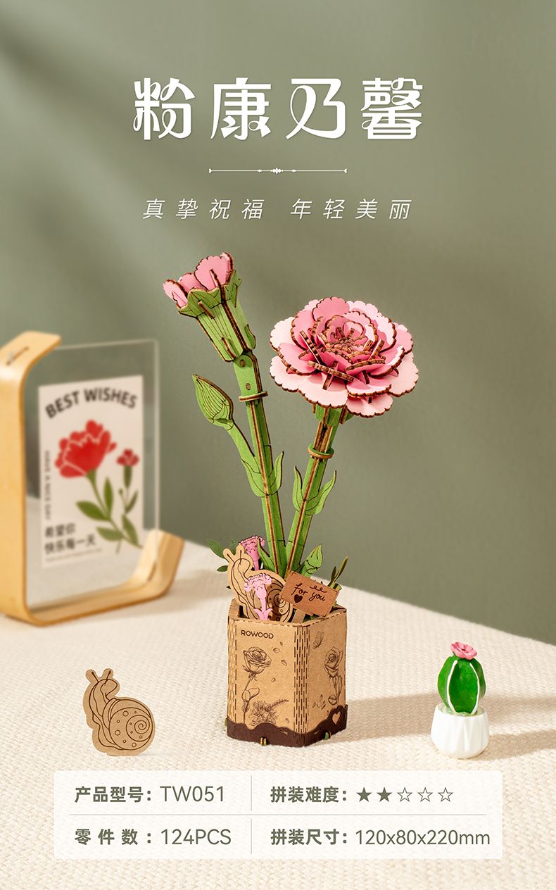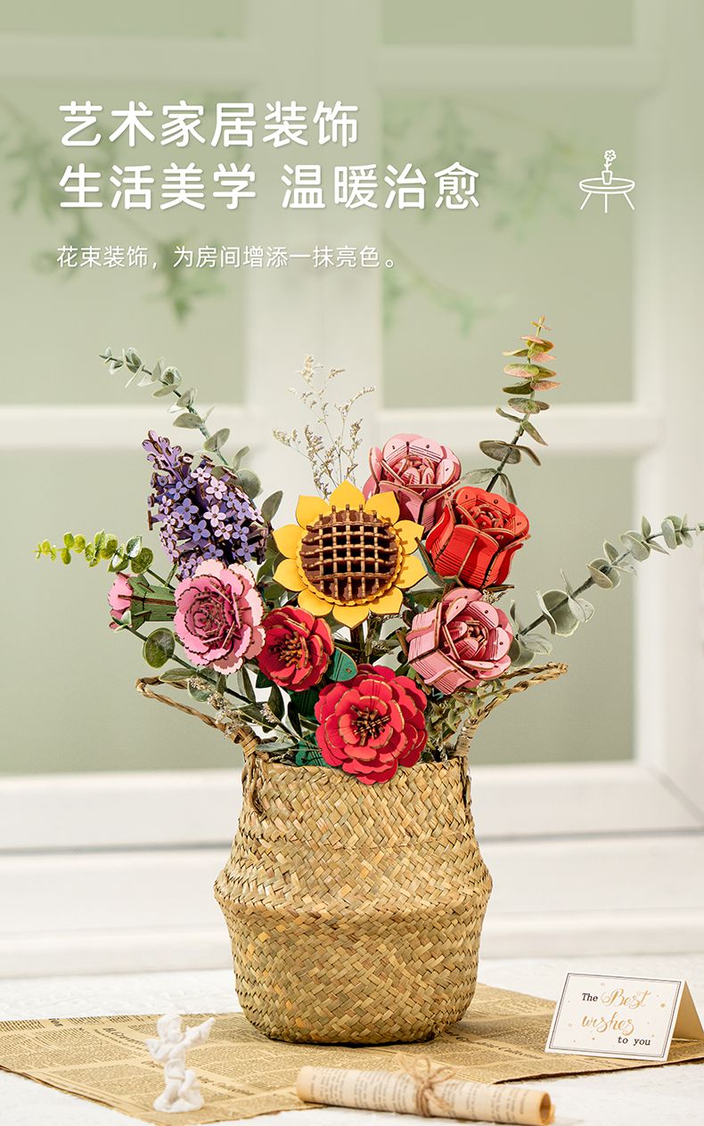 若物 木艺繁花diy积木花 毕业礼物拼装模型玩具永生花 母亲节礼物生日礼物手工制作永生花