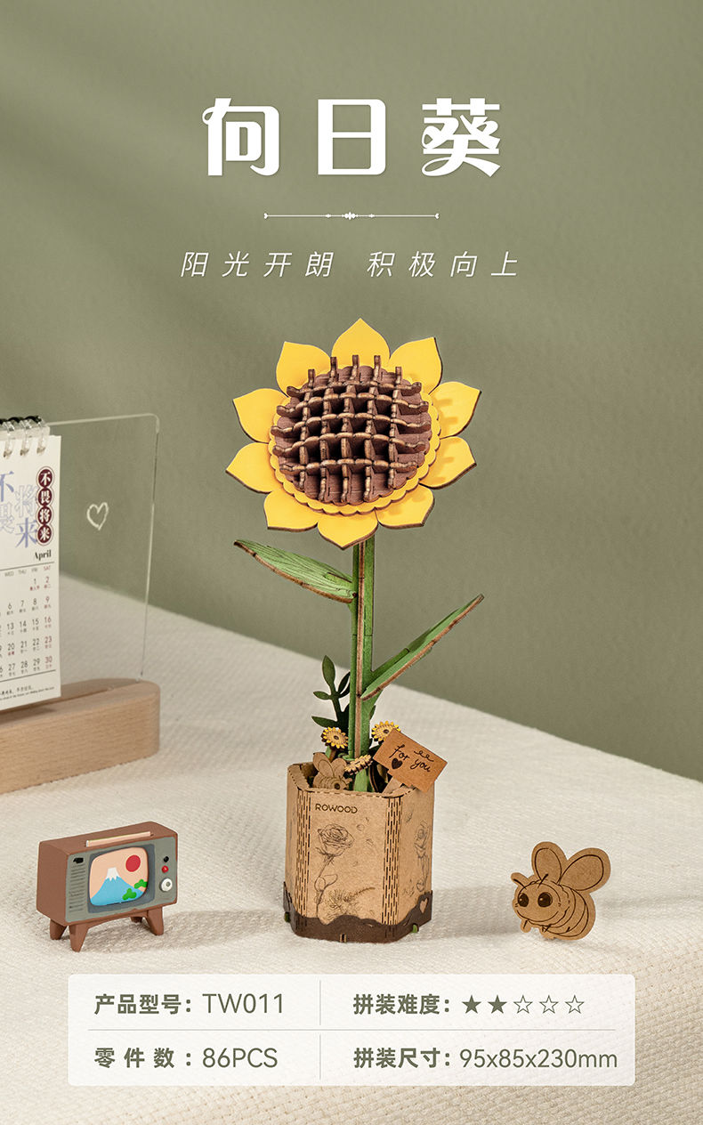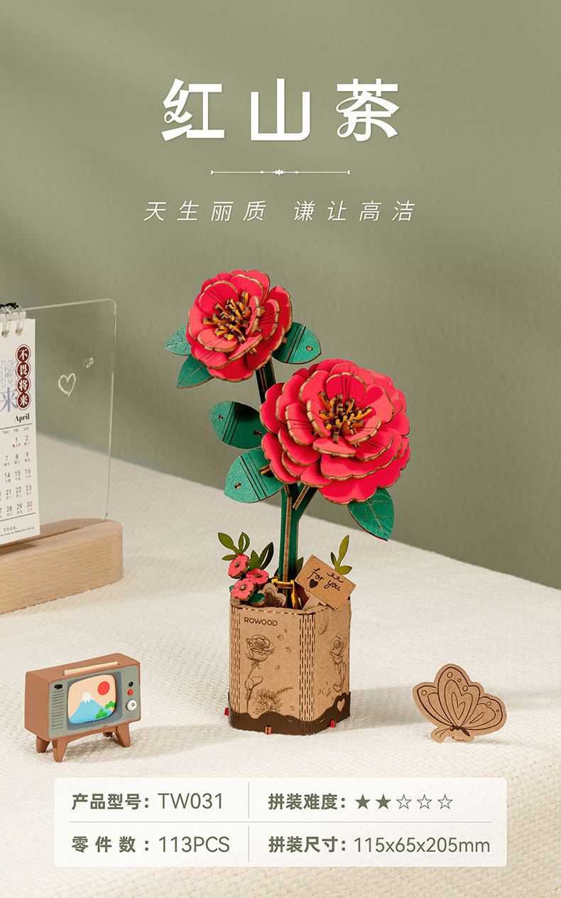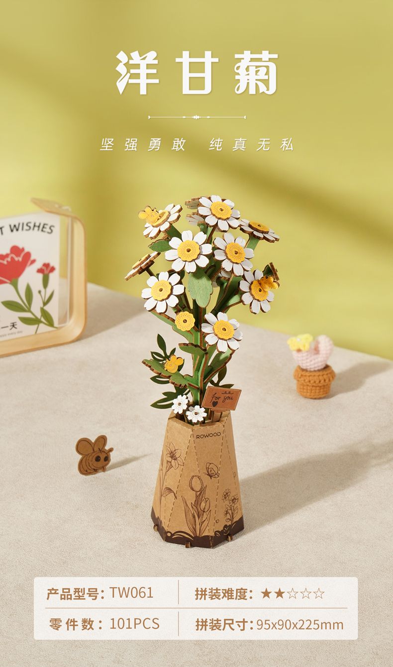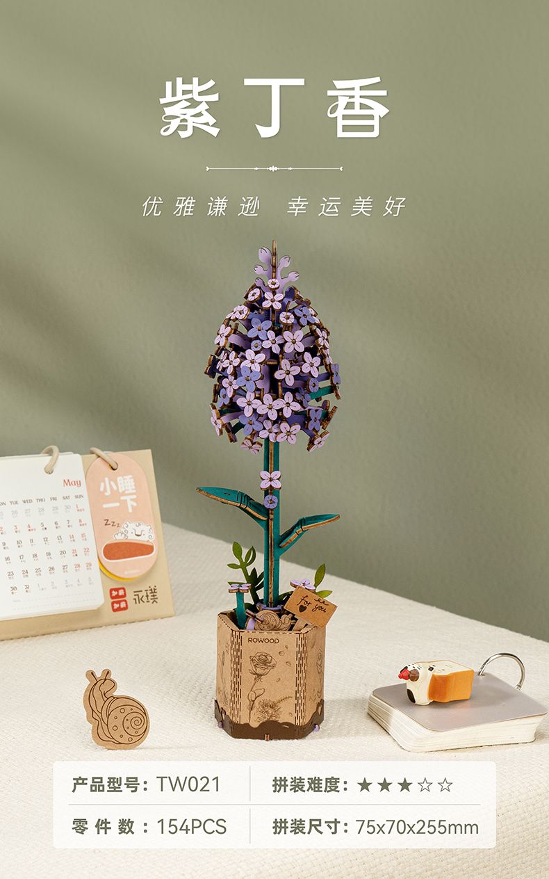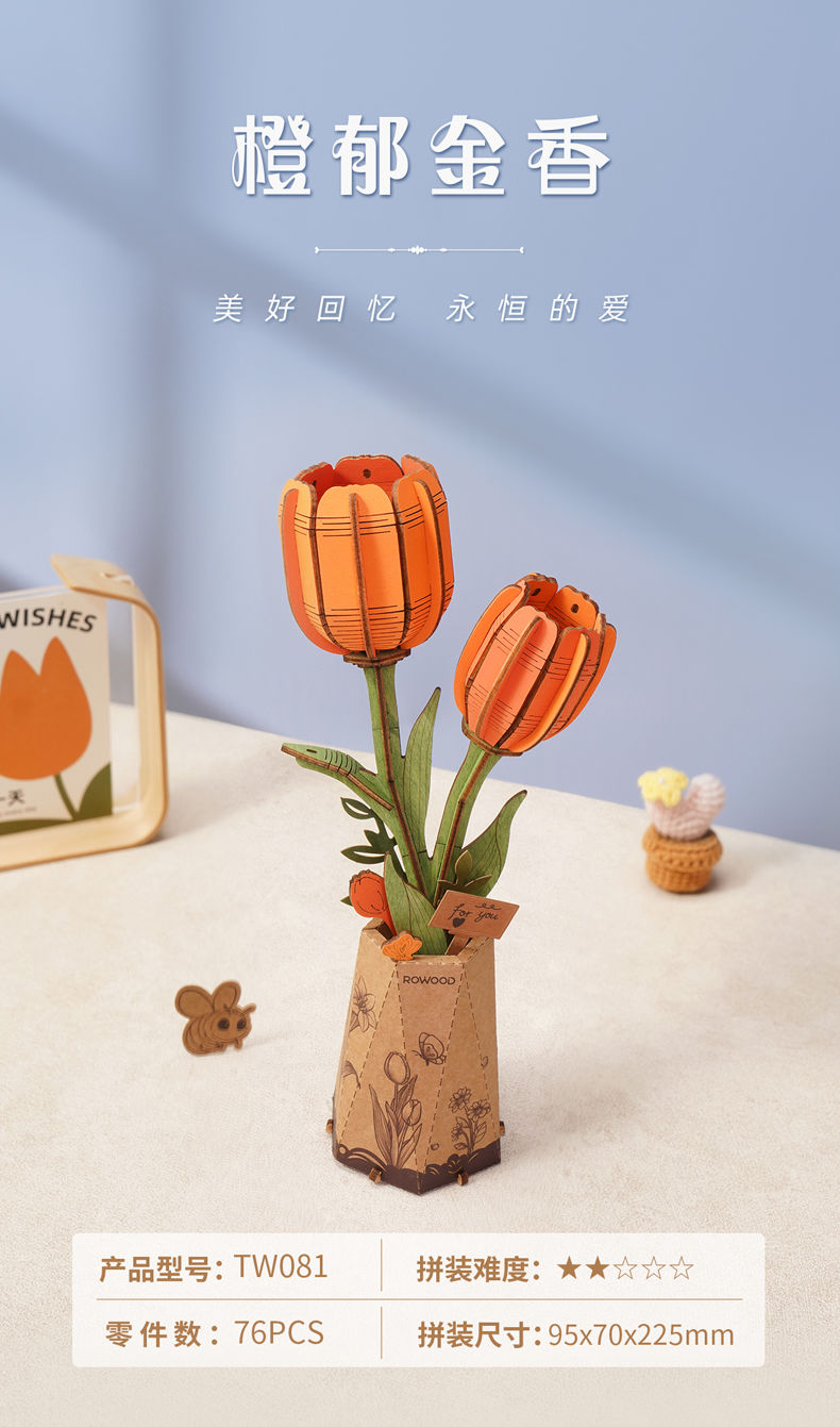 若物 木艺繁花diy积木花 毕业礼物拼装模型玩具永生花 母亲节礼物生日礼物手工制作永生花