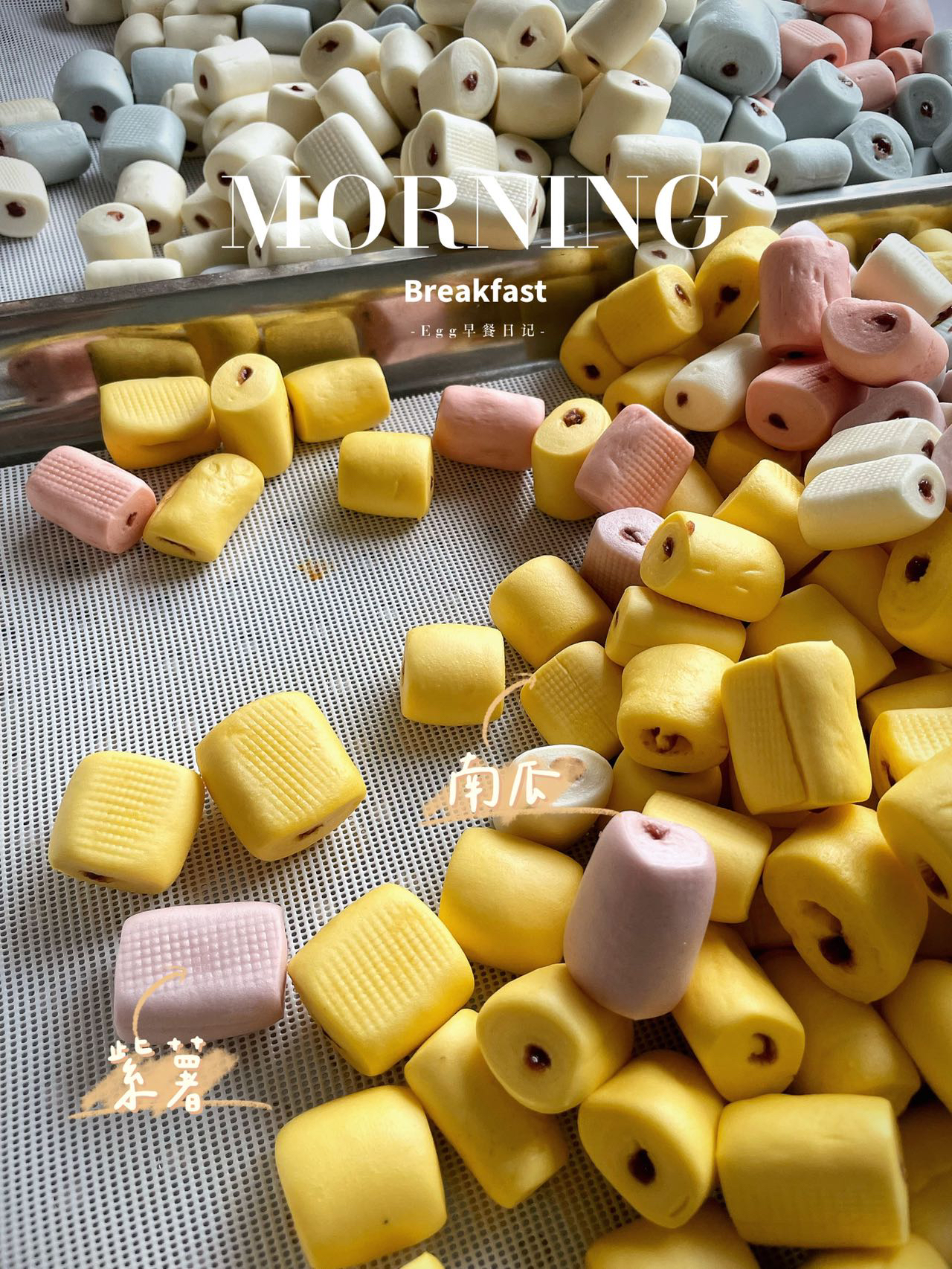 【配料】小麦粉、奶粉、酵母、白砂糖、水菠菜粉、紫薯粉、蝶豆花、红曲粉