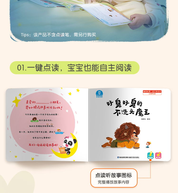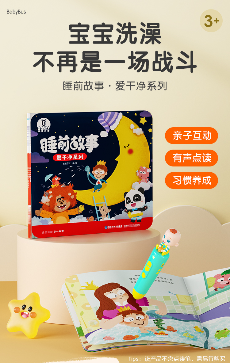 【点读版】宝宝巴士绘本睡前故事3岁+ 爱干净/3册(不含笔)