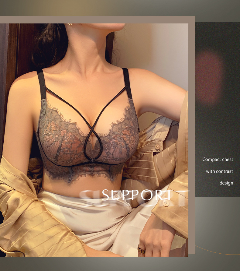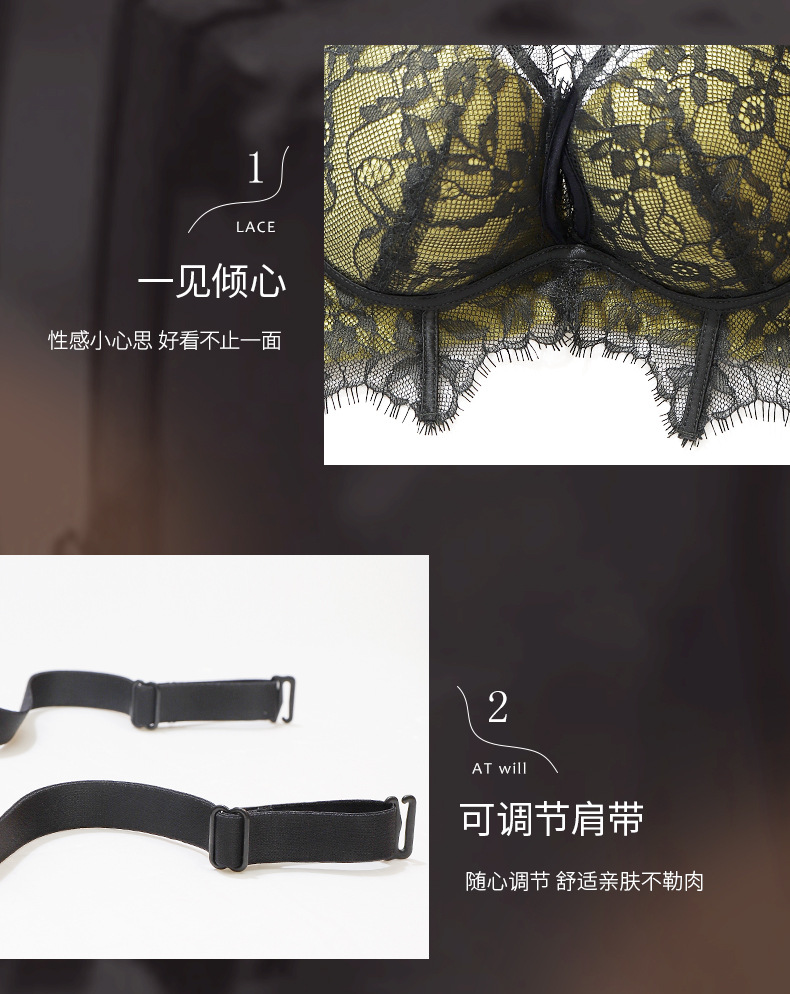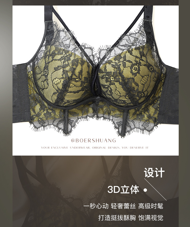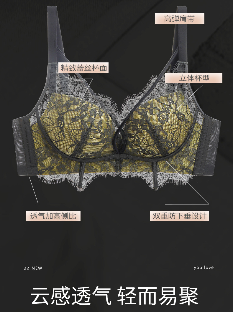 性感蕾丝内衣女 小胸聚拢无钢圈文胸 收副乳防下垂 显胸大性感胸罩套装