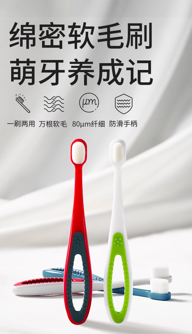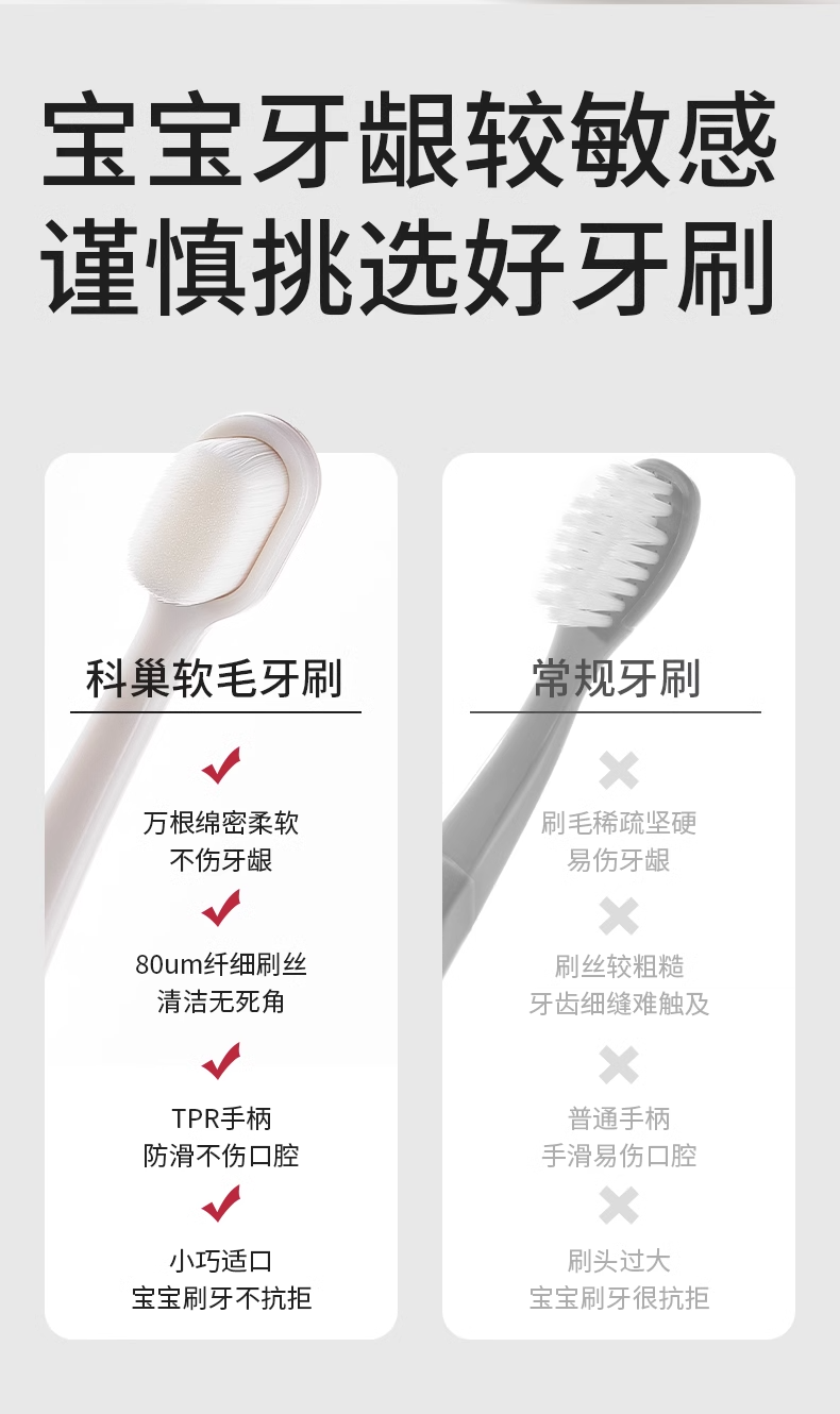 科巢儿童宝宝软毛牙刷0-1-2-3到6一12岁婴儿婴幼儿乳牙口腔清洁器