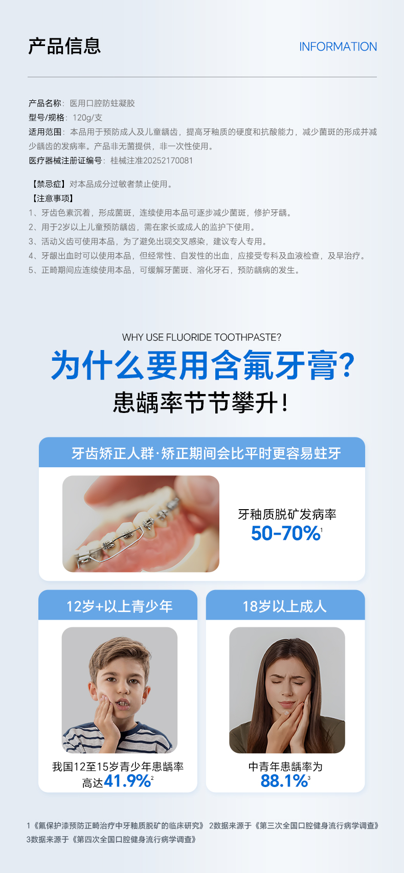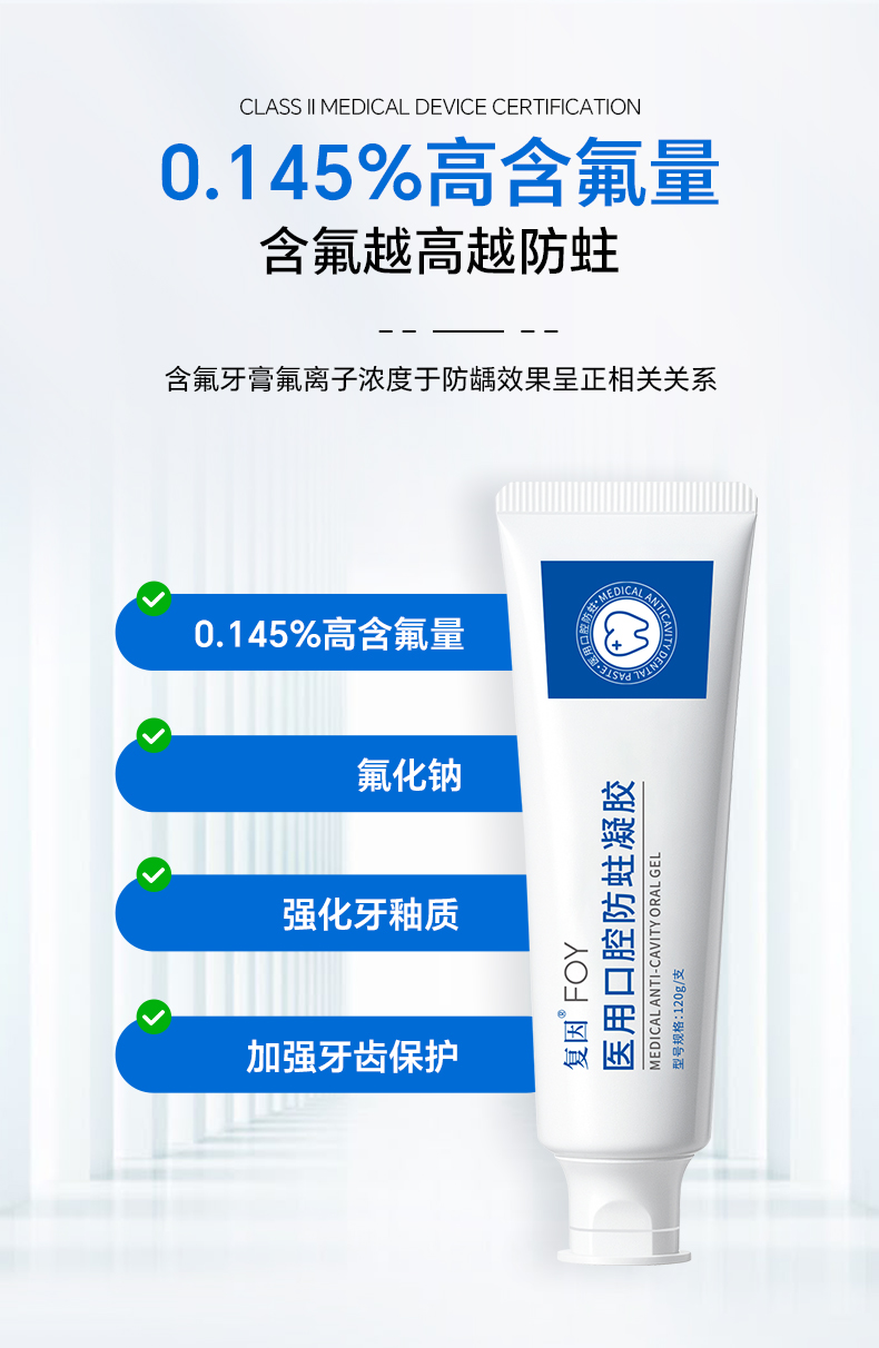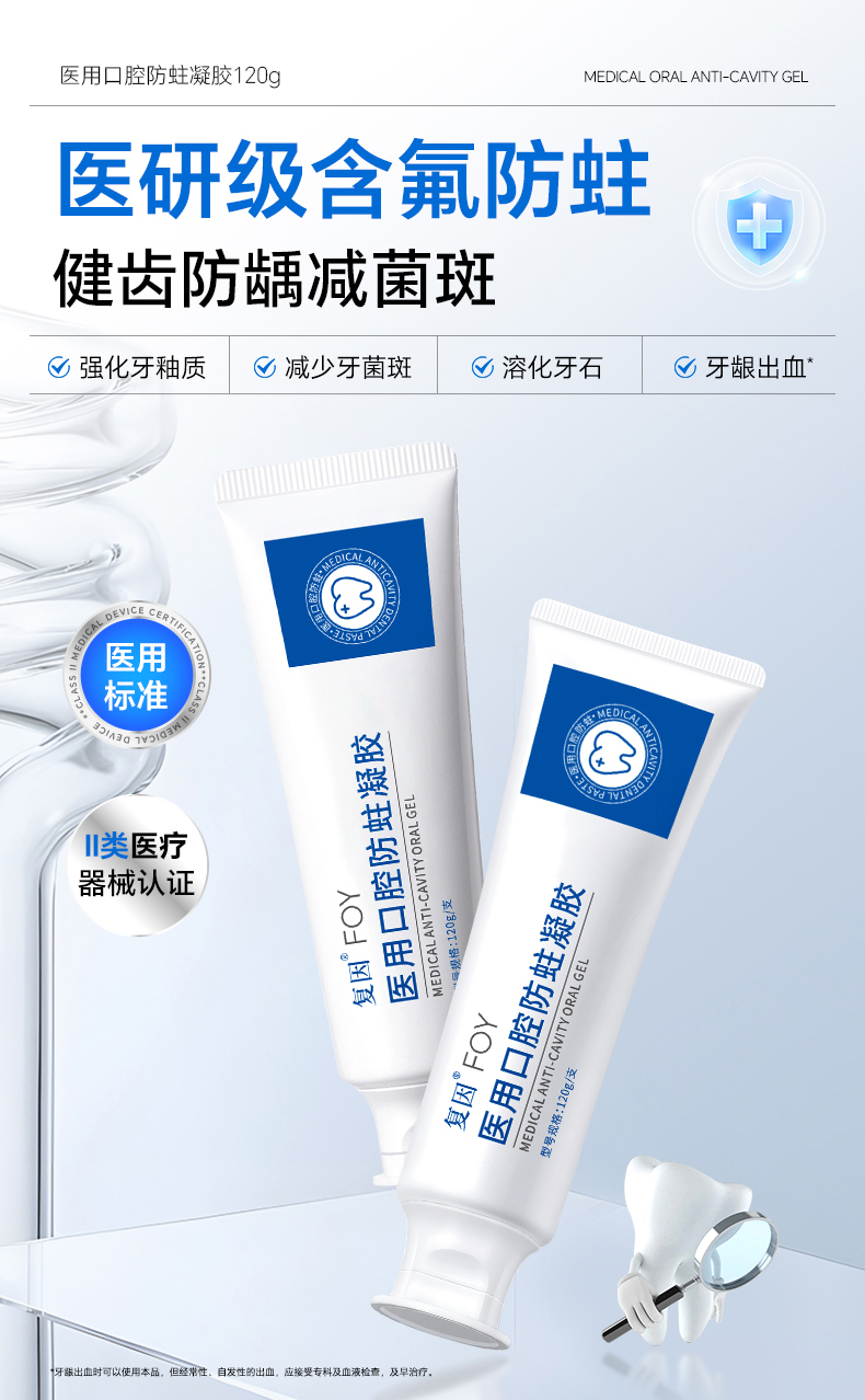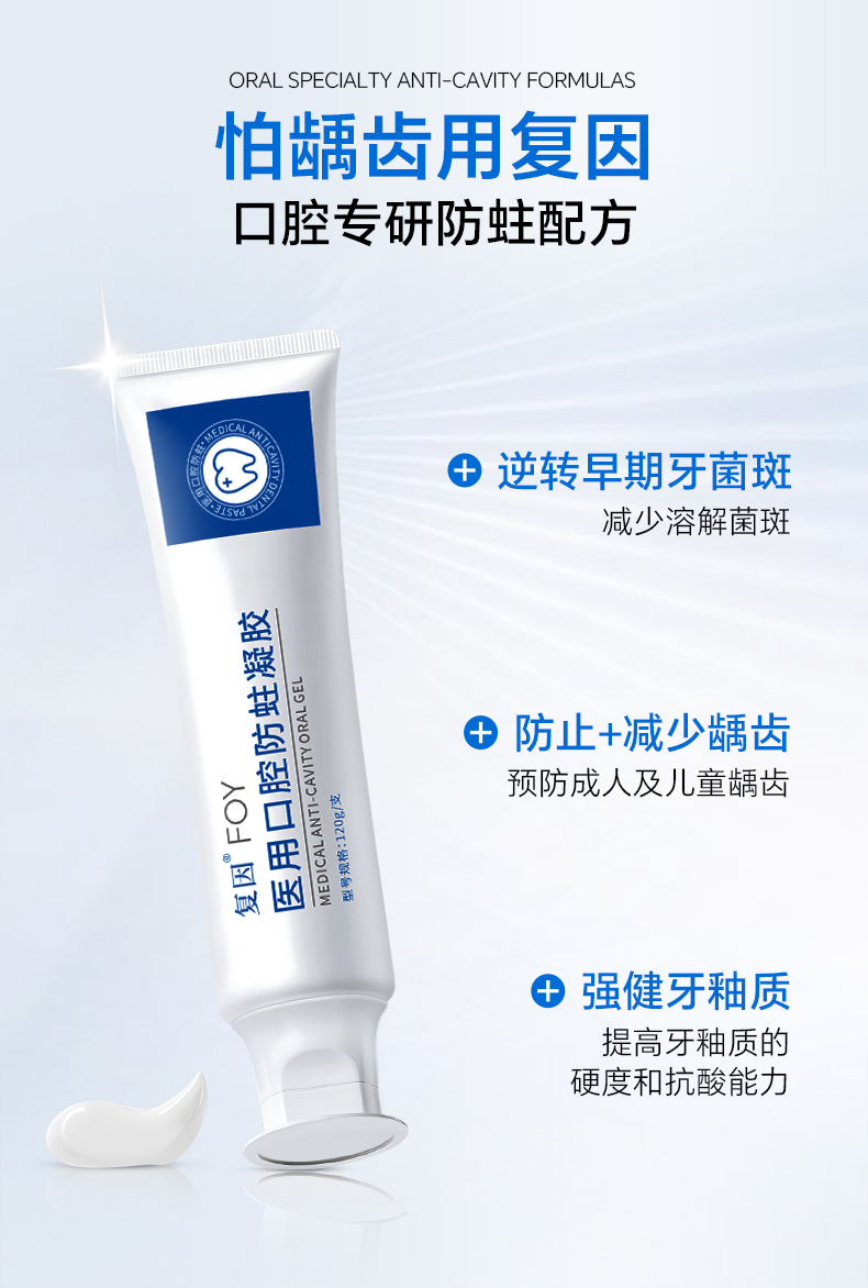 复因FOY医用口腔防蛀凝胶120g/支 成人款 氟化钠 加强牙齿保护