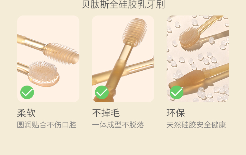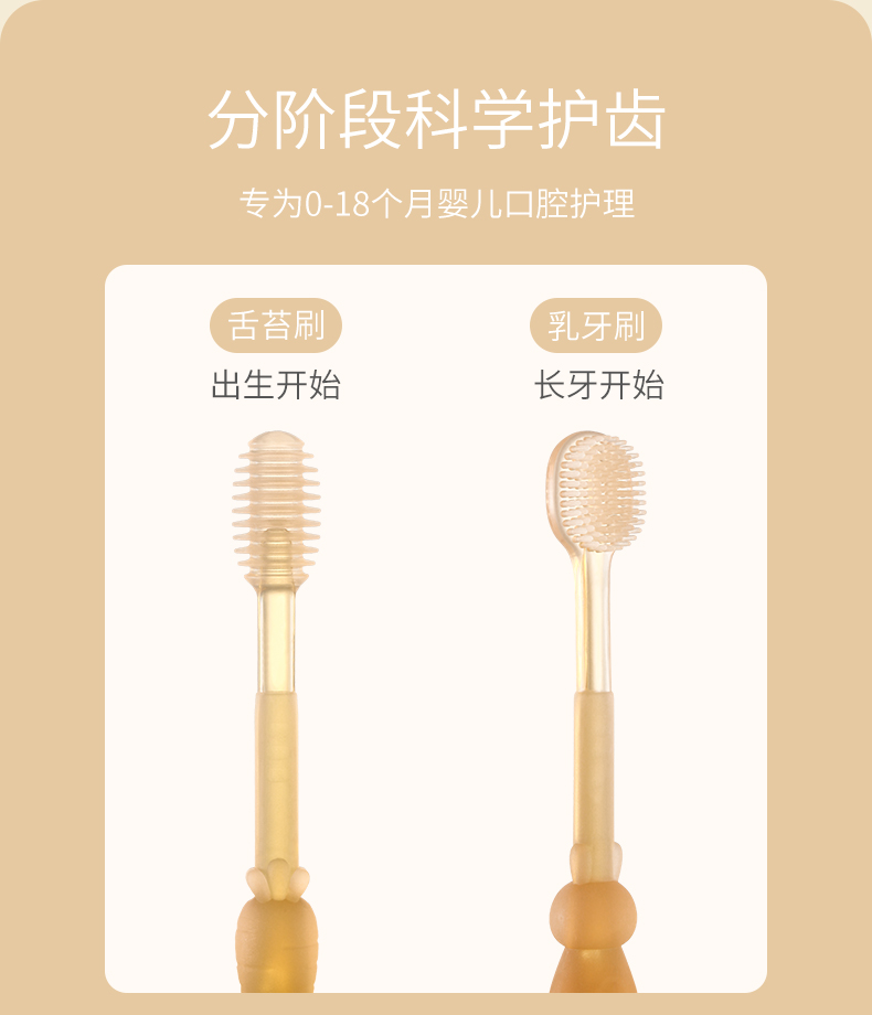 贝肽斯婴儿牙刷婴幼儿乳牙0-1岁半舌苔口腔清洁神器硅胶宝宝牙刷