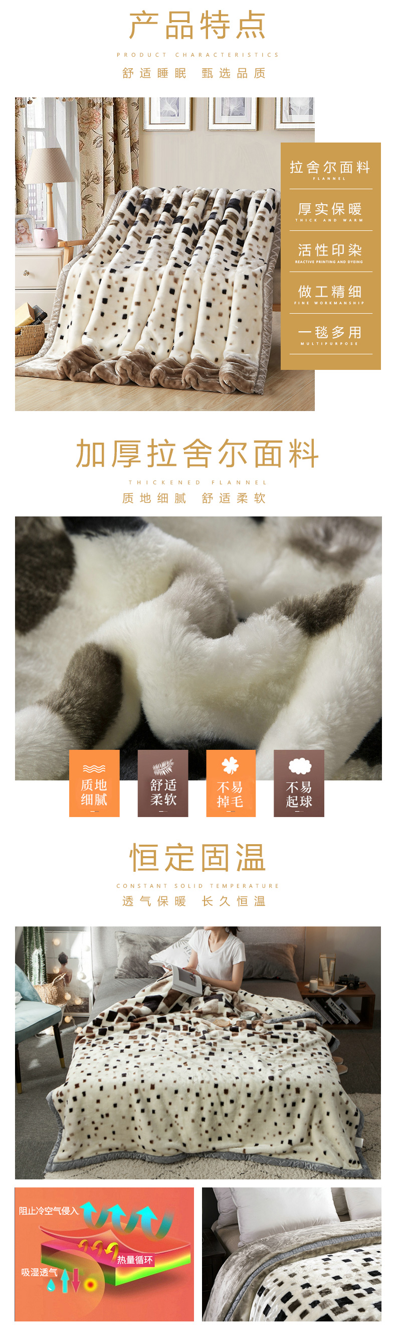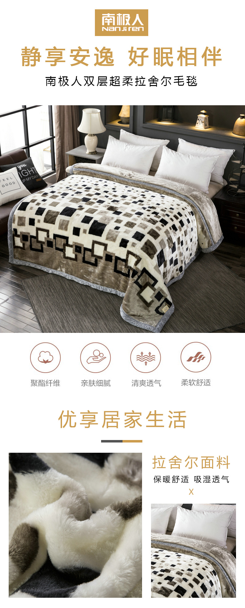 南极人超柔拉舍尔毛毯 200*230cm-7斤