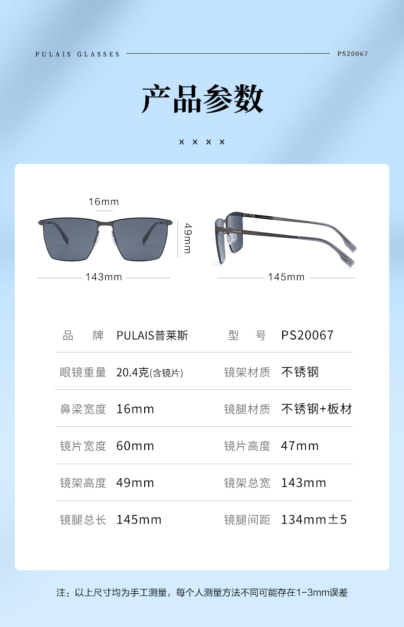 普莱斯太阳镜PS20067 潮流大框型男酷飒开场 不锈钢+板材 三色可选