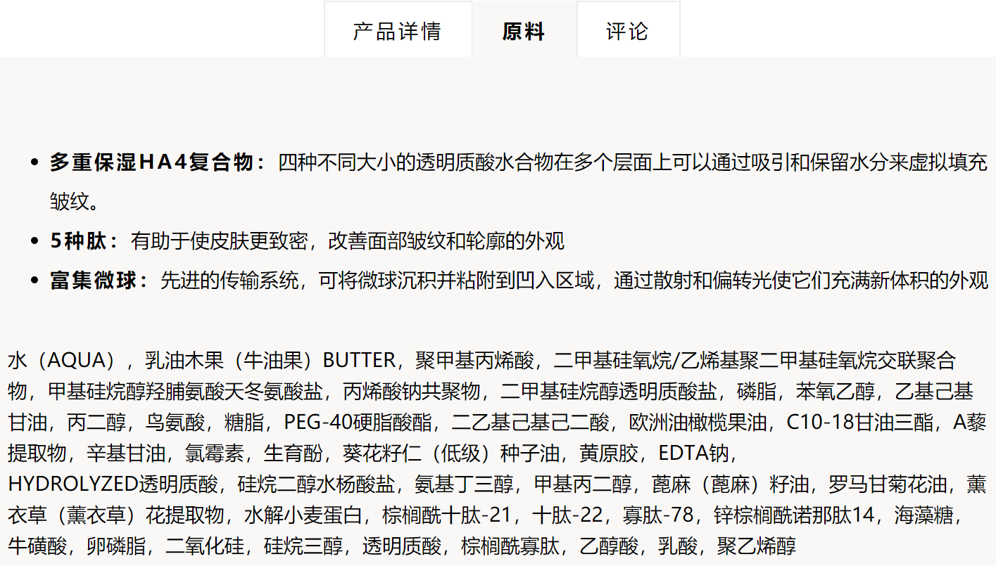 成分也非常牛,五种胜肽+3种玻尿酸,
