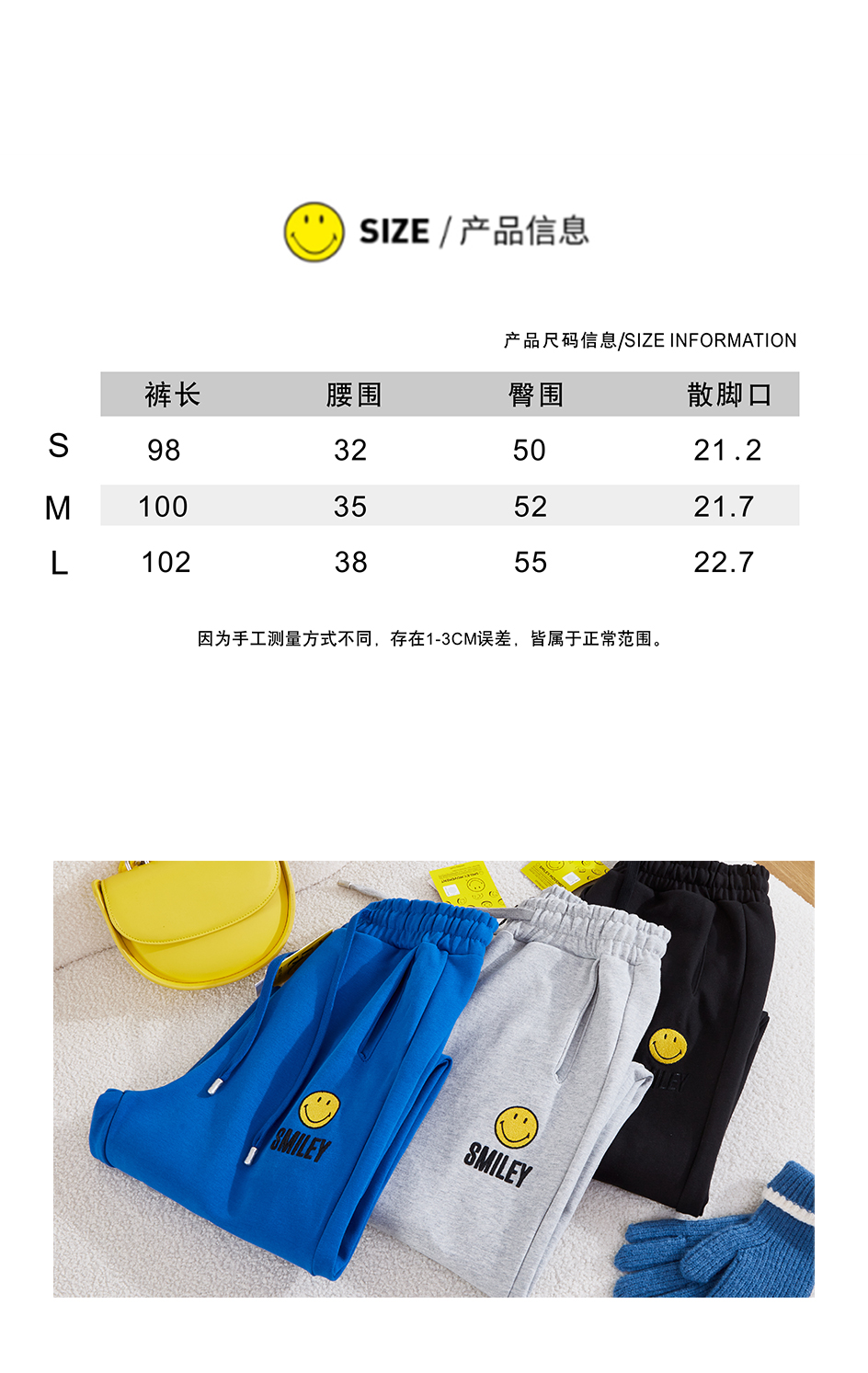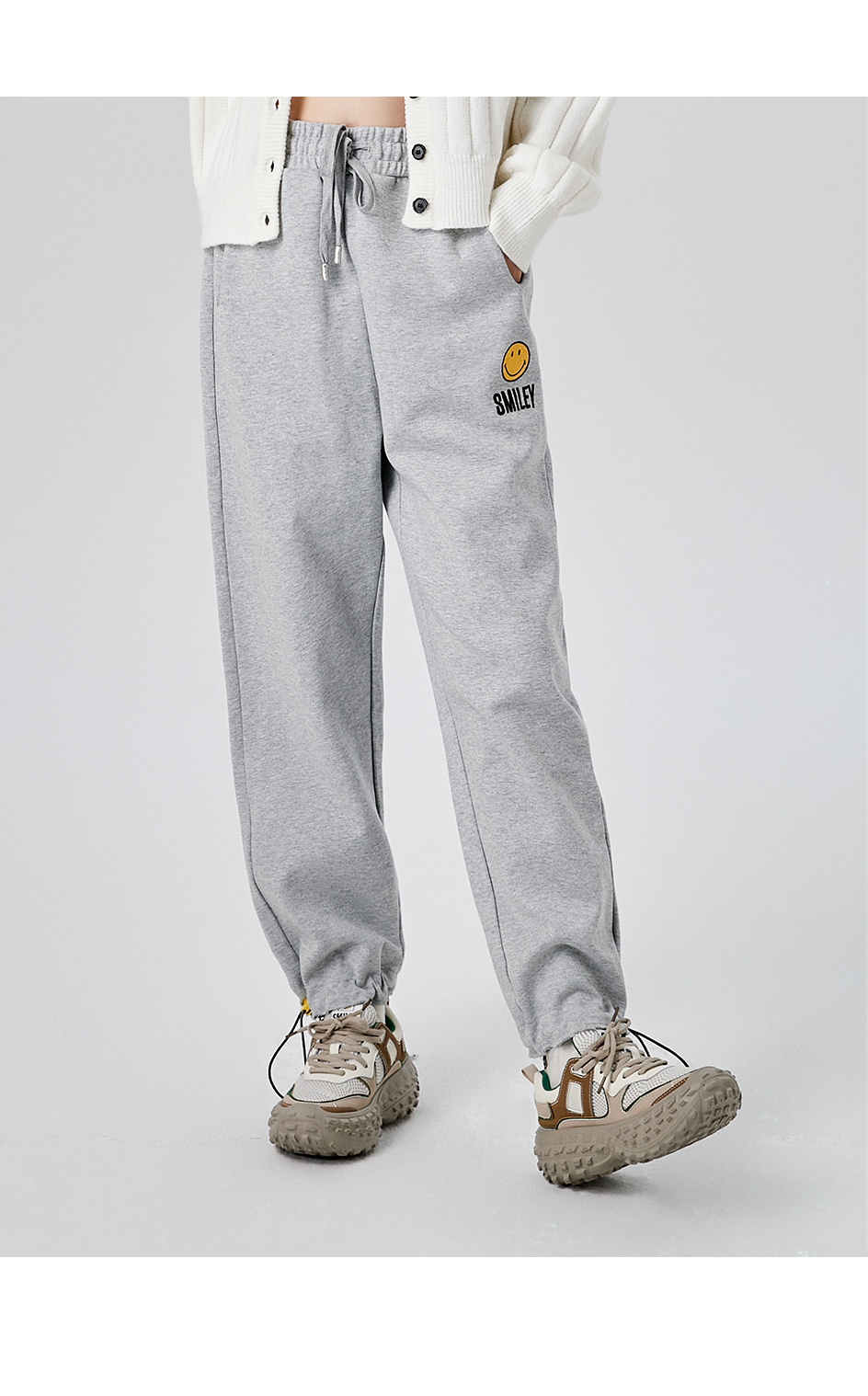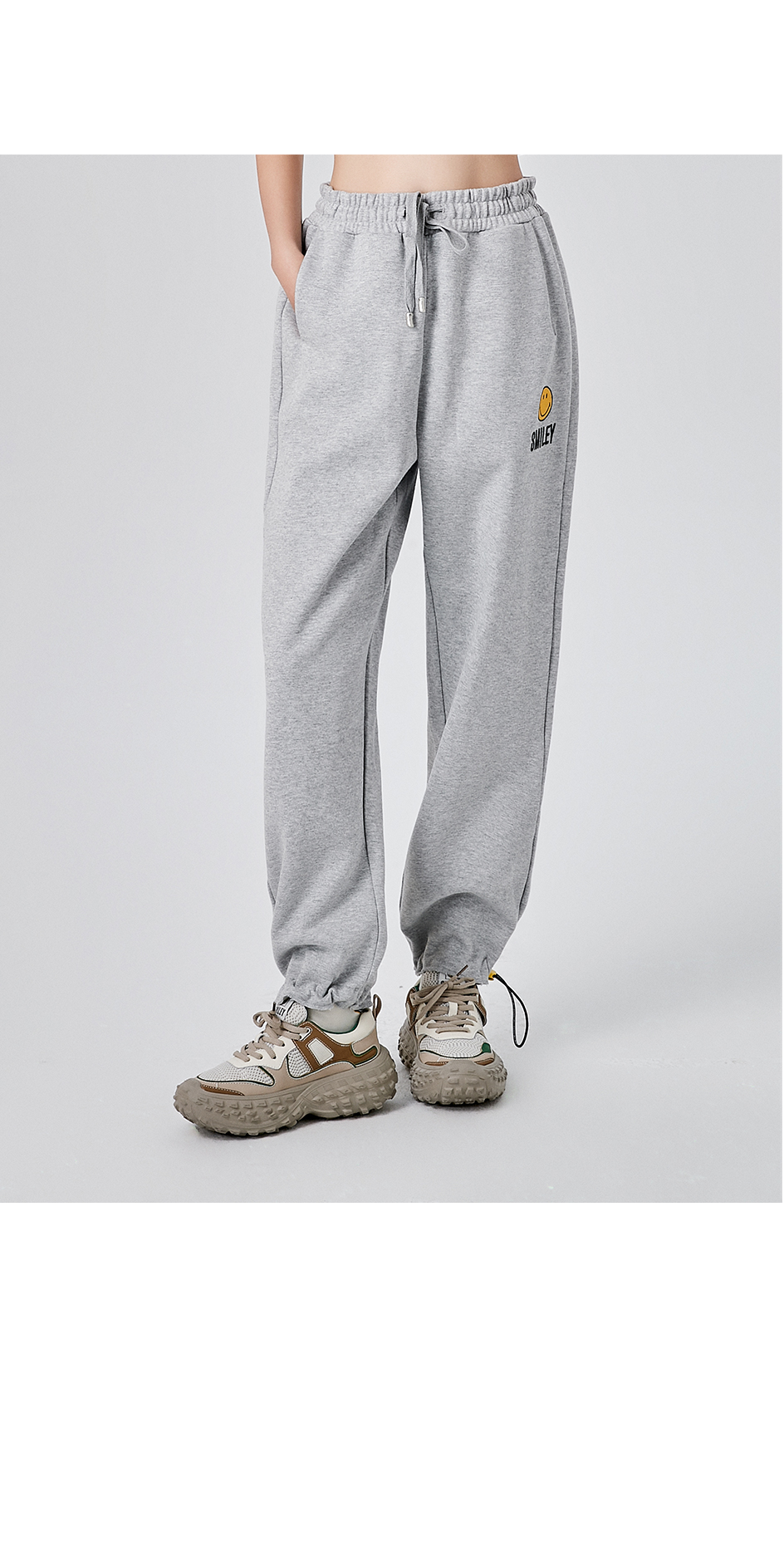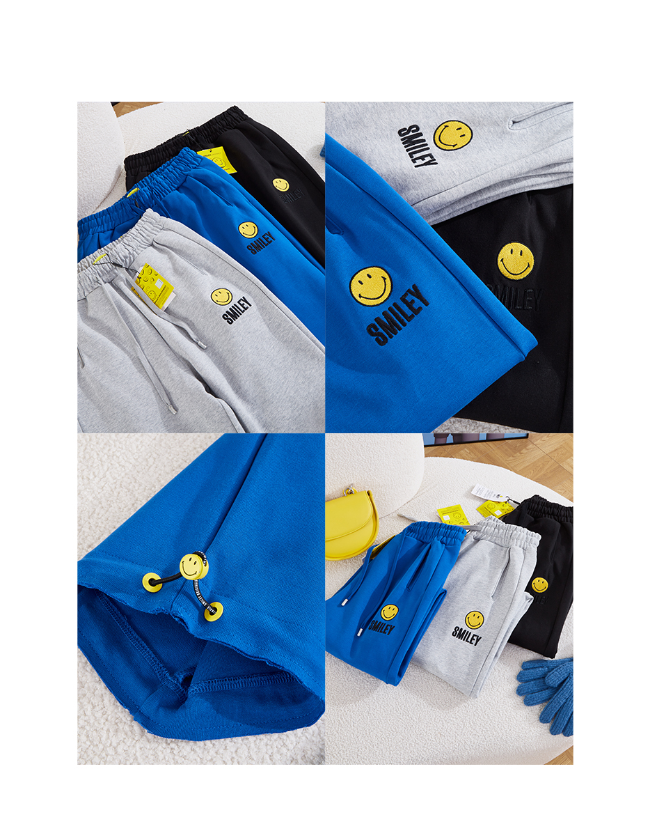【品名】:经典笑脸字母刺绣直筒阔腿长裤卫衣裤