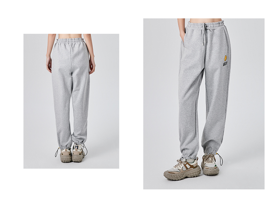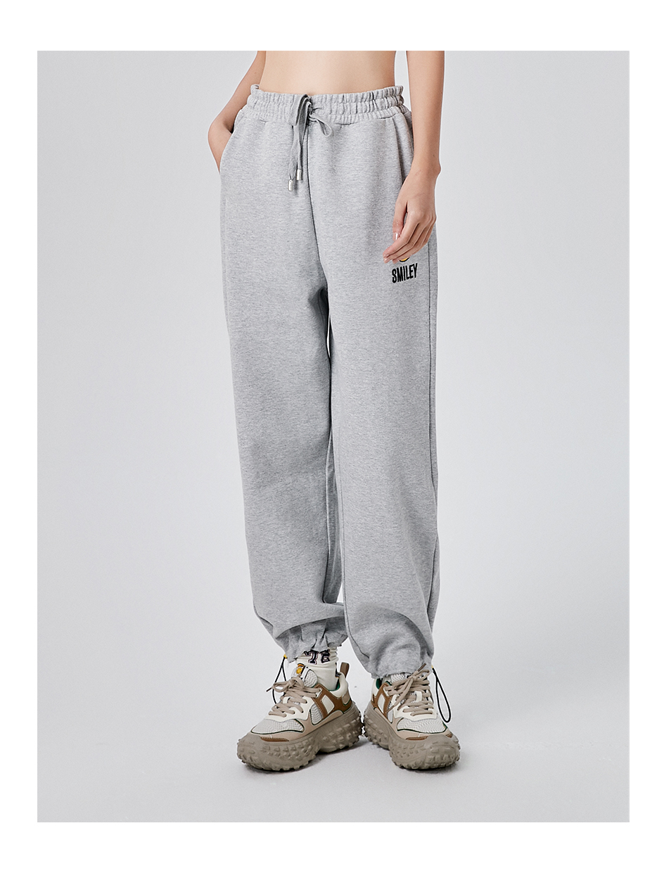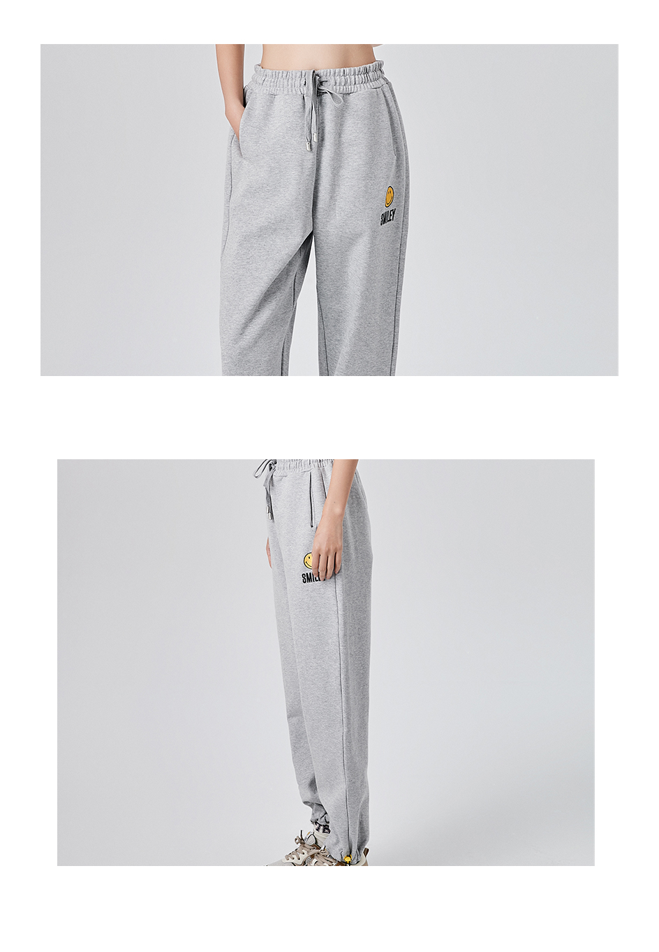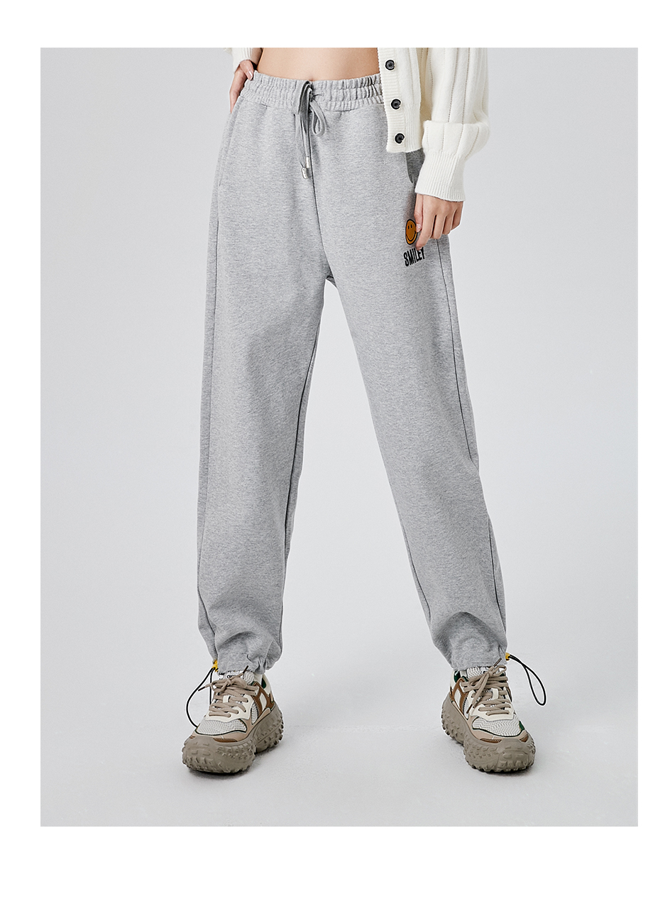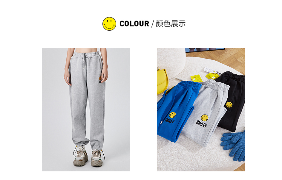 【品名】:经典笑脸字母刺绣直筒阔腿长裤卫衣裤