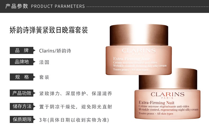 CLARINS 娇韵诗 焕颜紧致弹力日晚霜套装 日霜50ml+晚霜50ml 法国