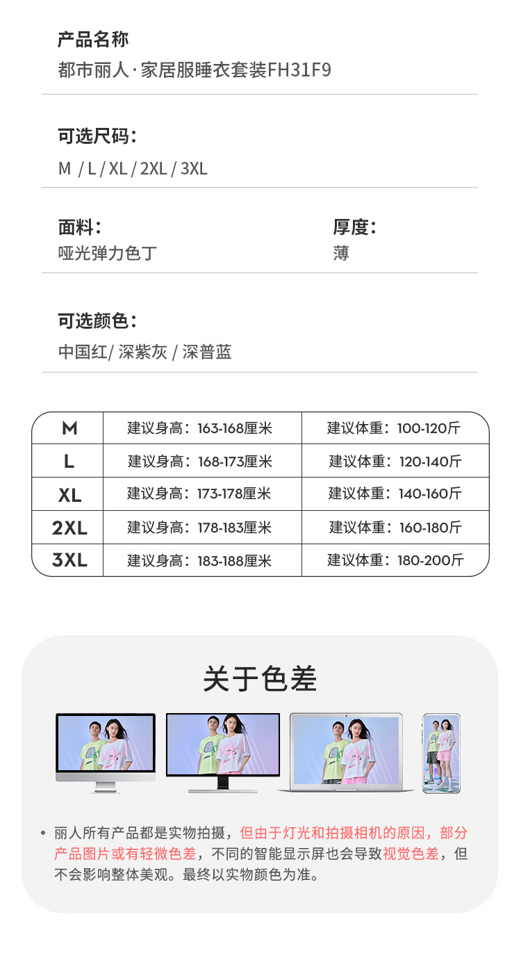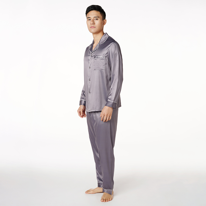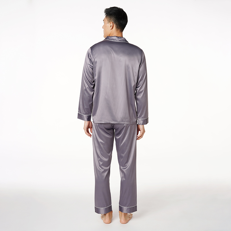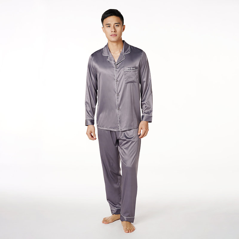 都市丽人男士丝质系列哑光弹力色丁长款薄家居服睡衣套装新年本命年红品FH31F9