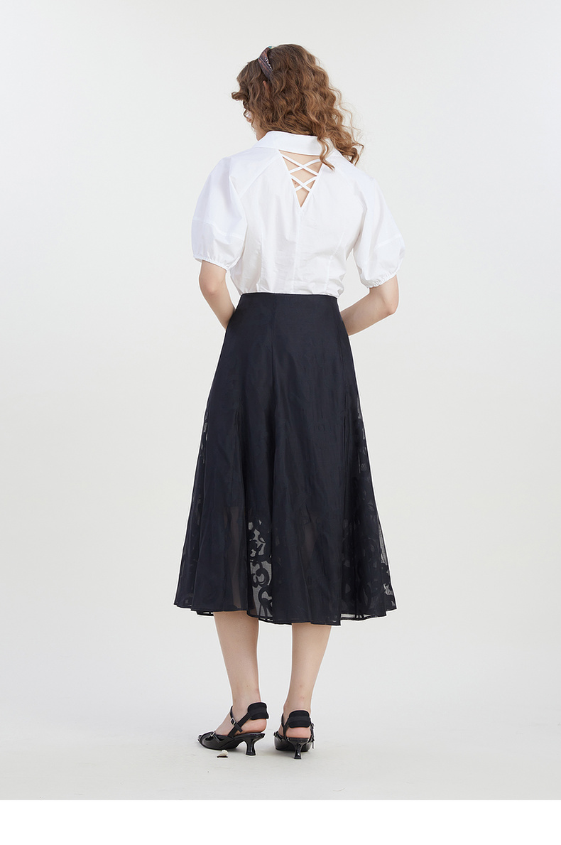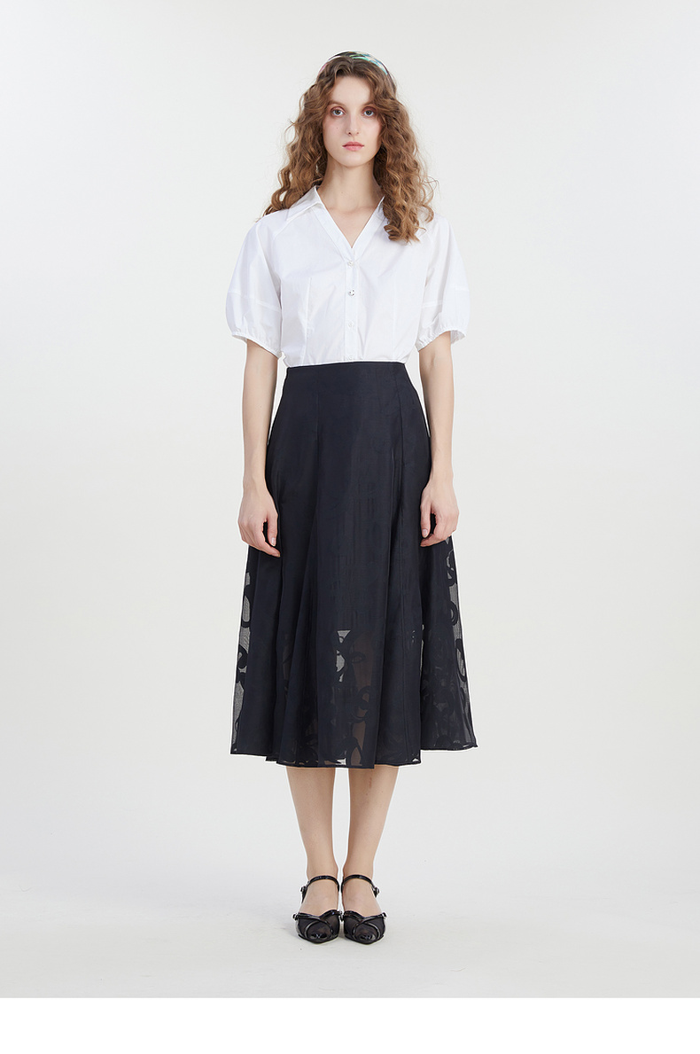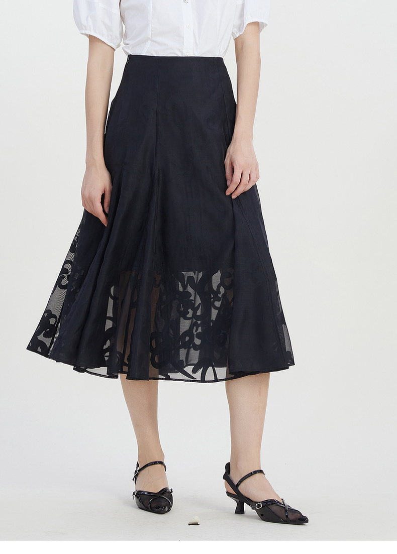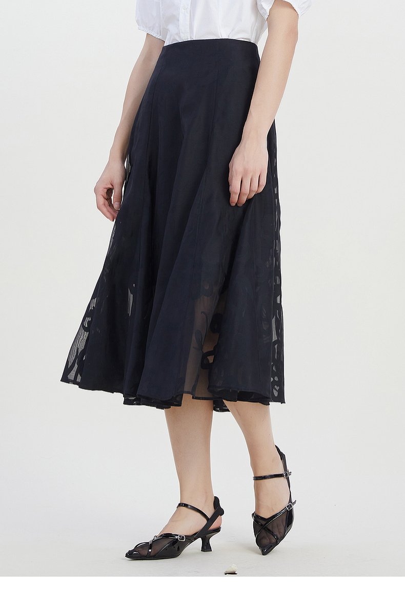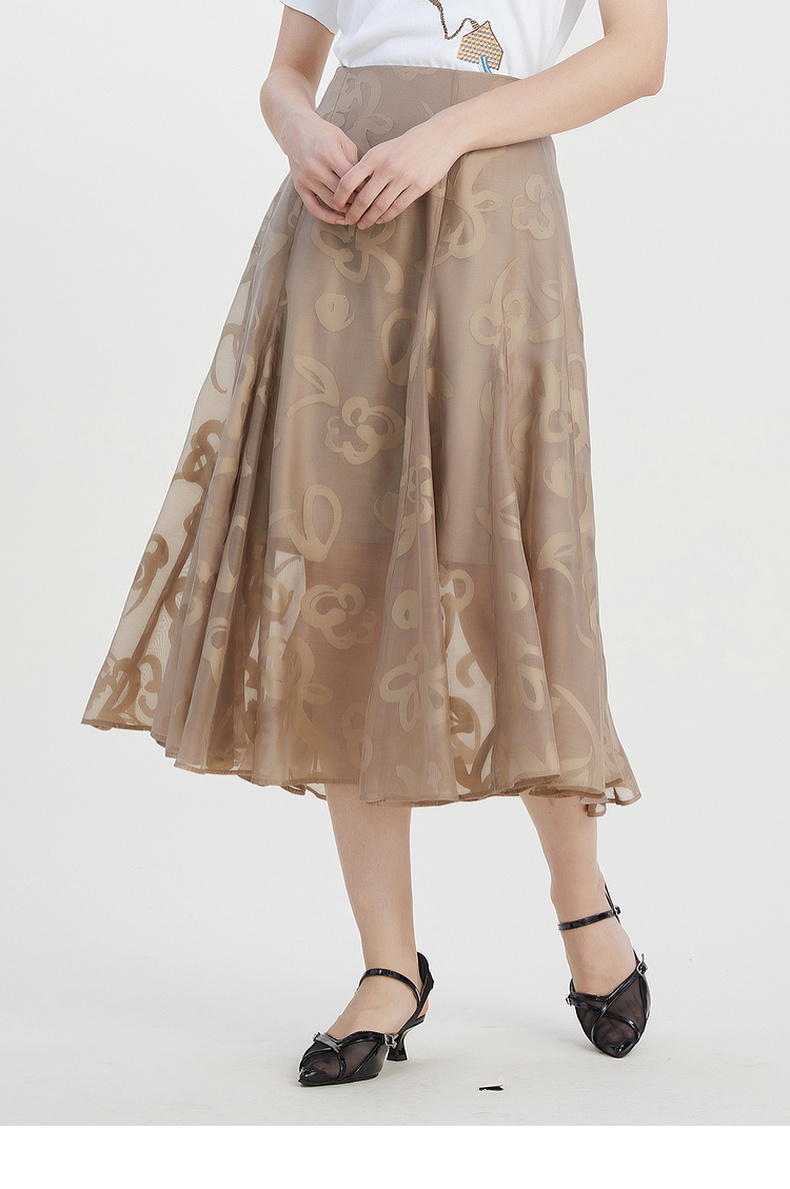 谜底2023夏新款法式优雅半身裙复古提花高腰中长款伞裙232MB0622