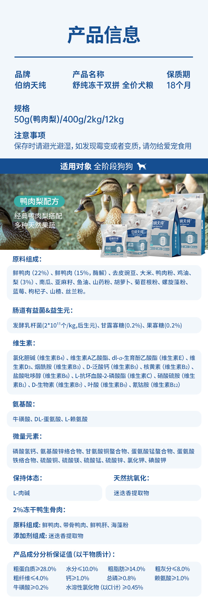 伯纳天纯舒纯鸭肉梨犬粮大中小型狗粮2kg风干零食软罐头组合