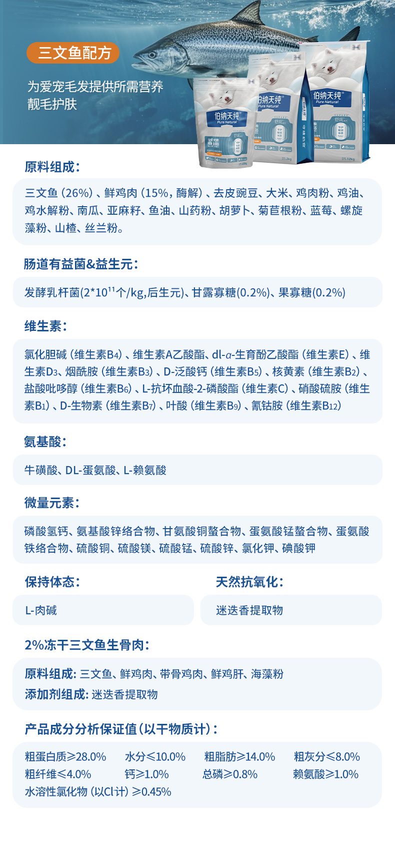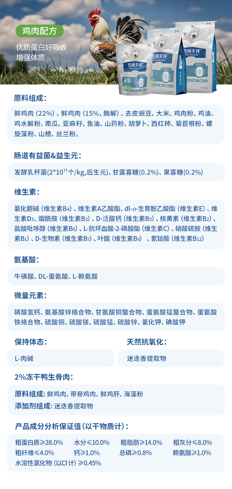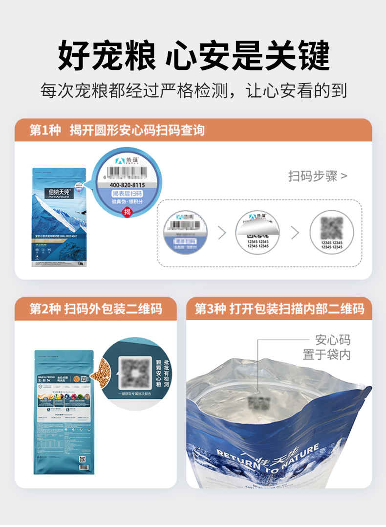 【冻鲜系列】伯纳天纯鲜肉狗粮全价全犬种冻干鲜肉粮鸡肉三文鱼鸭肉配方500g