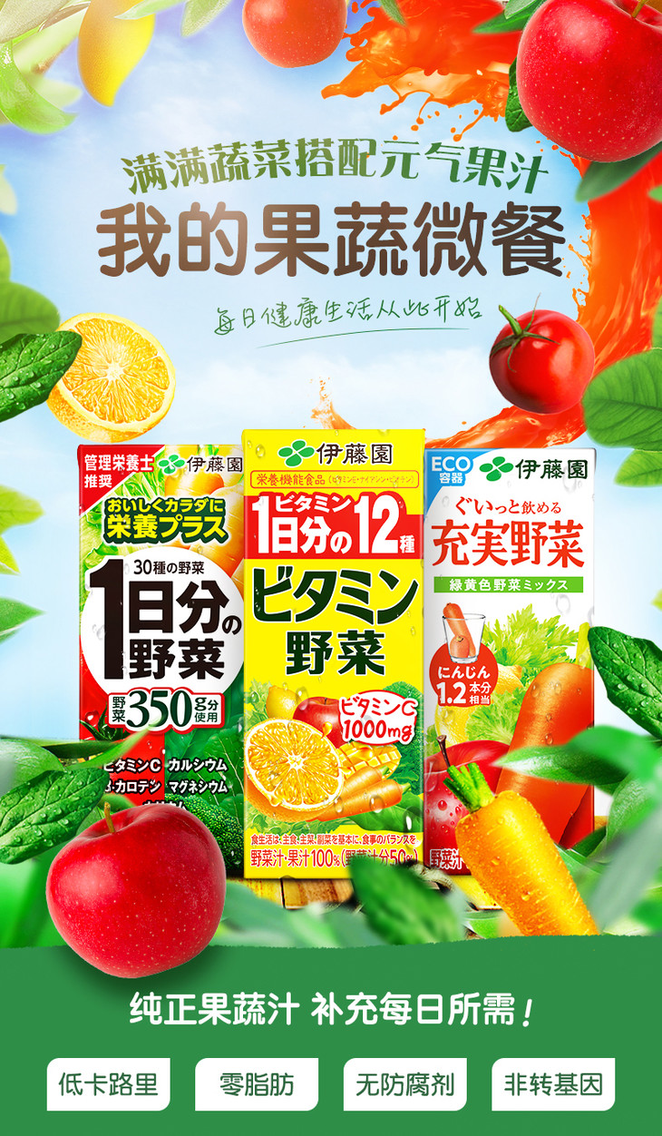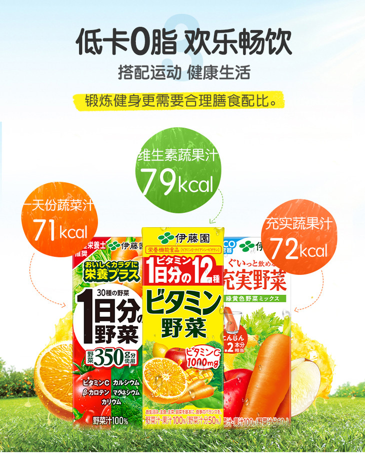 日本 伊藤园ITOEN 低糖纯果蔬汁 低卡维生素健康青汁 饮料200ml