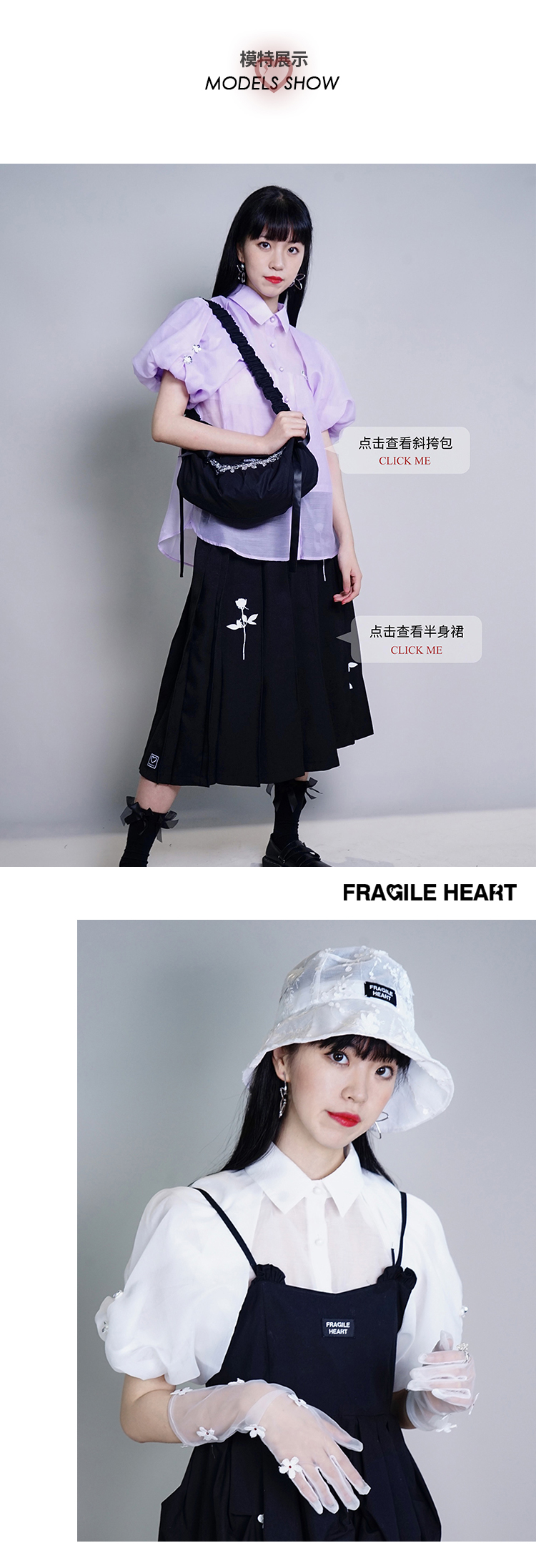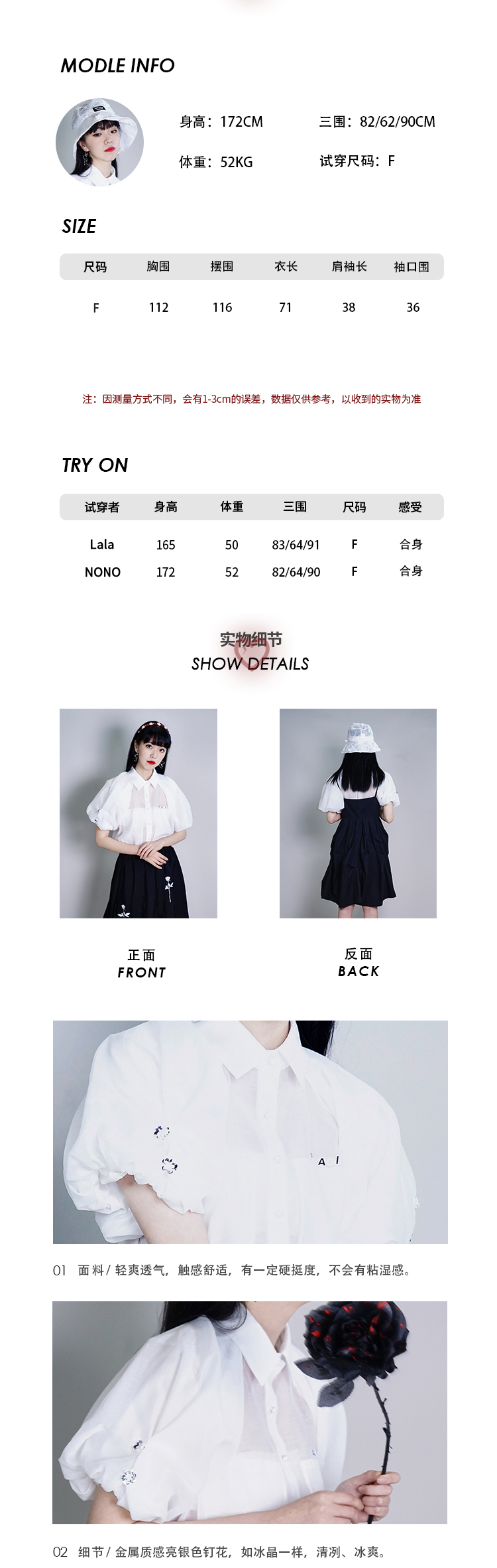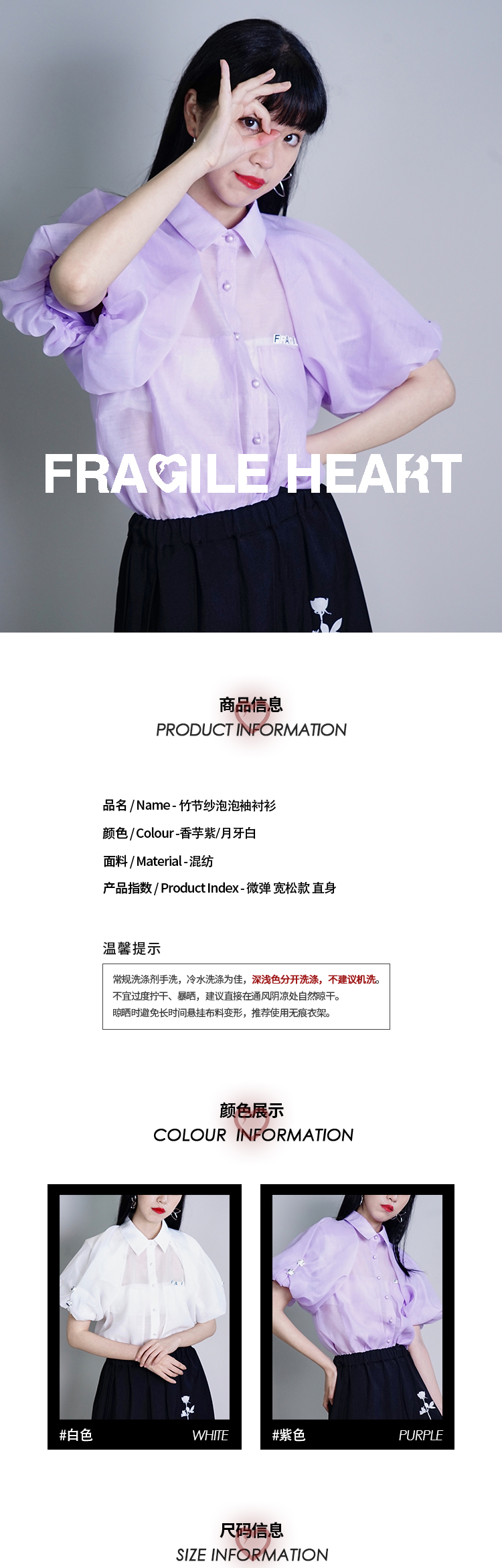 fragileheart易碎商店 泡泡袖衬衫女设计感小众灯笼袖短袖衬衣夏