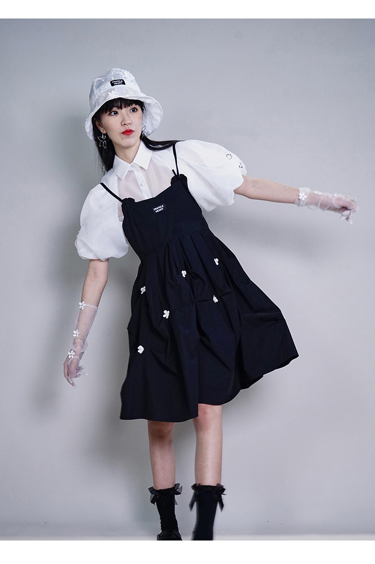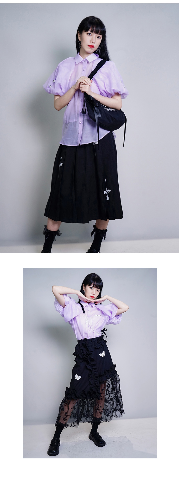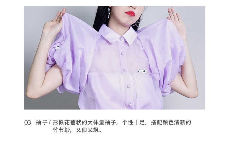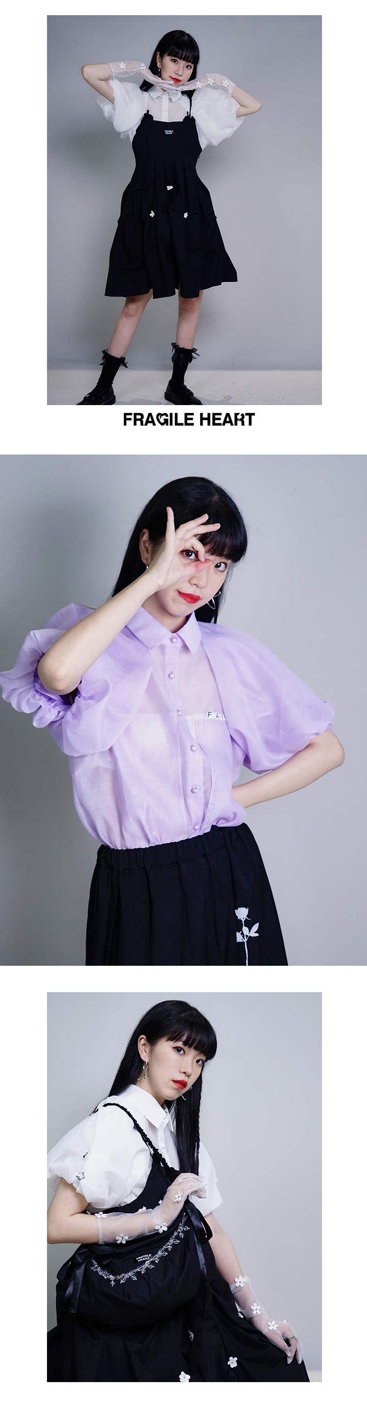 fragileheart易碎商店 泡泡袖衬衫女设计感小众灯笼袖短袖衬衣夏