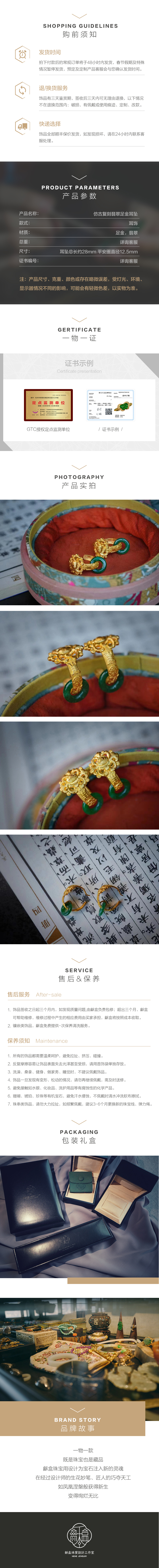 龢盒原创 仿古手工錾刻宝相花团寿纹翡翠足金耳坠
