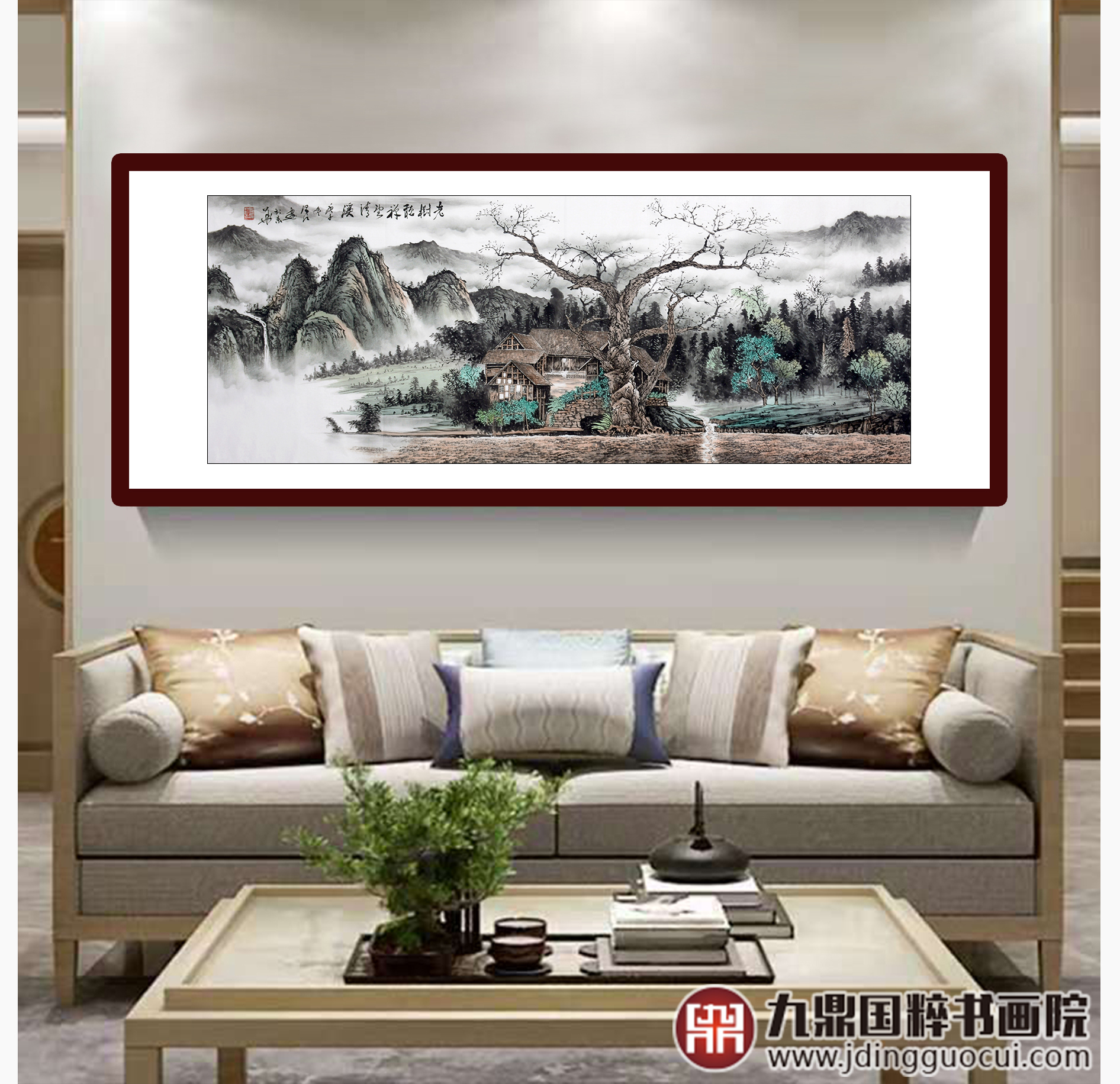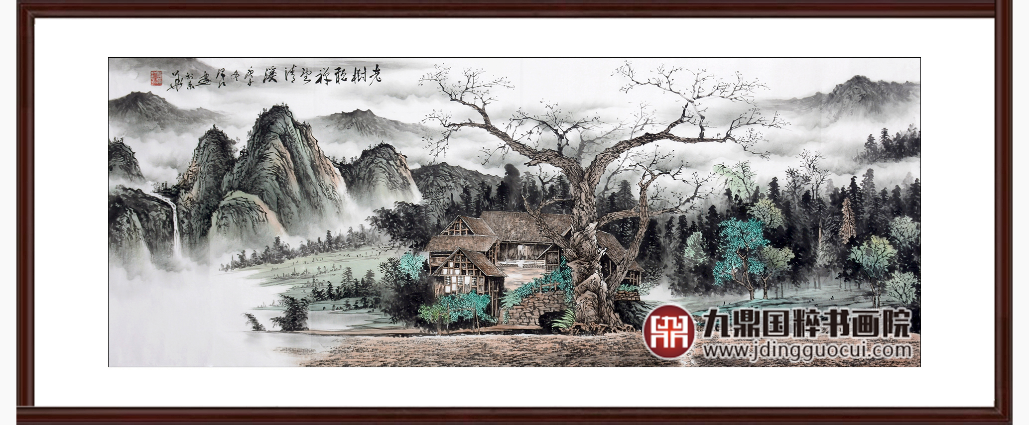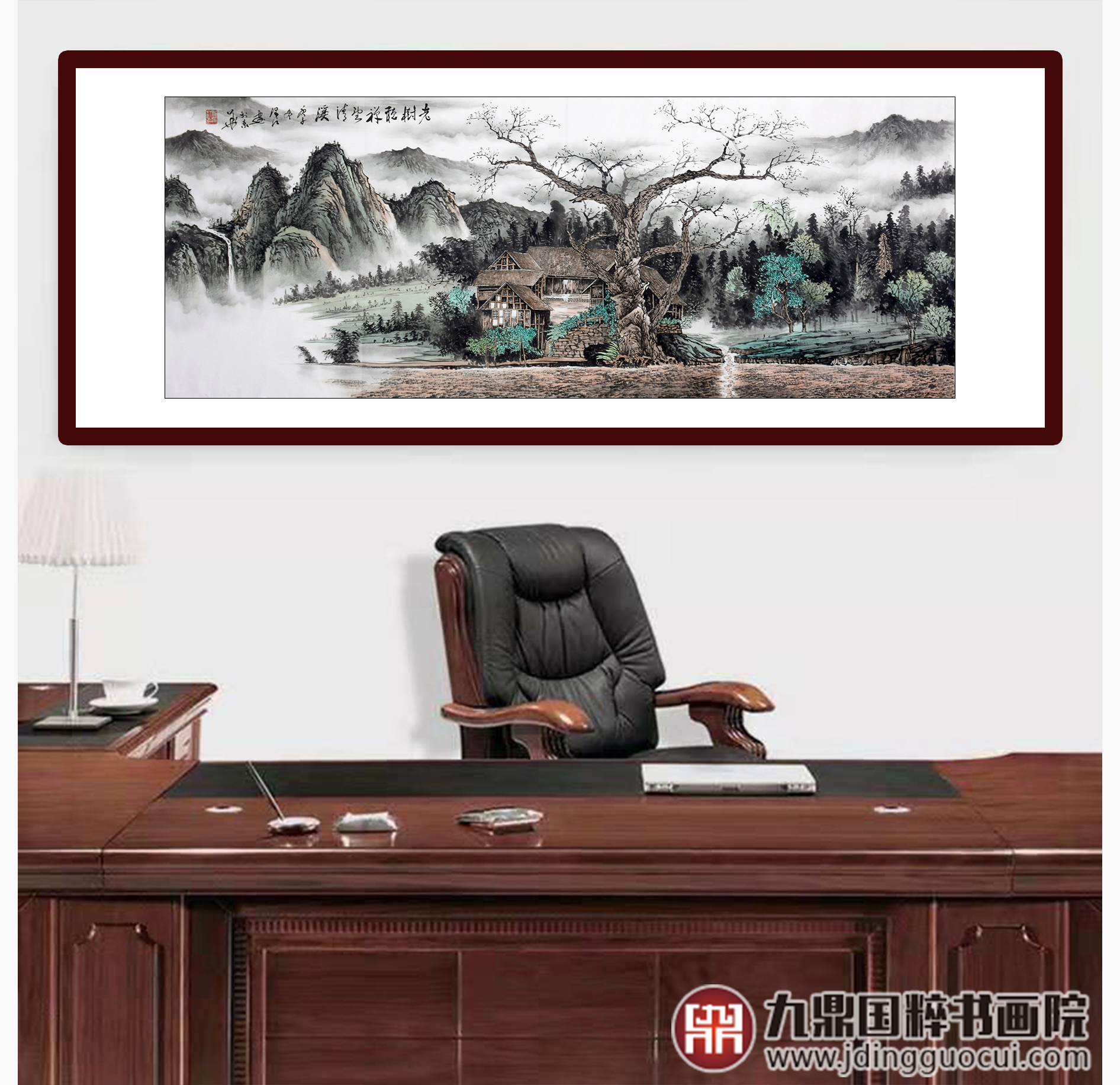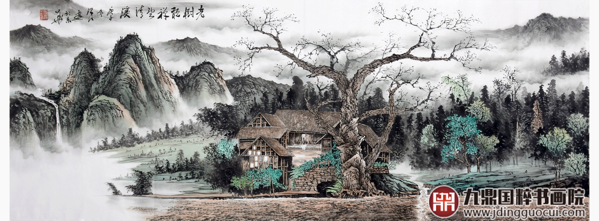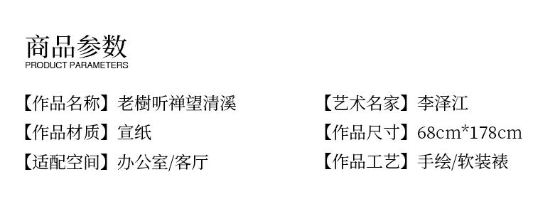 李泽江《老樹听禅望清溪》68*178cm 山水横幅作品 办公室/客厅挂画
