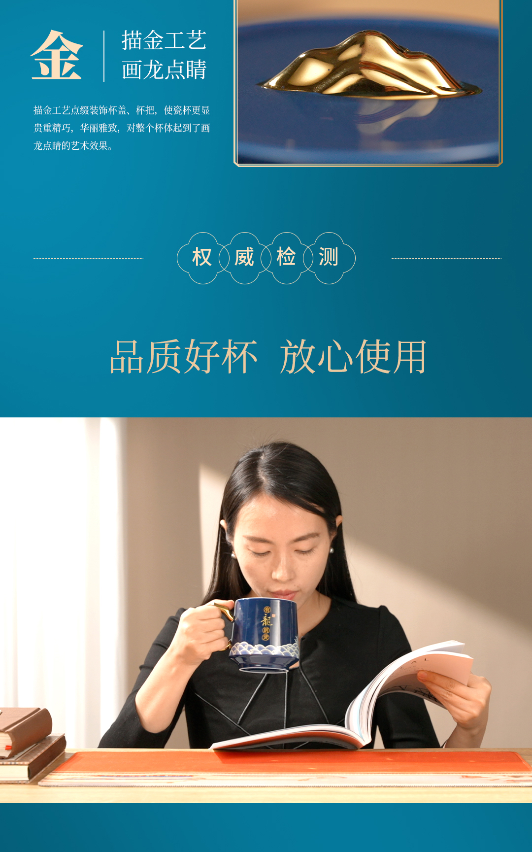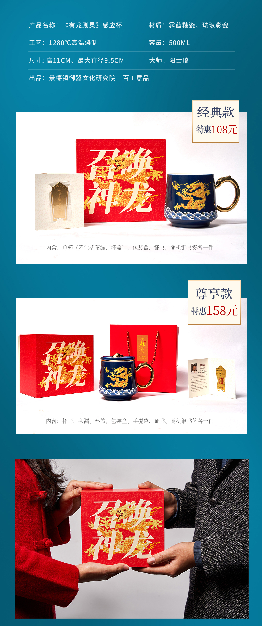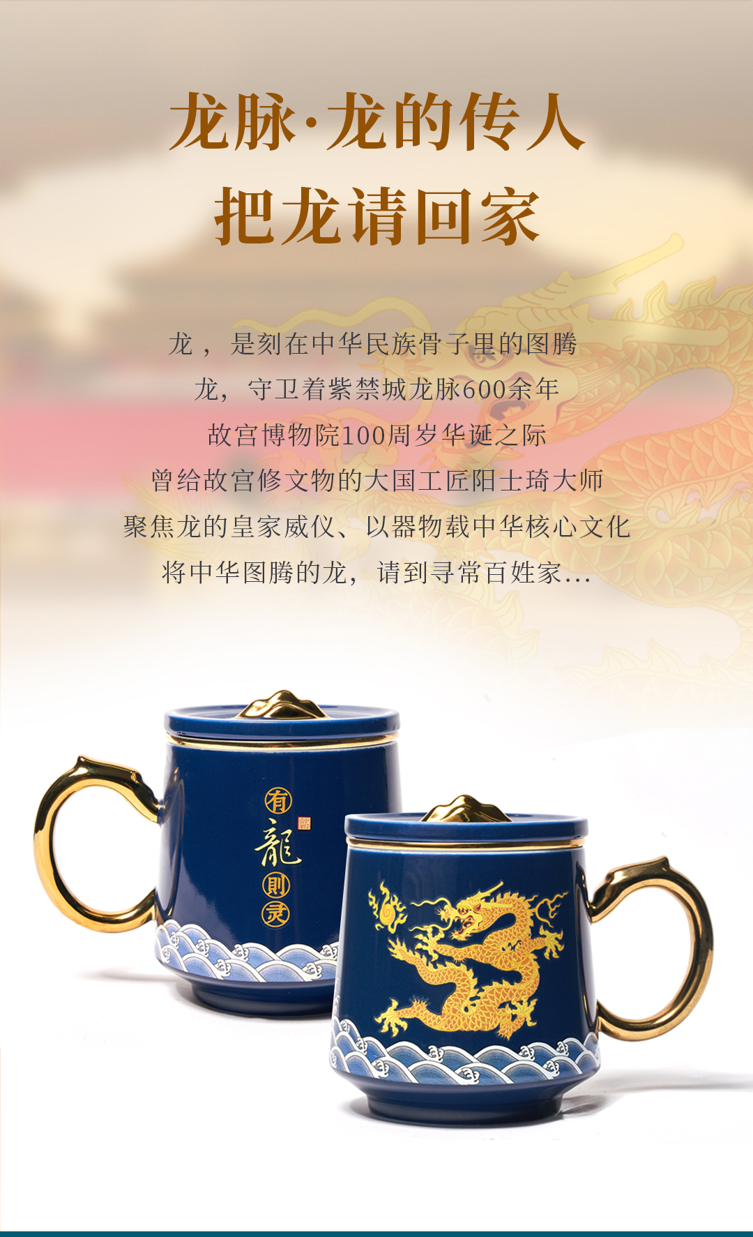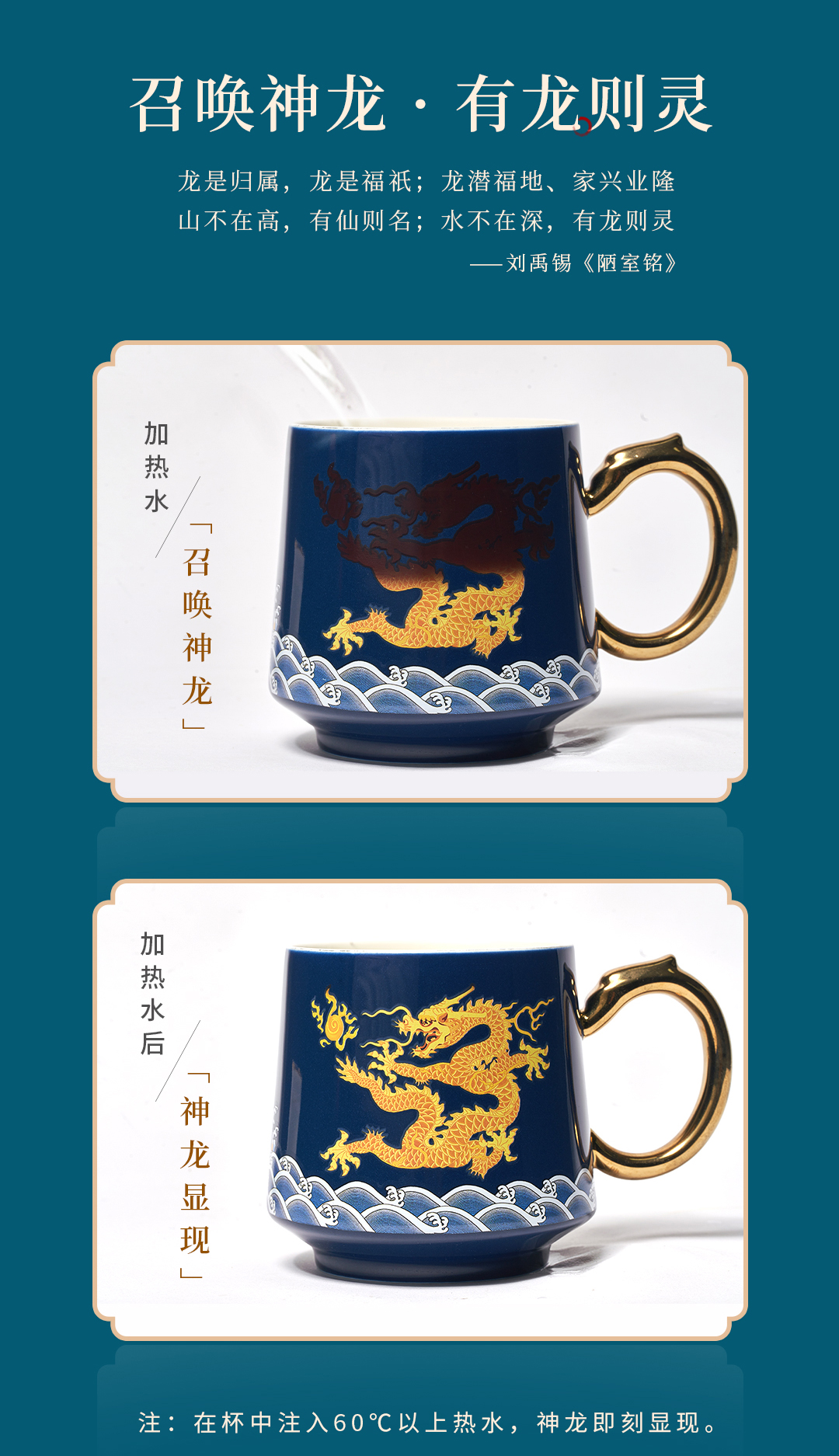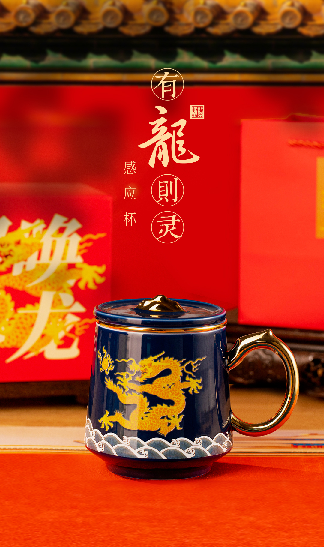 【现货秒发】爆款推荐!《有龙则灵》霁蓝釉陶瓷感温马克杯 2024龙杯专用办公室水杯带盖过滤茶水分离泡茶杯子