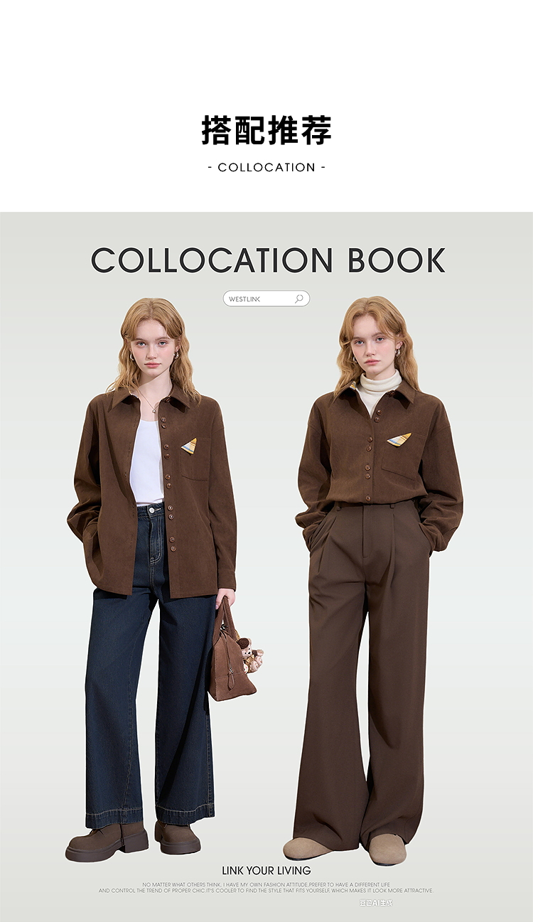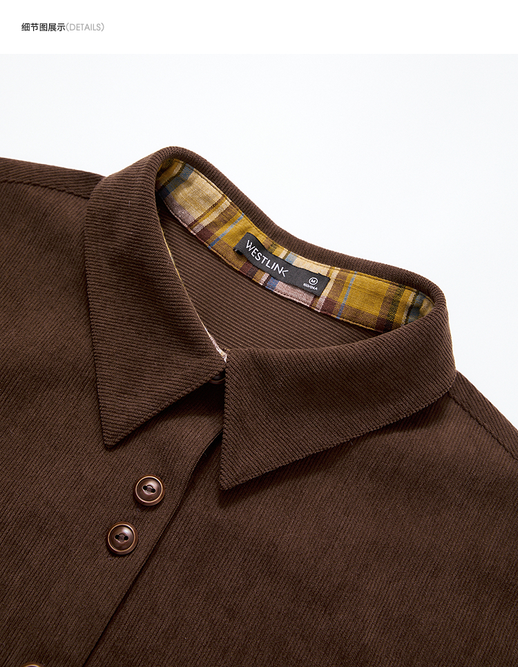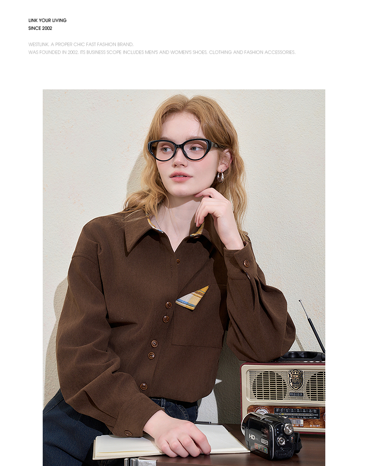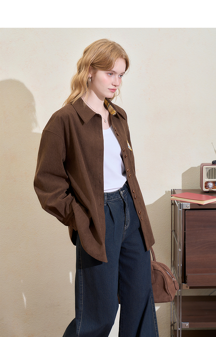 西遇复古灯芯绒衬衫女冬季新款格纹折角口袋设计宽松显瘦外套V3855312