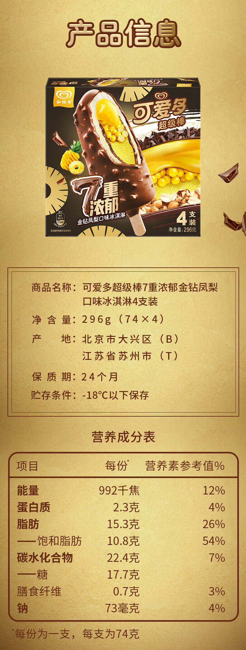 可爱多超级棒金钻凤梨味冰淇淋 74g/支