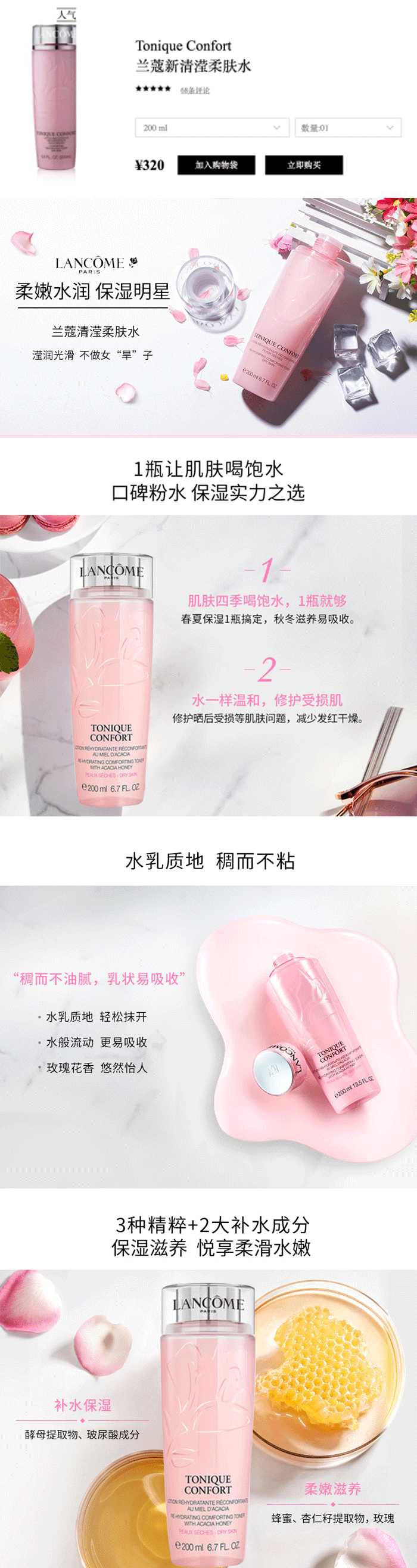 【5.8 王炸割肉价】兰蔻粉水柔肤水400ml 补水保湿滋(23年11月限用)