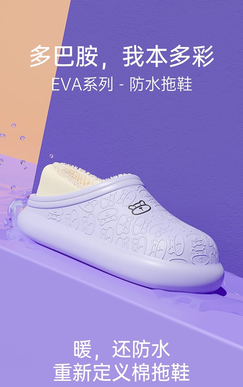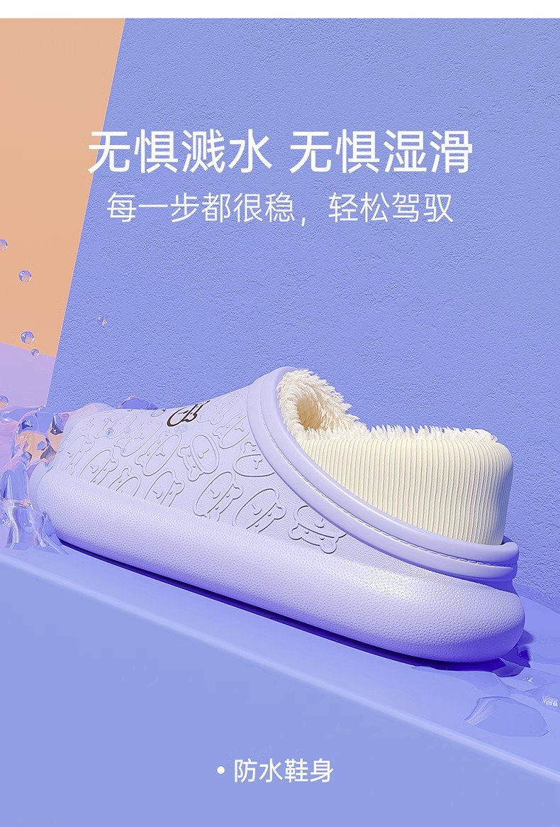 「7色可选!多巴胺色系」新款棉拖鞋女士 秋冬季男包跟防水暖绒厚底毛绒月子鞋外穿