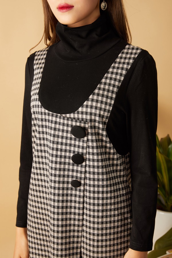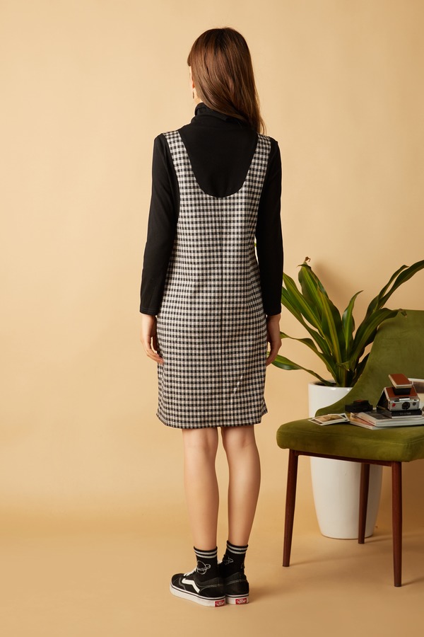 amadella 黑色格纹设计感拼接连衣裙 10555
