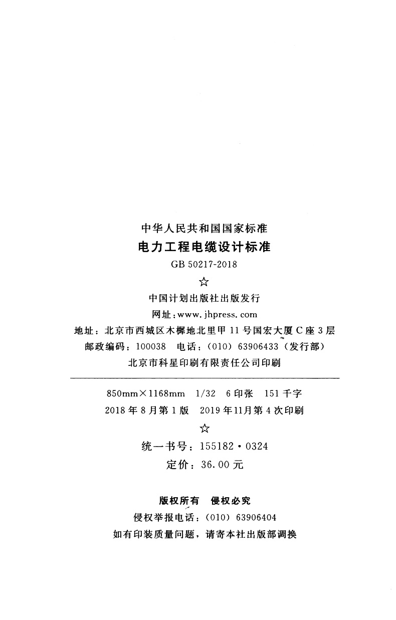 书名:【2018年新版】GB 50217-2018 电力工程电缆设计标准