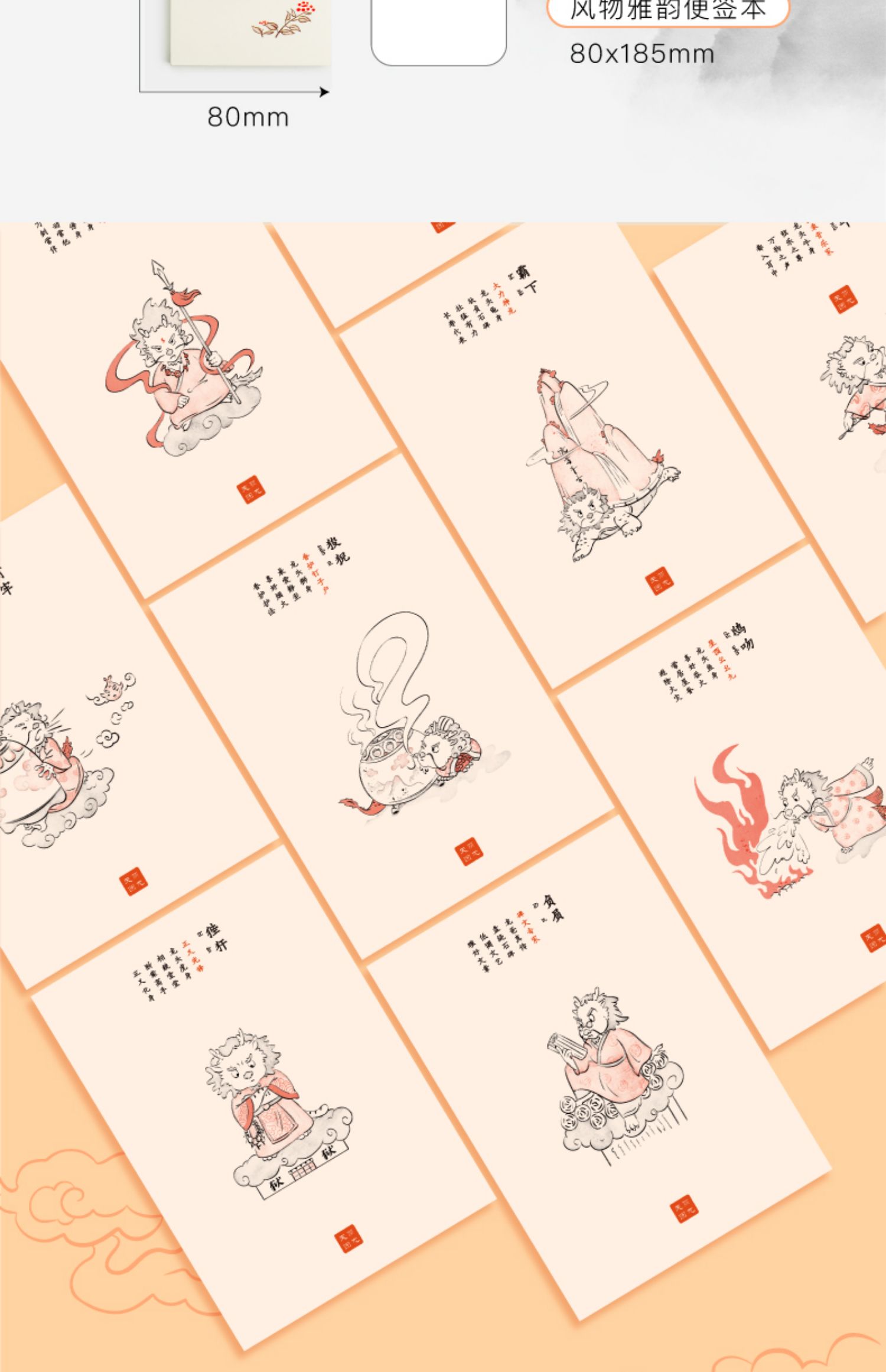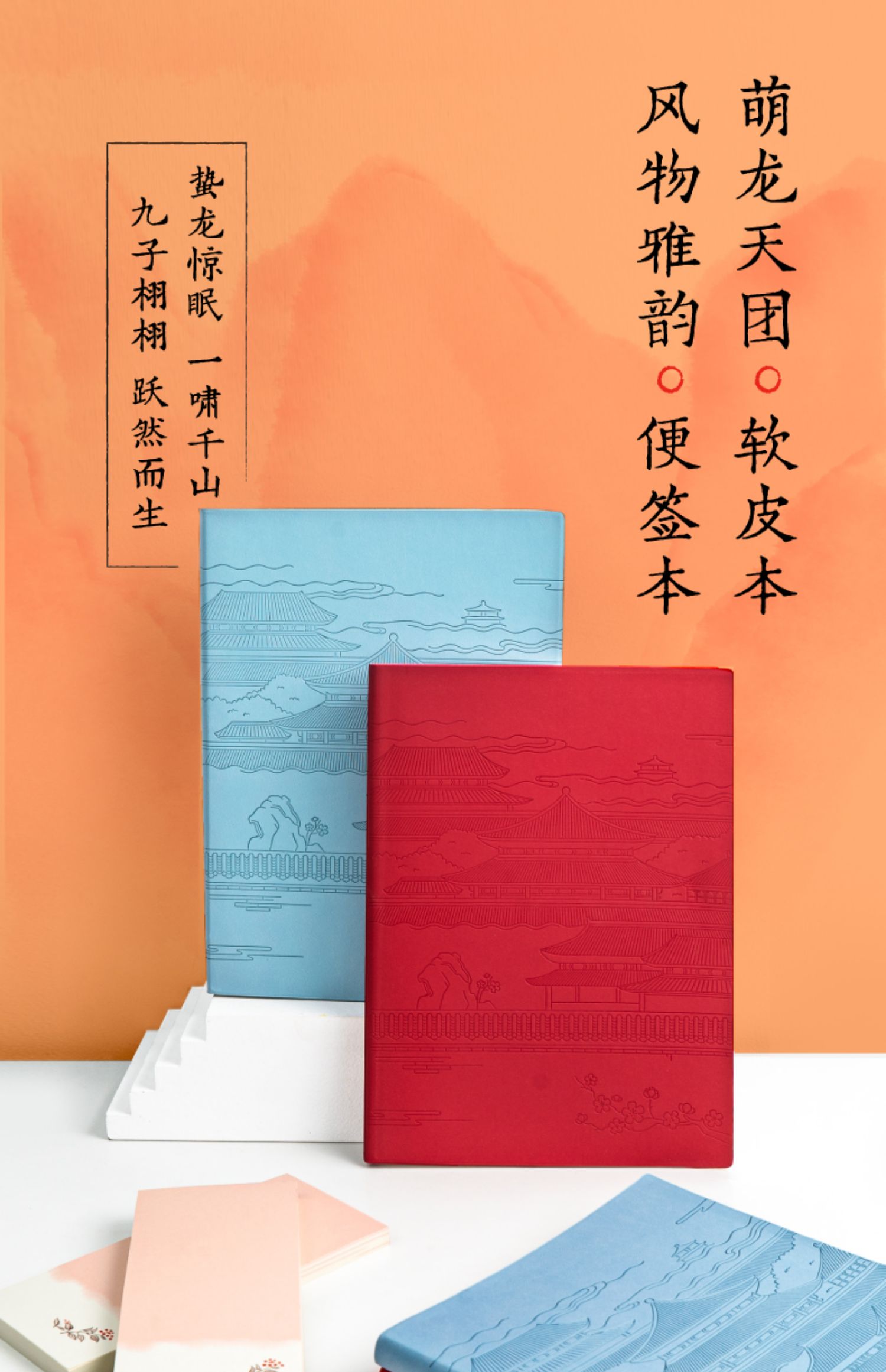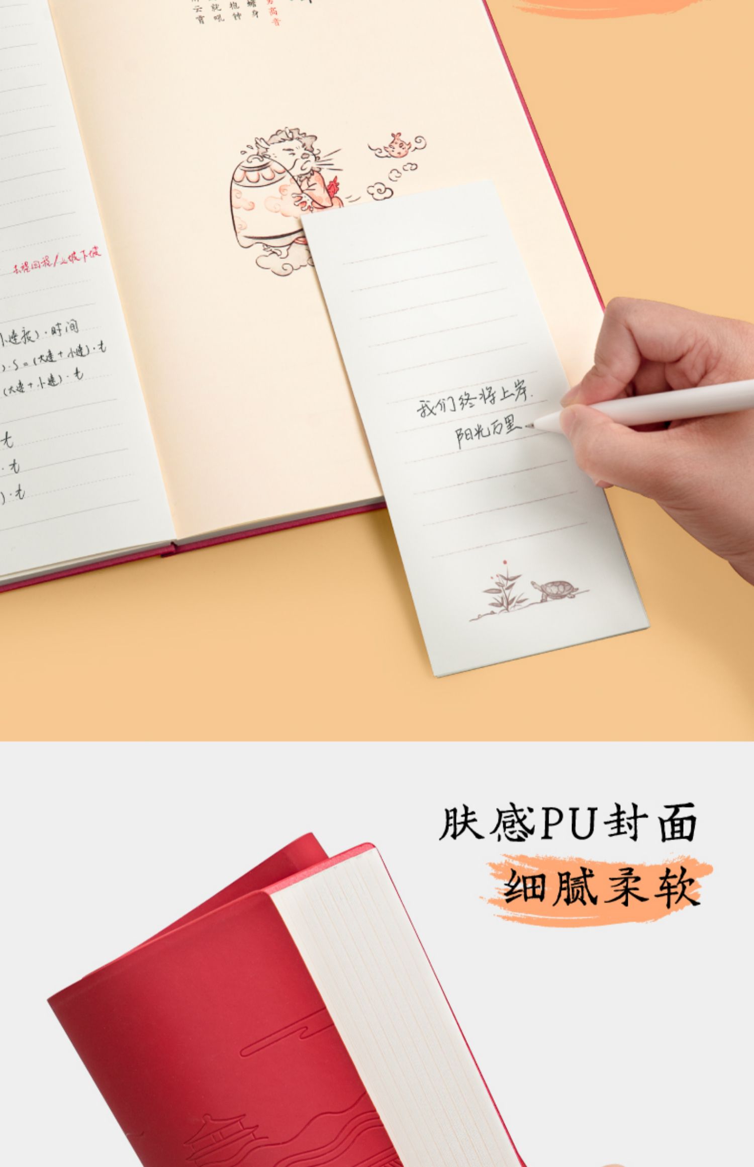 【粉笔文创】原创古风笔记本萌龙天团软皮pu肤感本子 古风便签