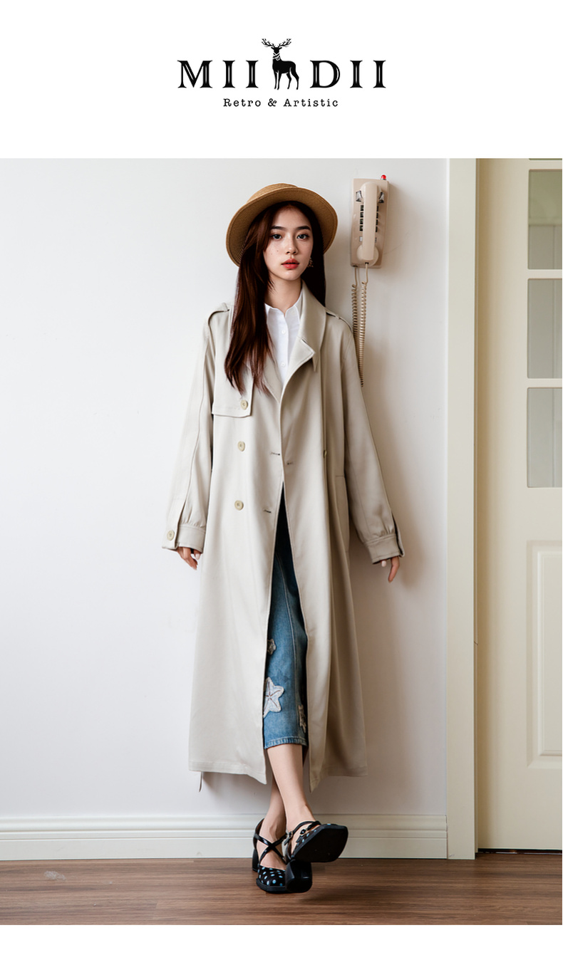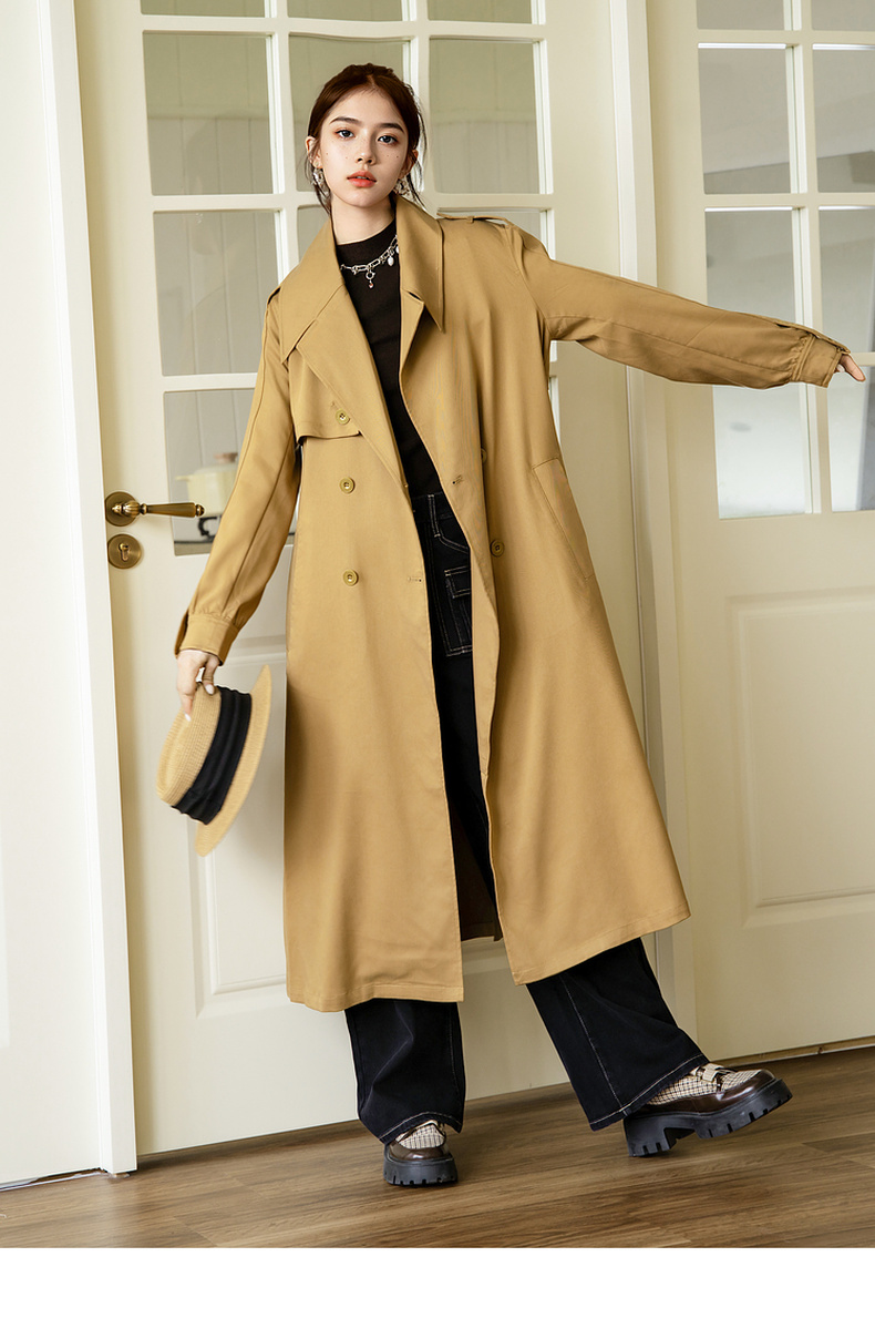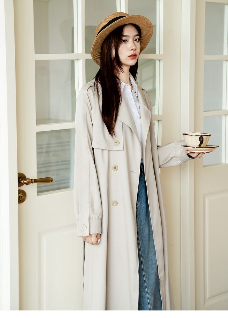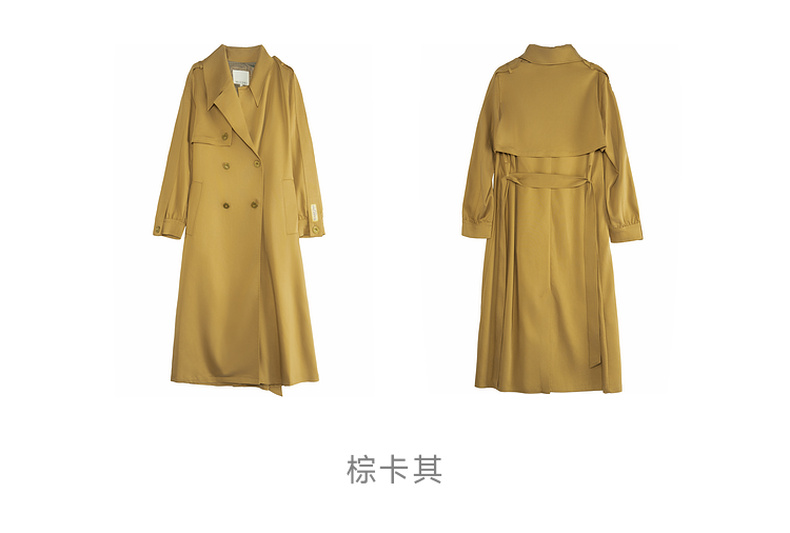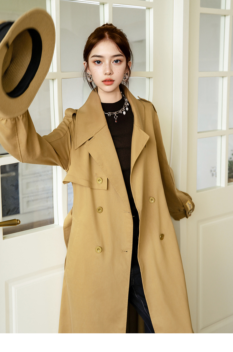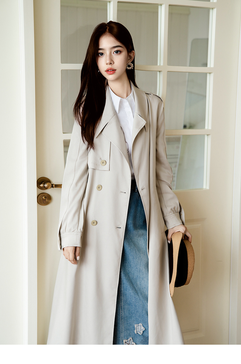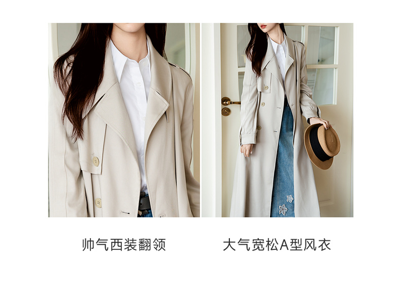 谜底通勤风衣女2025秋季新款简约气质纯色双排扣长外套257ME7725